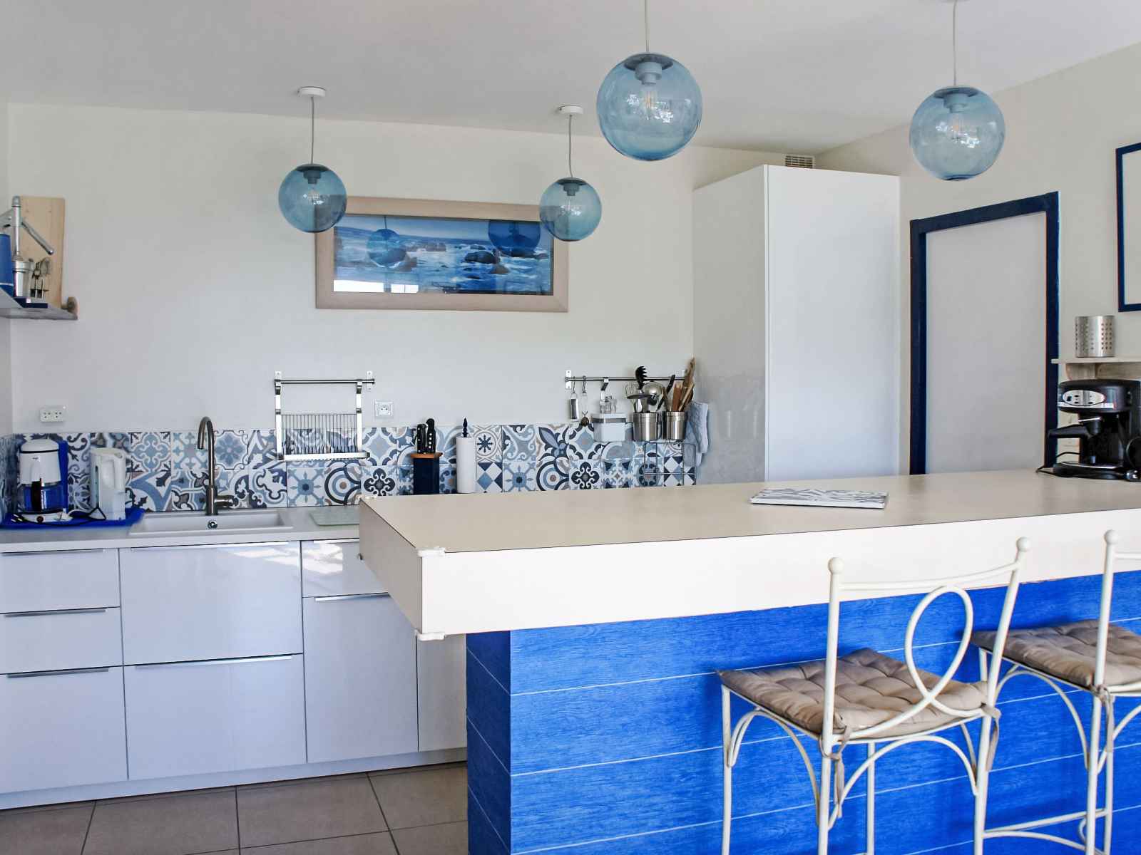 lave-vaisselle, 4 plaques vitrocéramiques, grille-pain, bouilloire électrique, micro-ondes, congélateur, cafetière électrique) avec bar. Douche, WC séparé. Chauffage électrique. Terrasse 20 m2, situation sud. Meubles de terrasse, barbecue. Vue sur la mer et la baie. A disposition: lave-linge, sèche-cheveux. Veuillez noter: maison non-fumeur. Maximum 1 animal/ chien autorisé. Détecteur de fumée.