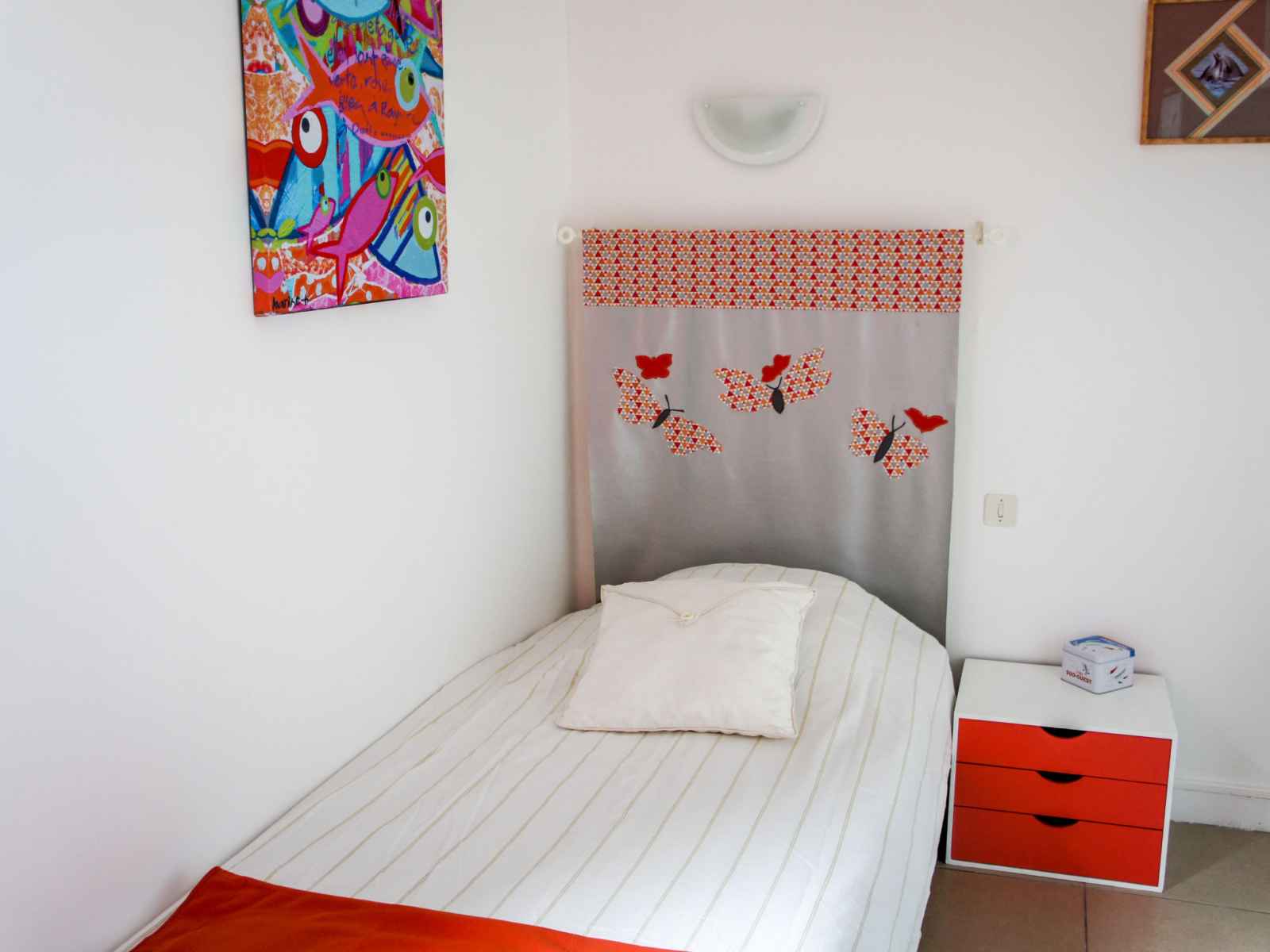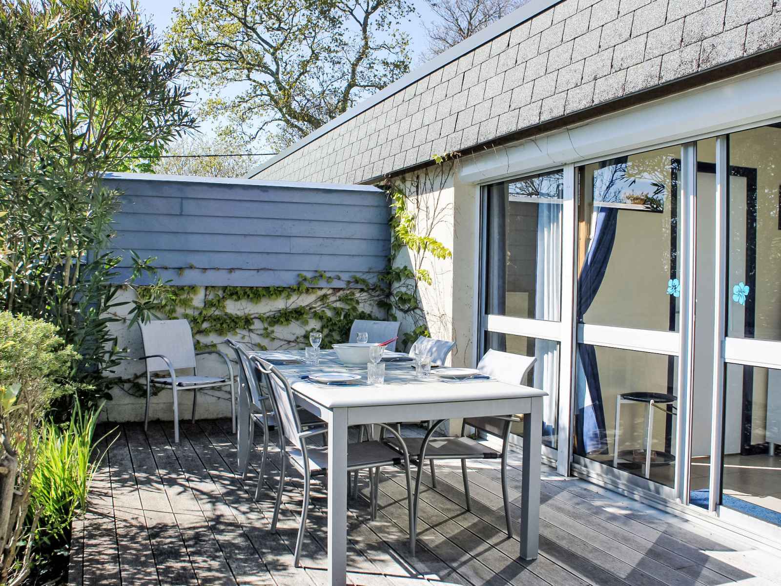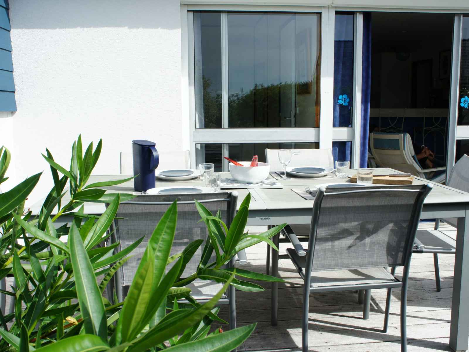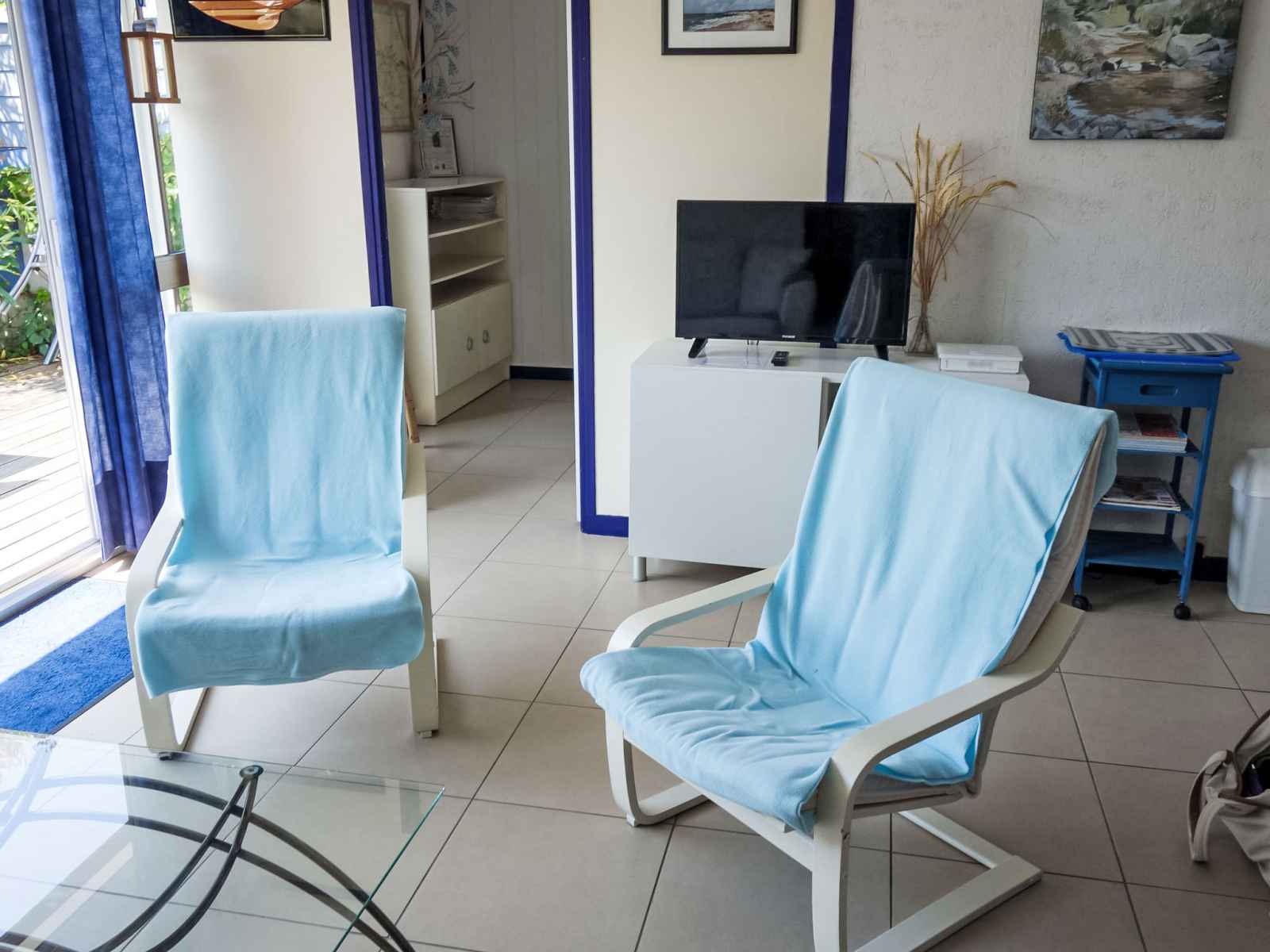 Maison 4 pièces 60 m2, situation sud. aménagement fonctionnel: séjour 25 m2 avec baie vitrée avec tv (écran plat). sortie sur la terrasse. 1 chambre 10 m2 avec 1 grand-lit (140 cm, longueur 190 cm), volet roulant électrique. 2 petites chambres d'enfants, chaque chambre avec: 1 lit (90 cm, longueur 190 cm). coin cuisine (mini-four,