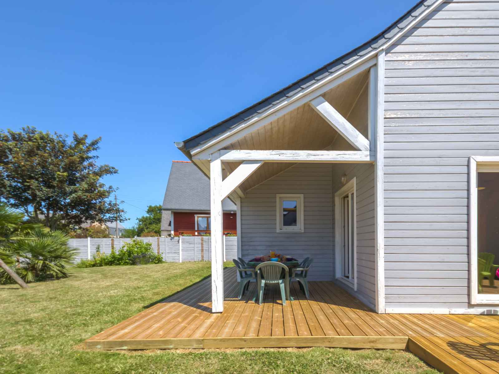 Maison individuelle "pen-guen", rénovée en 2018. À 2.4 km du centre de dinard, situation tranquille dans un quartier résidentiel, à 1.4 km de la mer, à 1.4 km de la plage, dans une impasse, orientée sud. a usage privé: jardin entretenu 550 m2 avec pelouse. terrasse, meubles de jardin, barbecue, place de parking sur le terrain. magasins 300