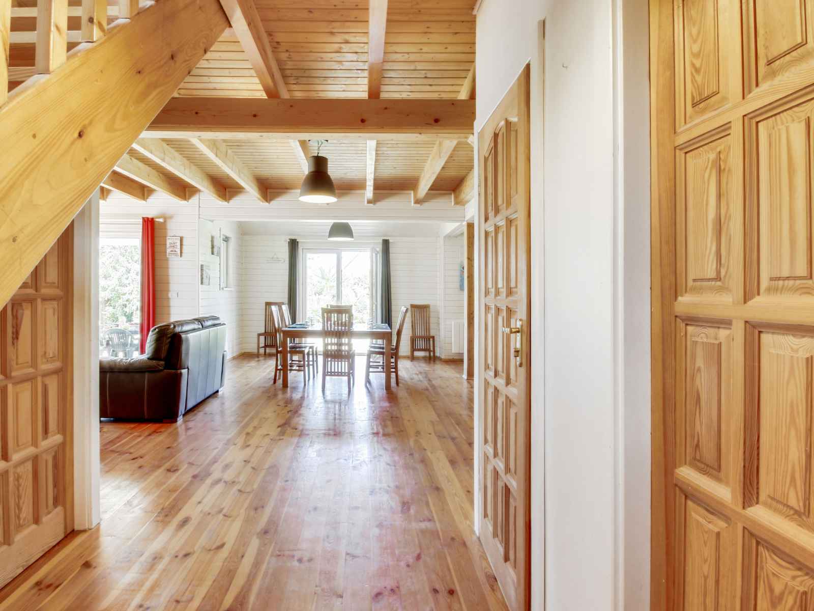 micro-ondes, congélateur, cafetière électrique). WC séparé. À l'étage supérieur: 2 chambres, chaque chambre avec: 1 grand-lit (160 cm, longueur 200 cm). 1 chambre avec 1 grand-lit (140 cm, longueur 190 cm). Douche, WC séparé. Chauffage électrique, chauffe eau. Grande terrasse. Meubles de terrasse, barbecue. A disposition: lave-linge, fer à repasser, sèche-cheveux. Internet (Connexion WIFI, gratuit). Place de parking (1 Voiture). Veuillez noter: adapté(e) aux familles. Logement non-fumeur maison non-fumeur. Maximum 1 animal/ chien autorisé. Détecteur de fumée.