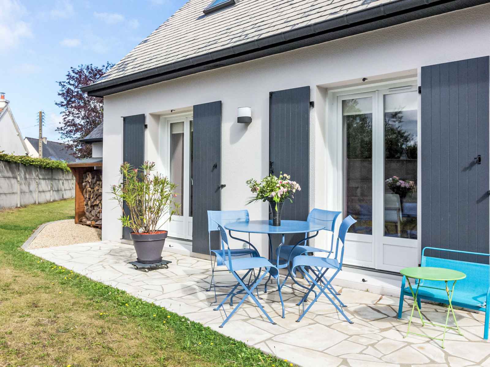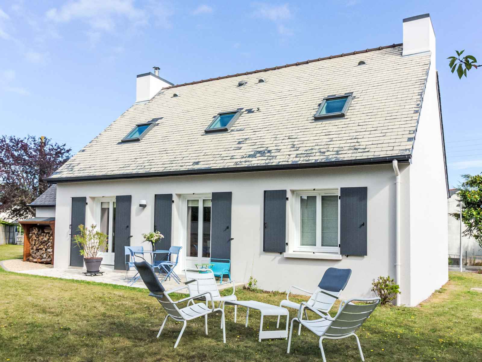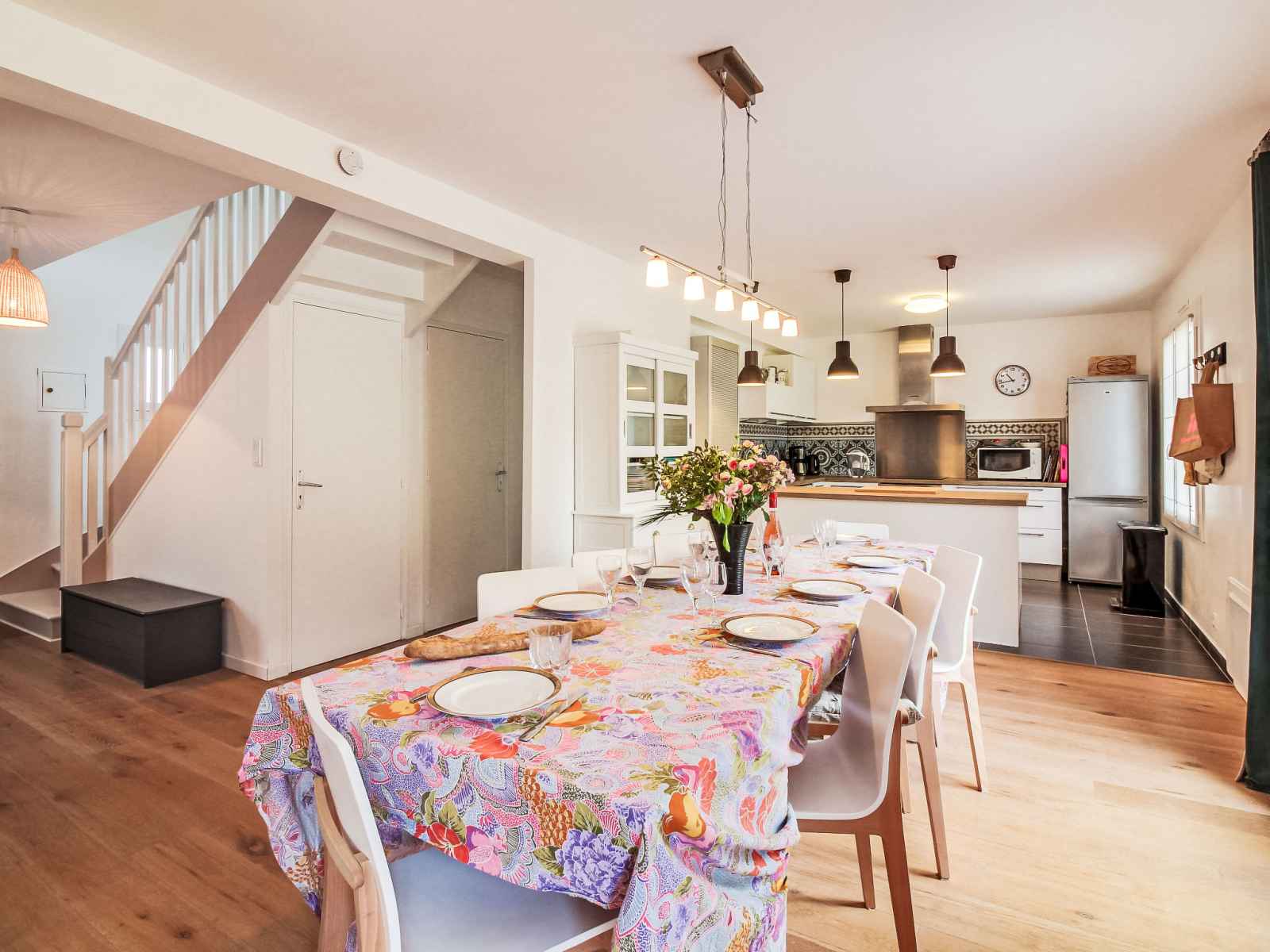 lave-vaisselle, 3 plaques à induction, grille-pain, bouilloire électrique, micro-ondes, cafetière électrique). Sortie sur le jardin. WC séparé. Chauffage électrique. À l'étage supérieur: 1 chambre avec 1 grand-lit (1 x 140 cm, longueur 190 cm). 1 chambre avec 1 lit (90 cm, longueur 190 cm). 1 chambre avec 1 x 2 lits superposés (90 cm, longueur 190 cm), 1 lit gigogne. Bain/WC. A disposition: lave-linge, sèche-linge, sèche-cheveux. Internet (Connexion WIFI). Veuillez noter: adapté(e) aux familles. Maison non-fumeur. Détecteur de fumée.