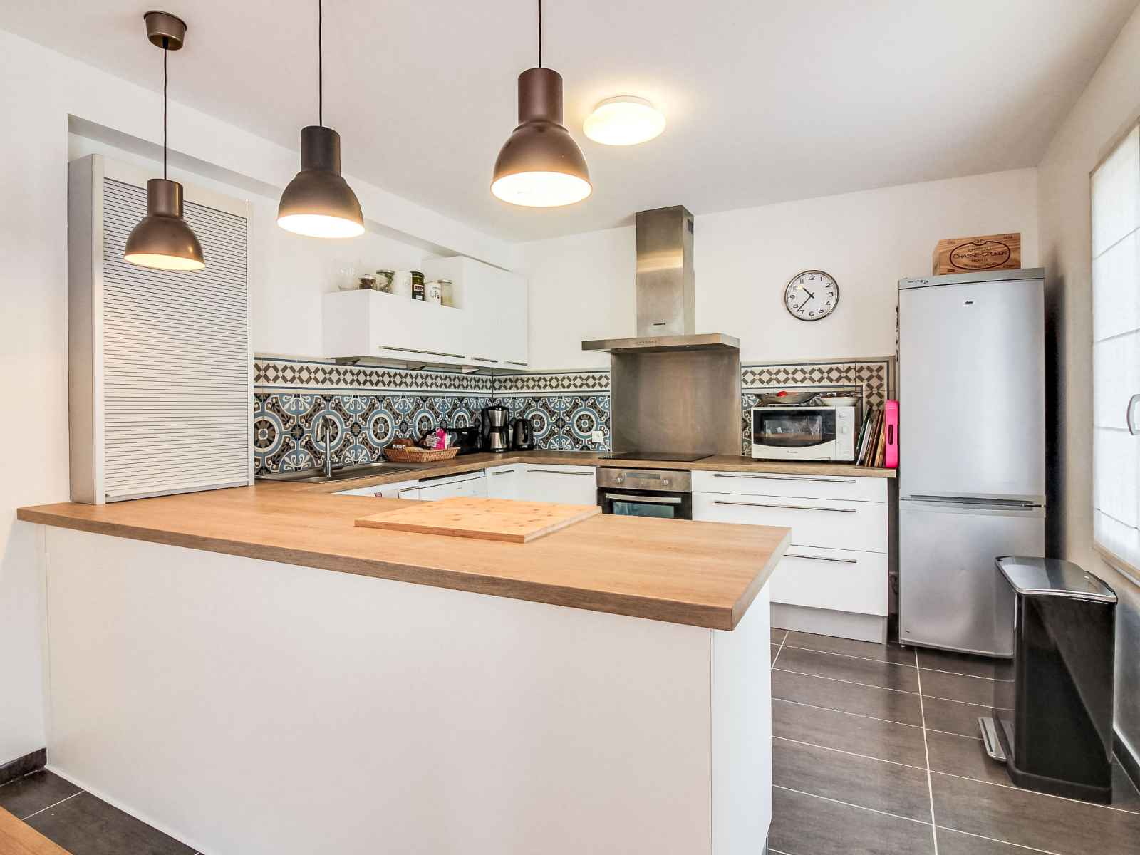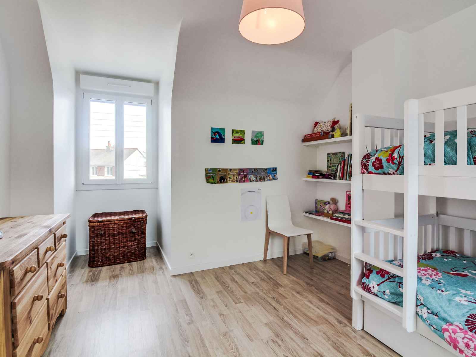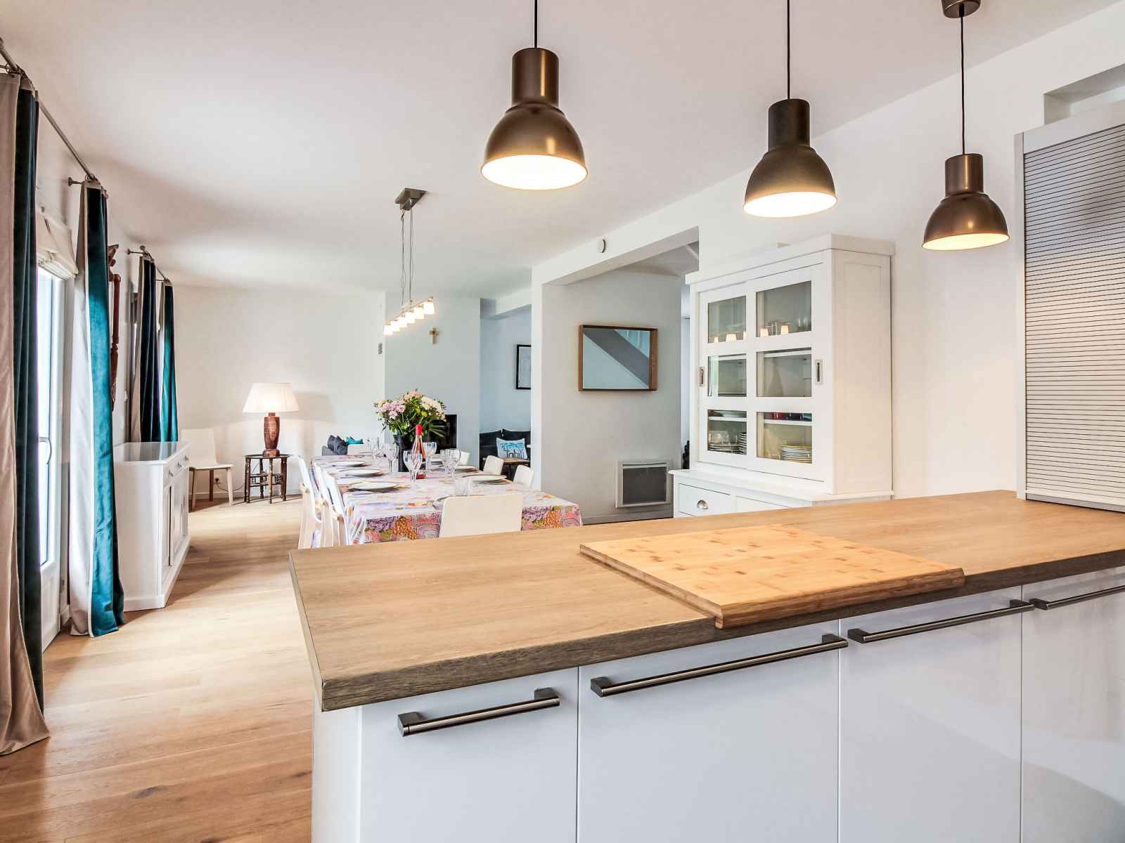 lave-vaisselle, 3 plaques à induction, grille-pain, bouilloire électrique, micro-ondes, cafetière électrique). Sortie sur le jardin. WC séparé. Chauffage électrique. À l'étage supérieur: 1 chambre avec 1 grand-lit (1 x 140 cm, longueur 190 cm). 1 chambre avec 1 lit (90 cm, longueur 190 cm). 1 chambre avec 1 x 2 lits superposés (90 cm, longueur 190 cm), 1 lit gigogne. Bain/WC. A disposition: lave-linge, sèche-linge, sèche-cheveux. Internet (Connexion WIFI). Veuillez noter: adapté(e) aux familles. Maison non-fumeur. Détecteur de fumée.