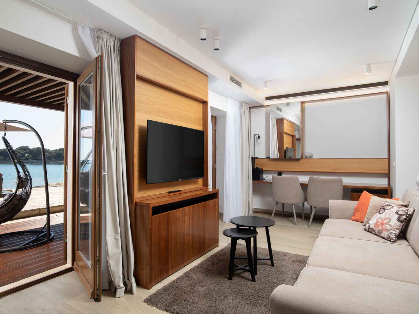 la maison: accès internet, sauna, bain à remous . nettoyage journalier (inclus). petit-déjeuner (inclus). place de parking (pour 2 voitures, en sus), garage individuel. borne de recharge électrique. magasins 3.5 km, supermarché 3.5 km, restaurant 1 km, bar 1 km, arrêt de bus 3.5 km, plage de graviers 5 m. bien convenant à 4 adultes. veuillez noter: aéroport 10 km de la maison.