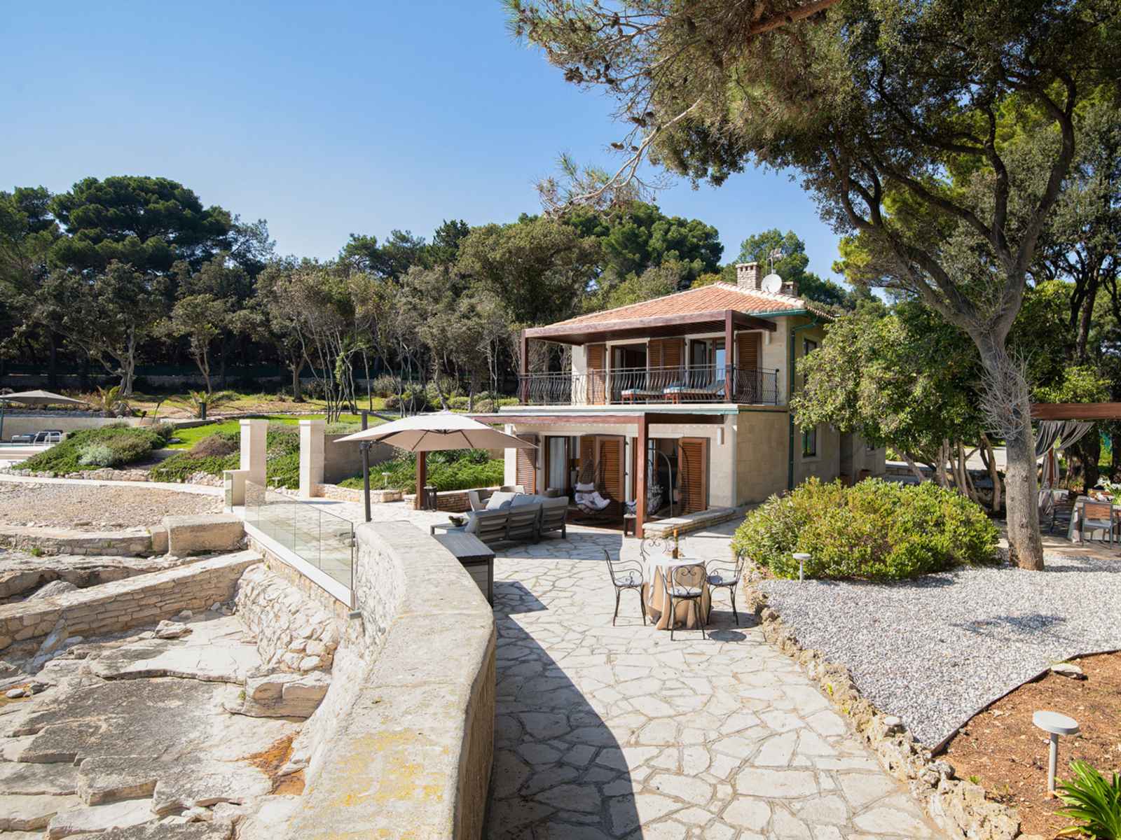 Villa "dubravka", de 2 étages. À 3.5 km du centre de fažana, à 5 m de la plage, accès direct à la plage. a usage privé: terrain 4'400 m2 (clôturé), piscine (7 x 4 m, 28 m2, profondeur 145 cm, disponibilité saisonnière: 01.mar. - 15.nov.) avec marches intérieures. douche extérieure, plage privée, meubles de jardin. infrastructures de
