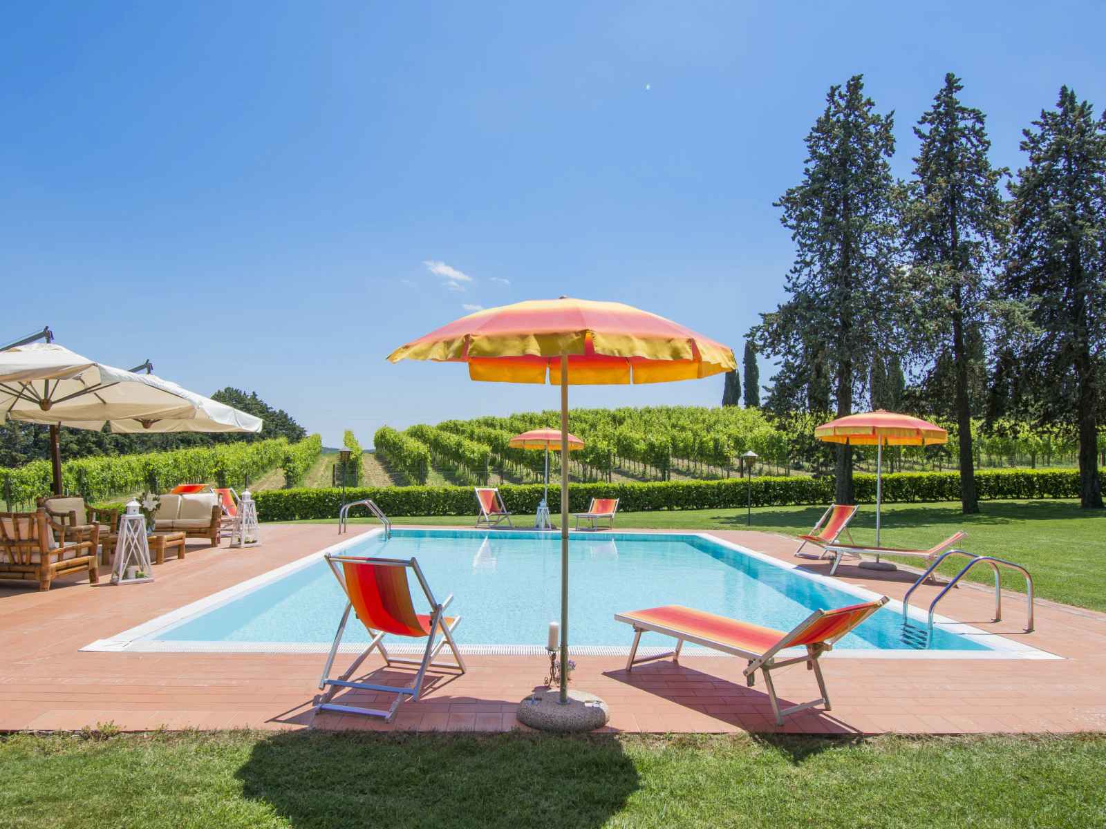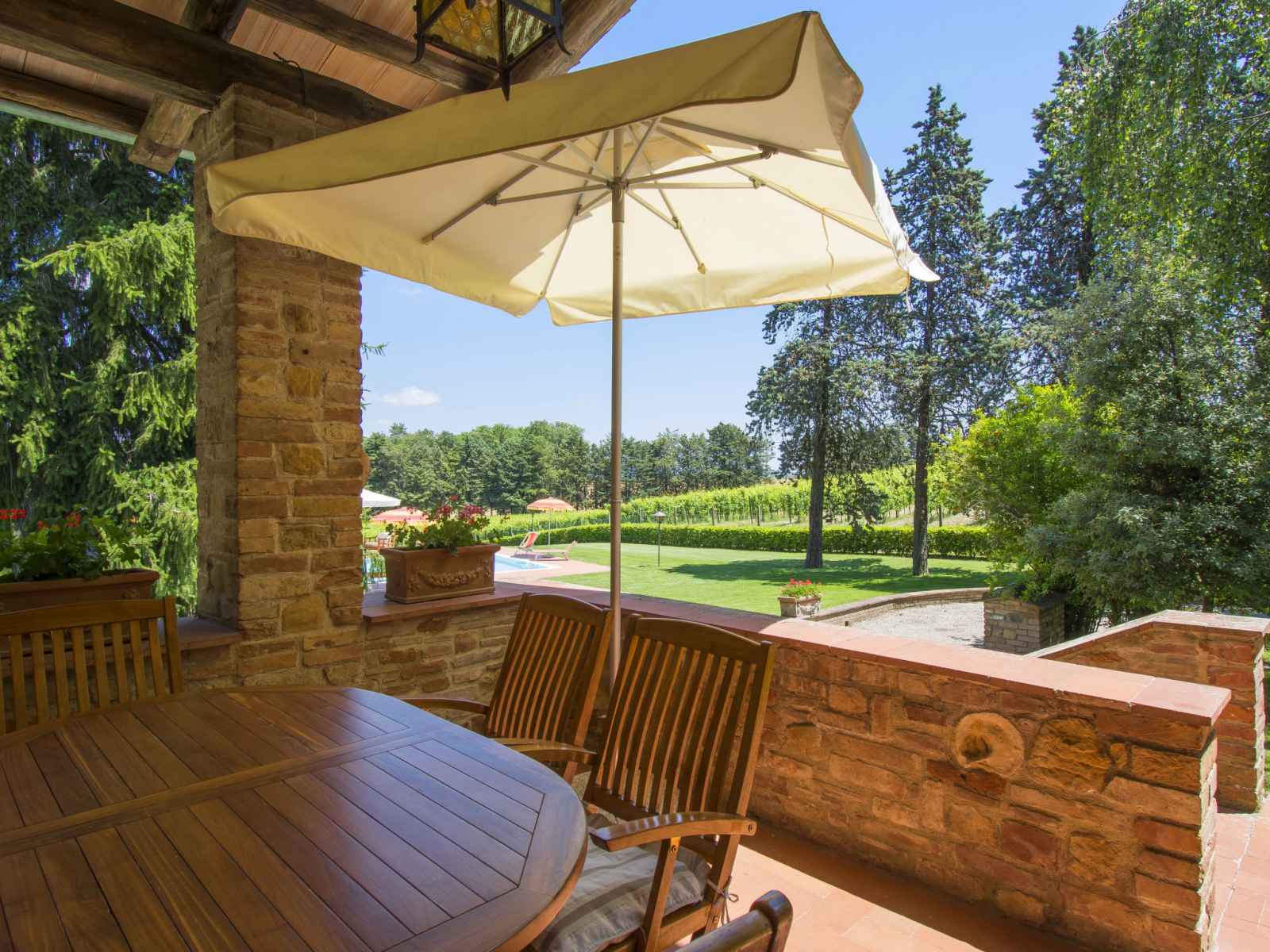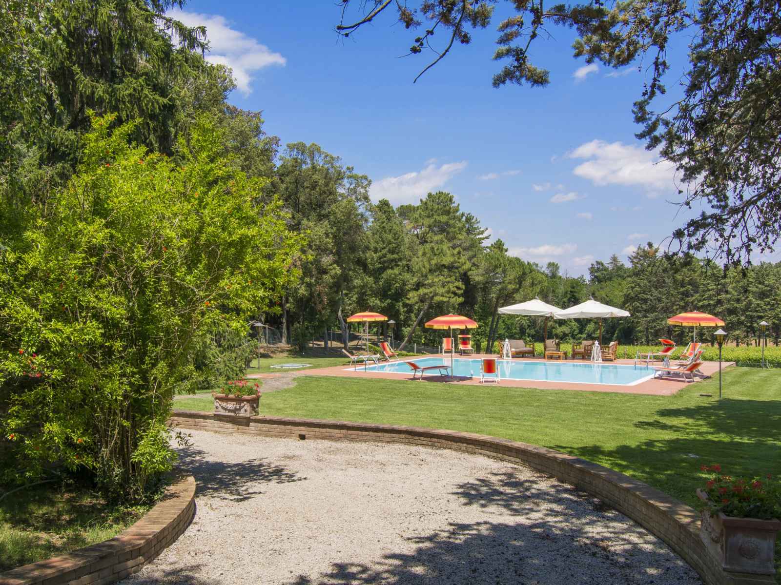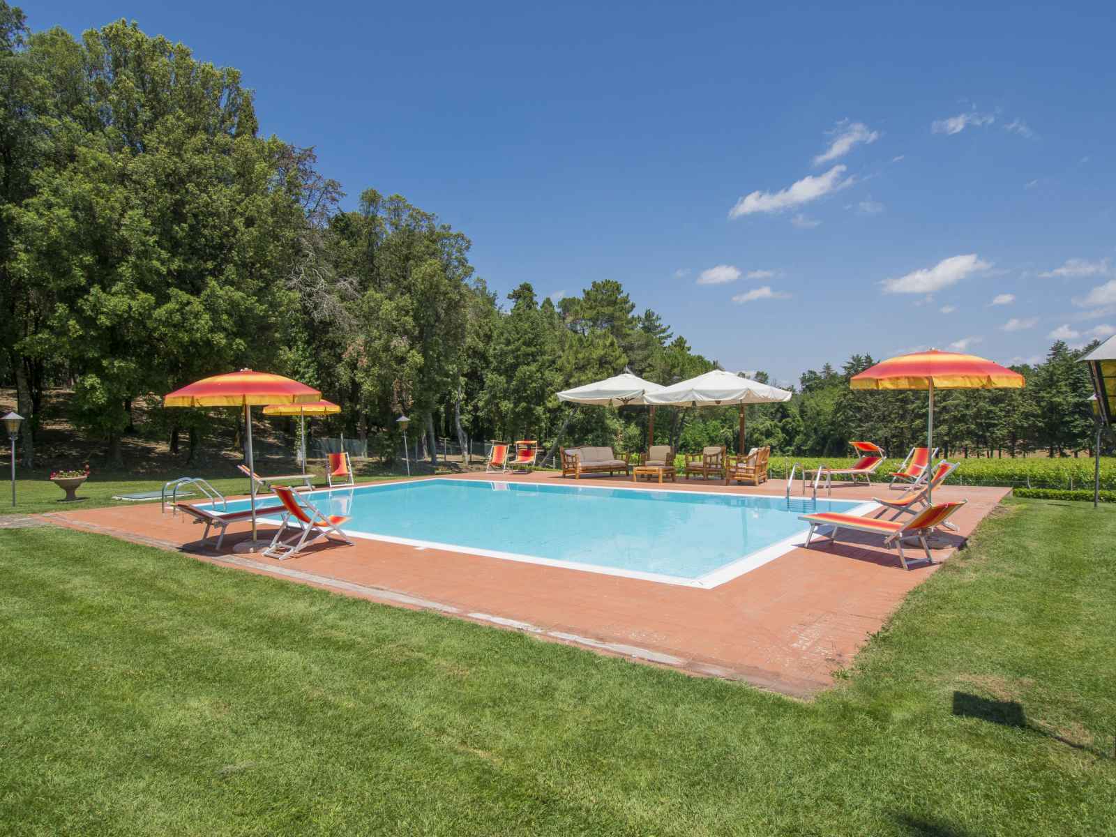 Villa "camporbiano". situation isolée. a usage privé: jardin 5'000 m2, piscine (6 x 12 m, profondeur 150 cm, disponibilité saisonnière: 26.mar. - 31.oct.). meubles de jardin. possibilité de chauffage uniquement du 01.nov. - 15.avr.. change de linge 1 fois par semaine. cuisinier possible (en sus). place de parking (couvert). magasins 7 km,