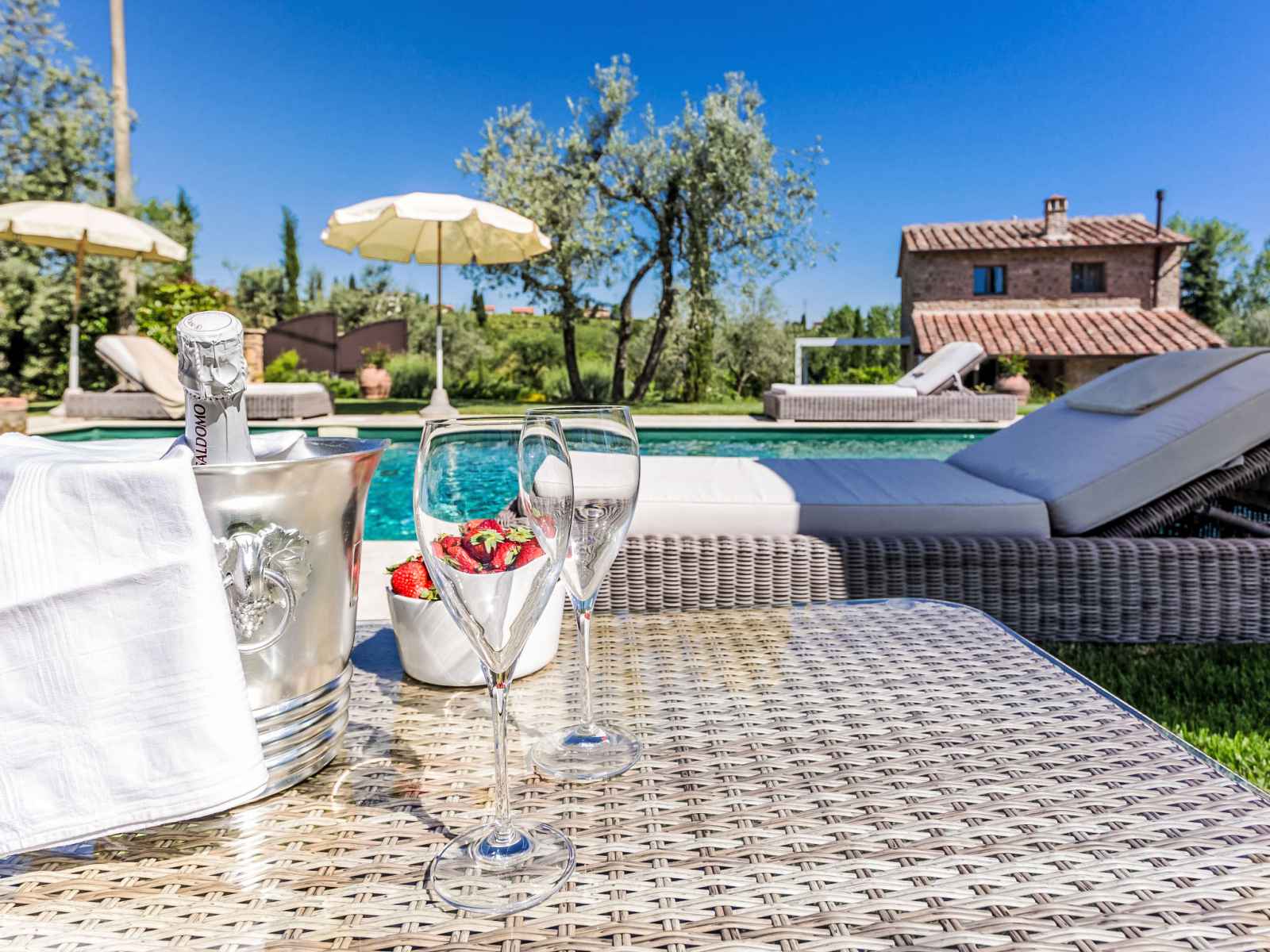 Belle villa luxueuse "meletta", année de construction 2015. À 3 km du centre de gambassi terme, à 19 km du centre de san gimignano, à 32 km du centre de volterra, situation tranquille. a usage privé: petit jardin 1'000 m2 (clôturé), piscine (5 x 11 m, profondeur 150 - 150 cm, disponibilité saisonnière: 06.mai. - 30.sep.) avec systeme