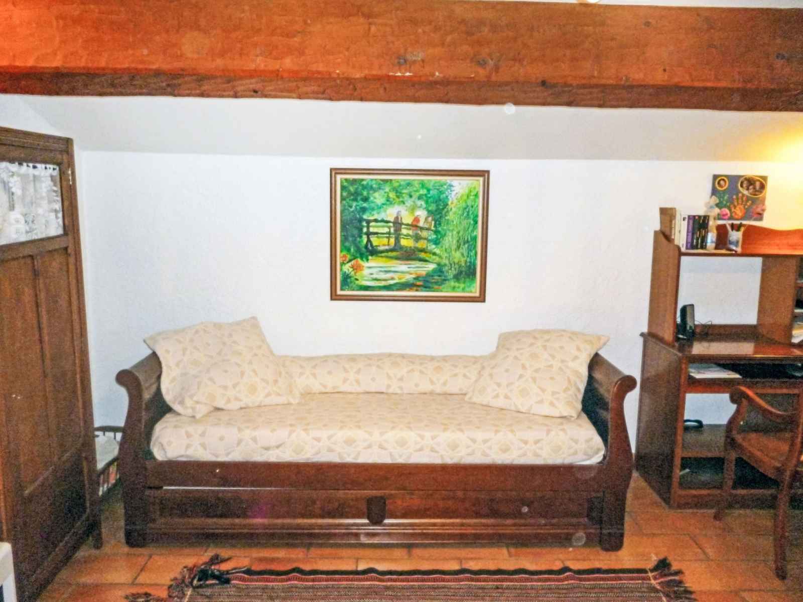 électrique). Salle de bains, WC séparé. Chauffage électrique. À l'étage supérieur: galerie avec 1 lit gigogne (2 pers. 2 x 90 cm, longueur 190 cm), WC séparés. 2 terrasses couverte, situation sud et situation est, grand jardin 600 m2. Meubles de terrasse, barbecue. A disposition: lave-linge. Internet (Connexion WIFI, gratuit). Place de parking, garage. Veuillez noter: détecteur de fumée. 8306500006639