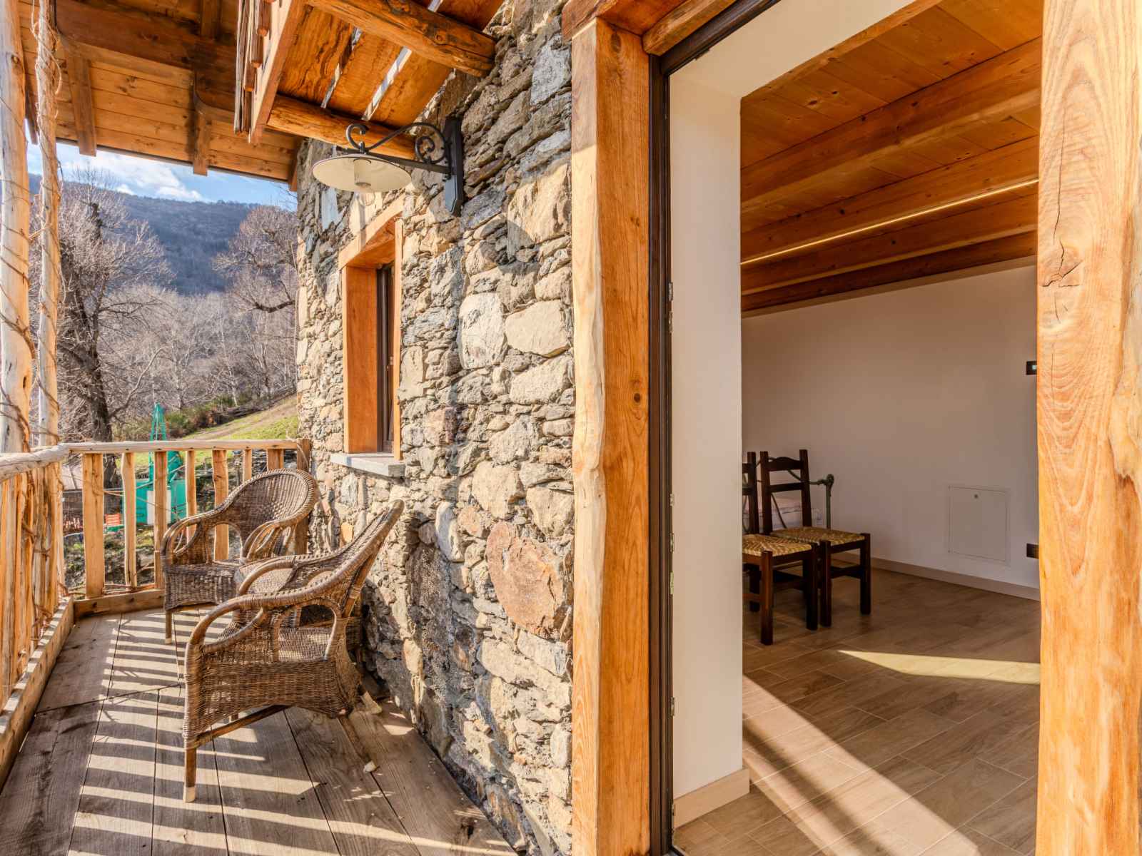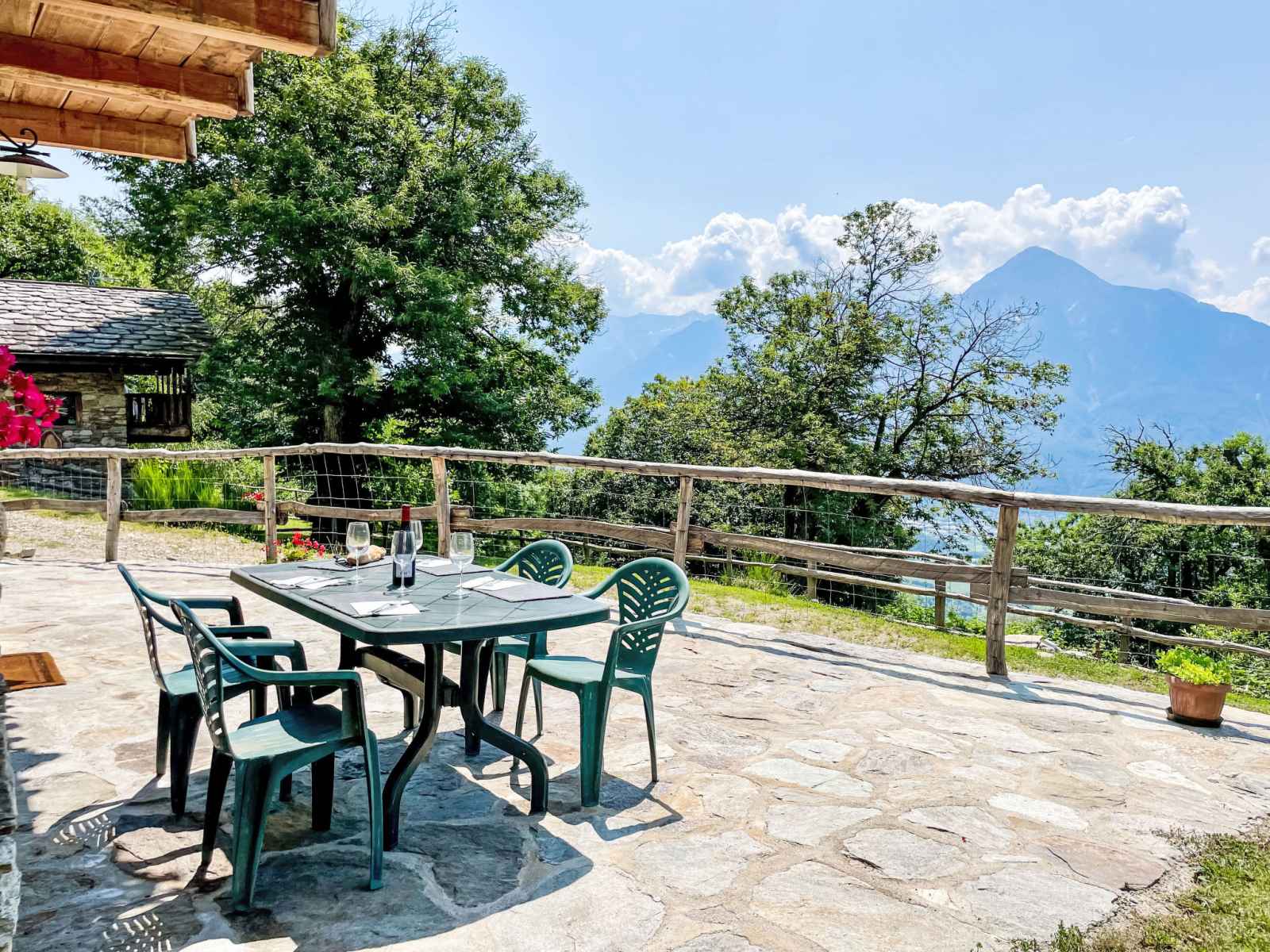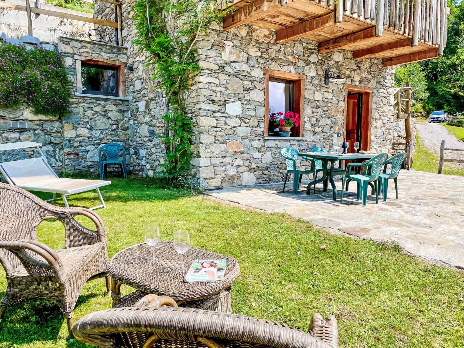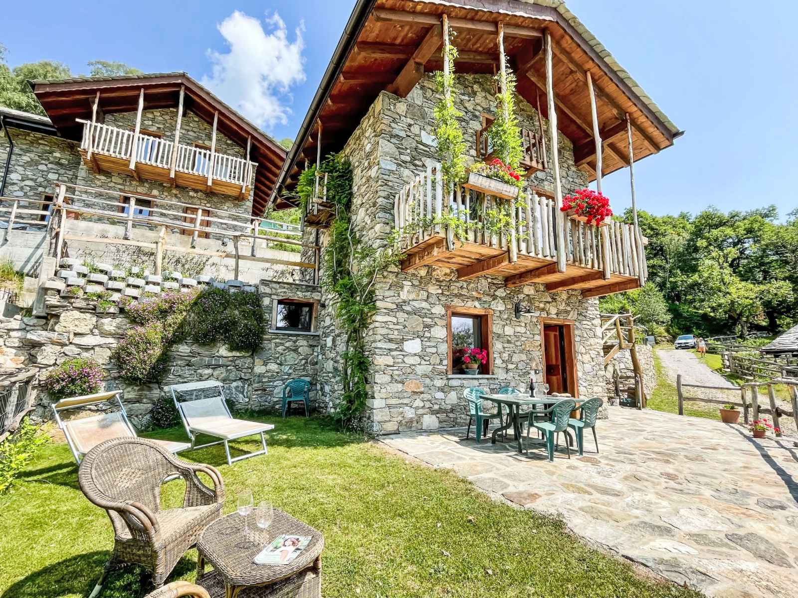"baita mirtillo", maison 3 pièces 85 m2 sur 3 niveaux, situation sud. aménagement confortable et rustique: séjour/salle à manger avec table pour les repas, coin repas et tv. sortie sur le jardin. cuisine ouverte (four, lave-vaisselle, 4 plaques à induction, micro-ondes, congélateur, cafetière électrique). douche/bidet/wc. À l'étage