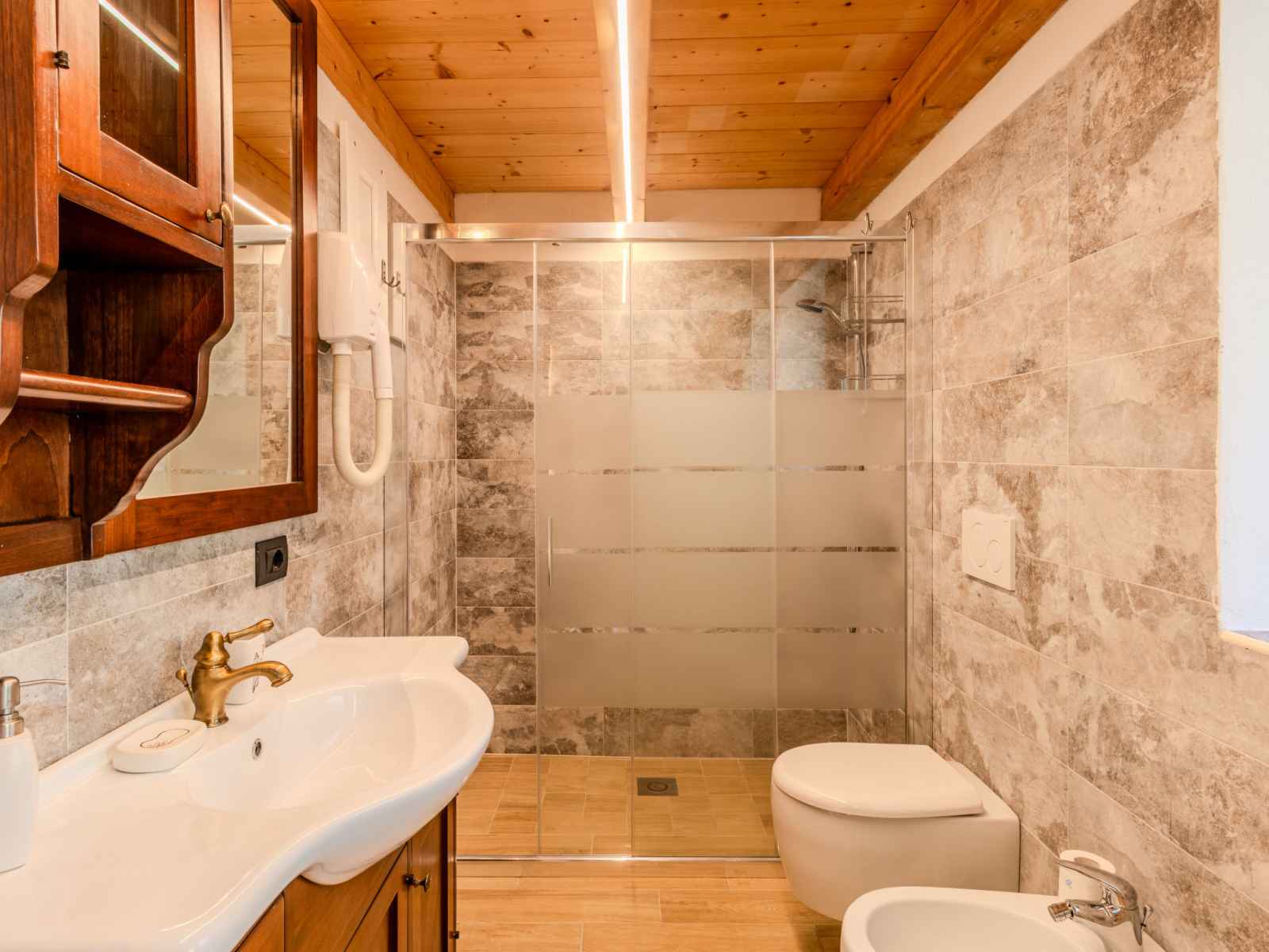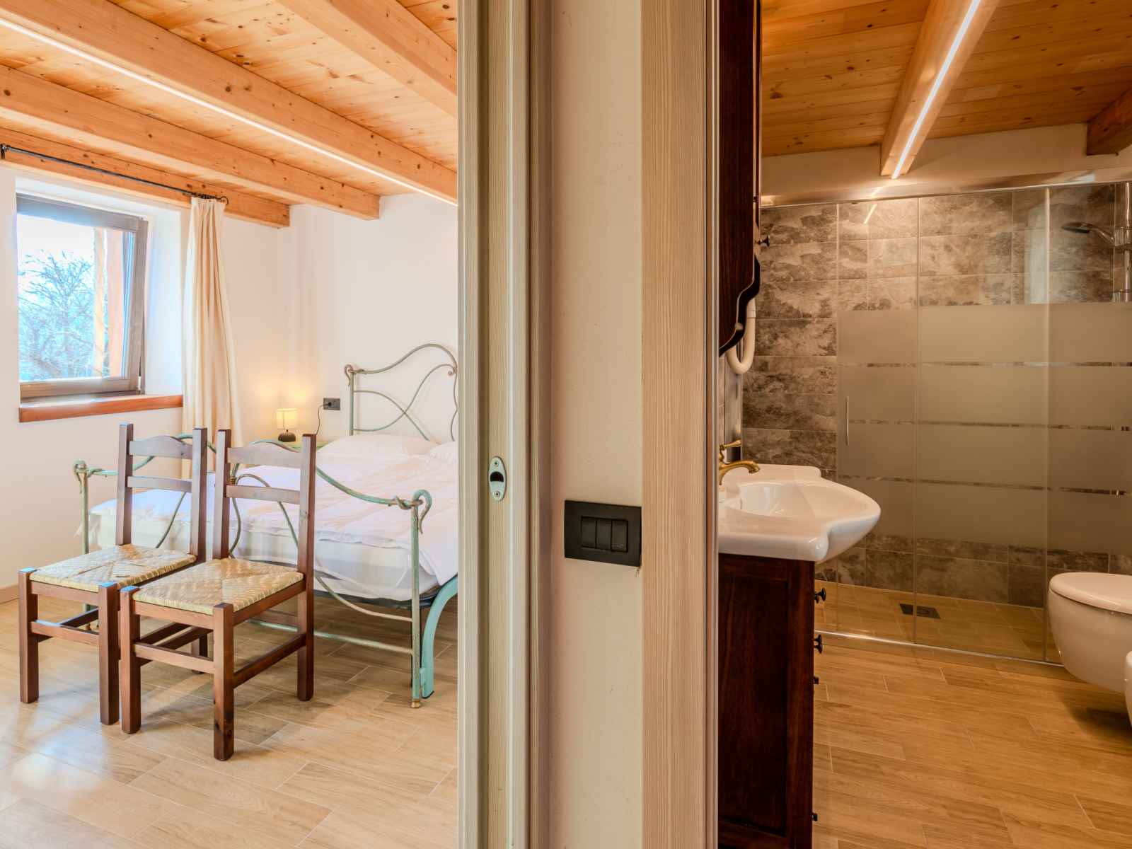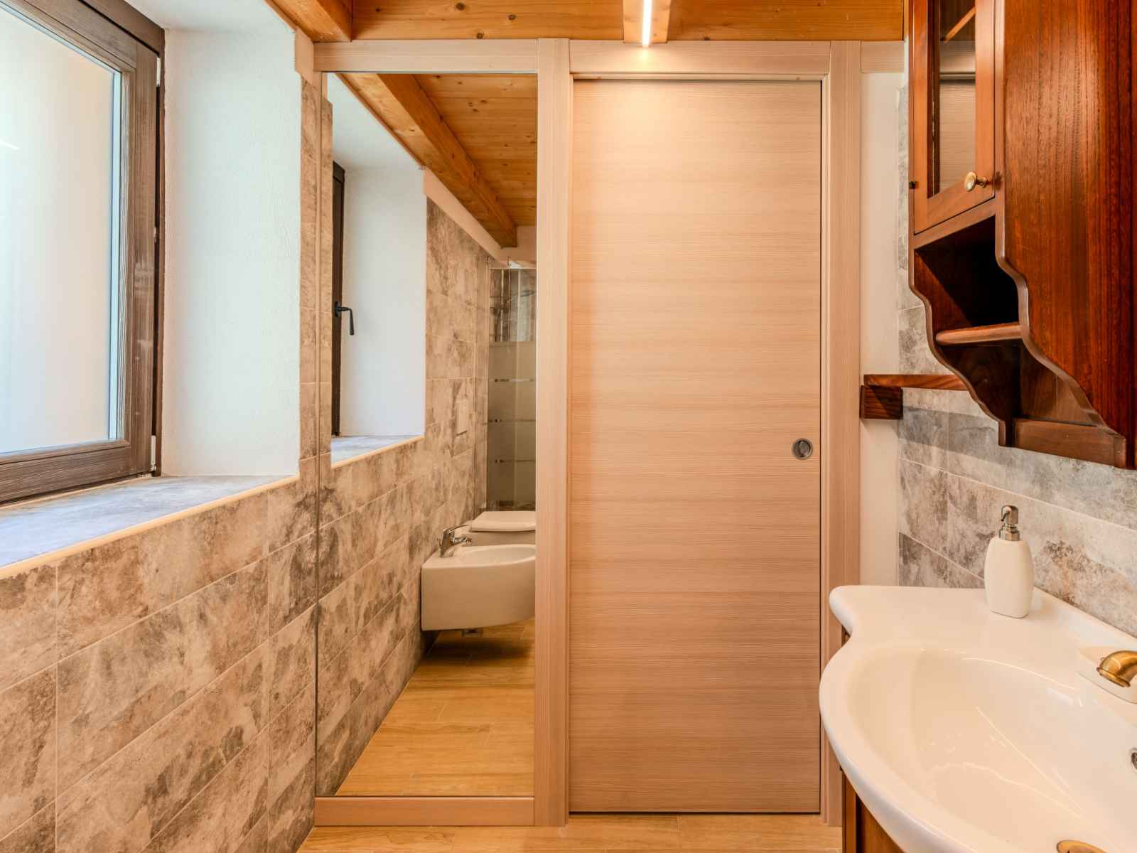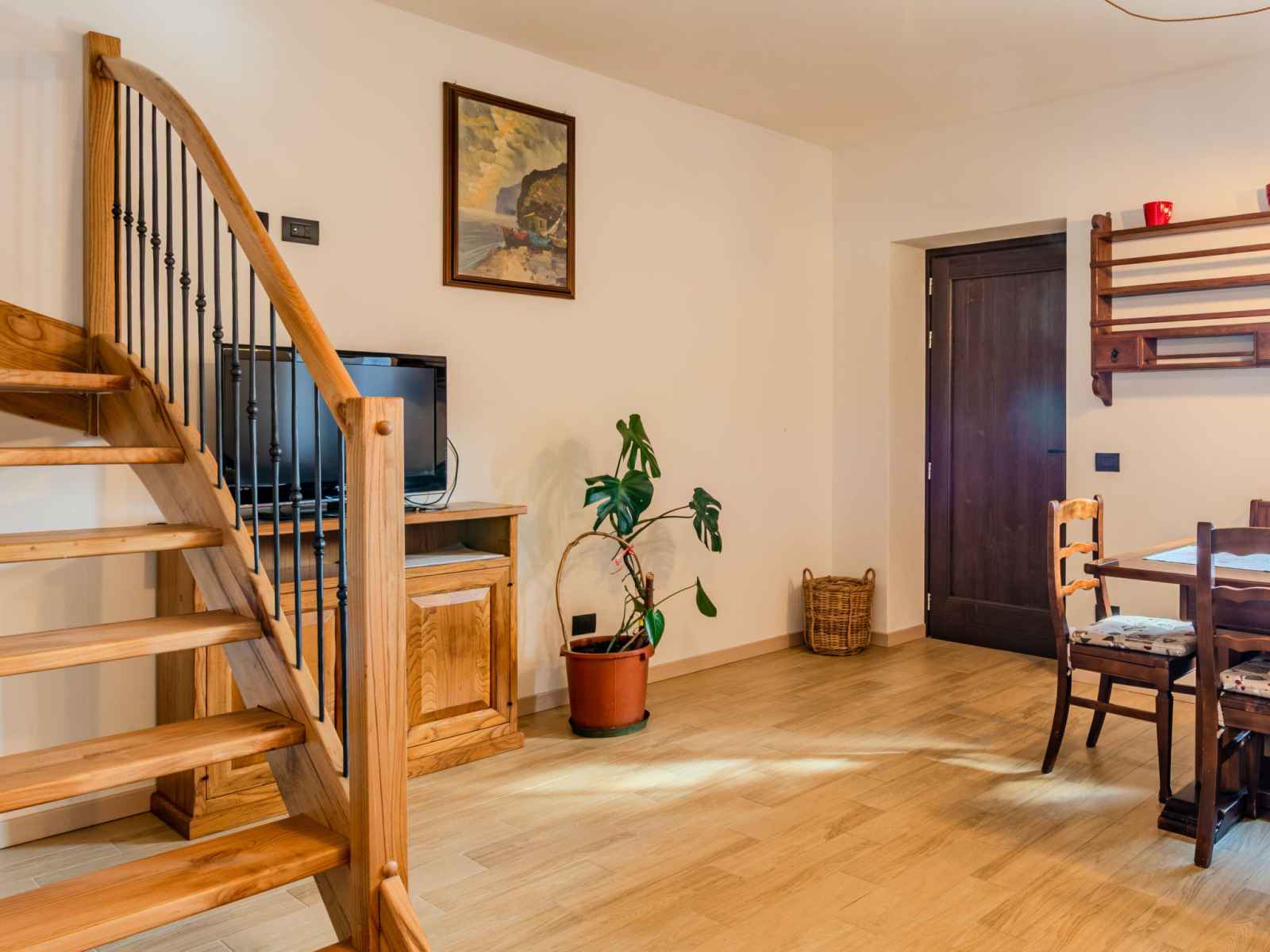"baita mirtillo", maison 3 pièces 85 m2 sur 3 niveaux, situation sud. aménagement confortable et rustique: séjour/salle à manger avec table pour les repas, coin repas et tv. sortie sur le jardin. cuisine ouverte (four, lave-vaisselle, 4 plaques à induction, micro-ondes, congélateur, cafetière électrique). douche/bidet/wc. À l'étage