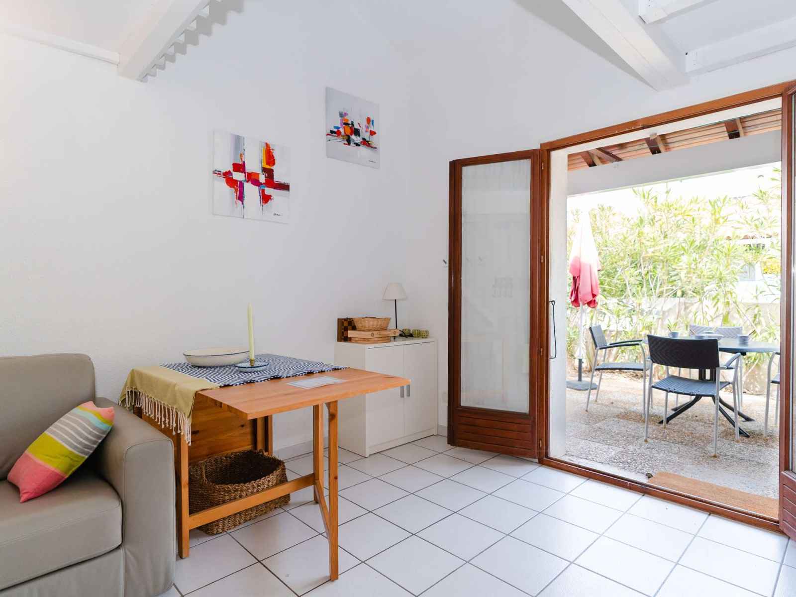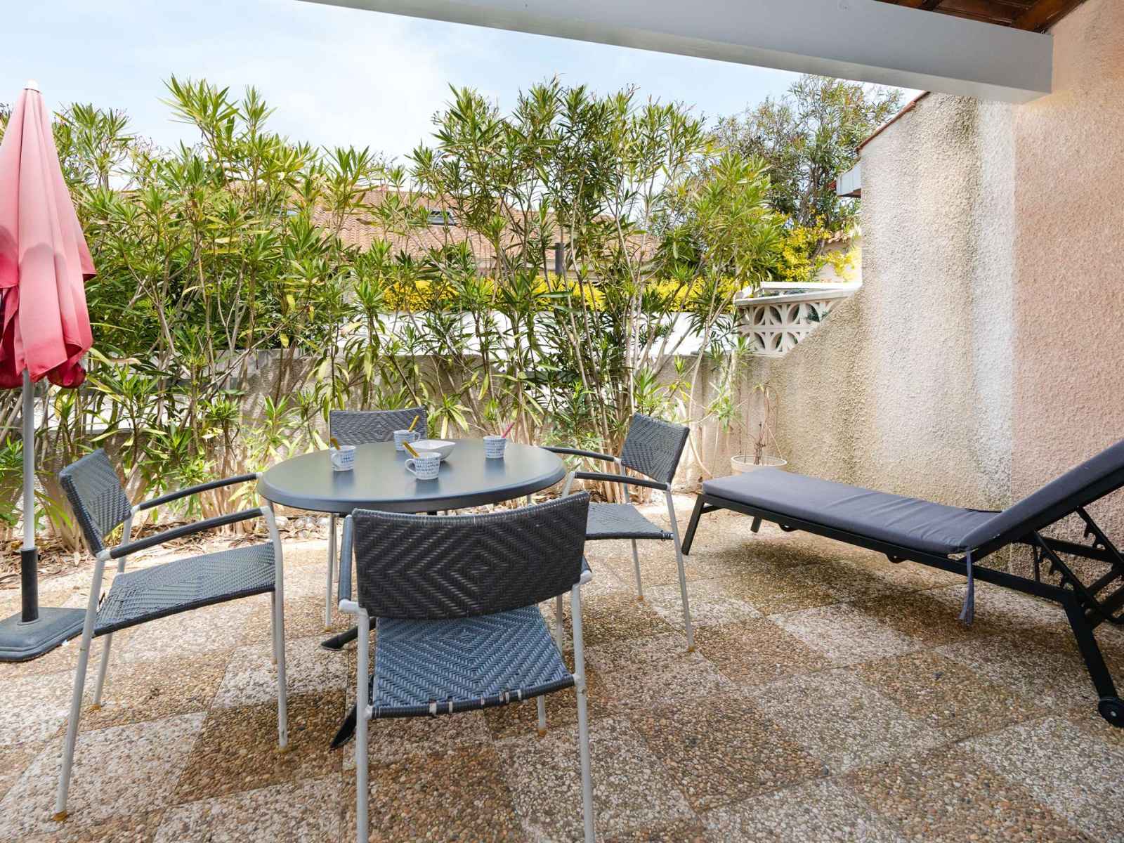 La terrasse dispose d'une table avec ses 4 chaises.