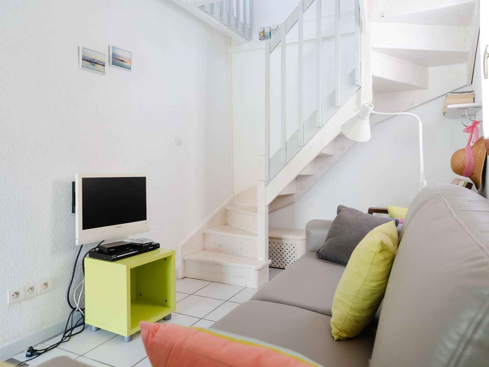 classique, bouilloire) un coin salon avec canapé, télévision, lecteur DVD; une salle d'eau avec WC.