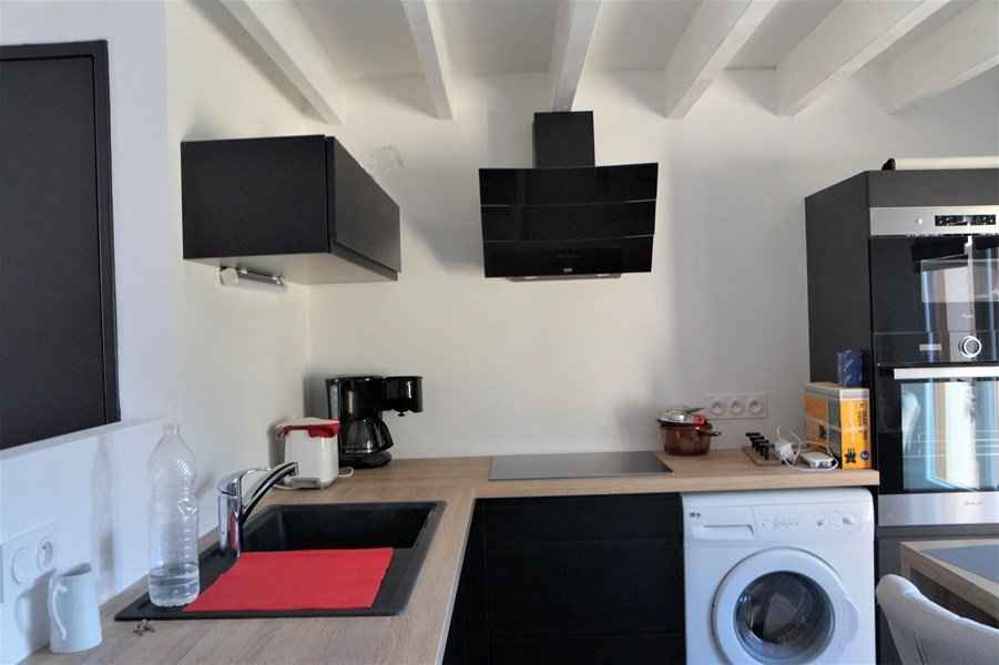 - un séjour avec cuisine ouverte aménagée et équipée, donnant sur la terrasse du jardin