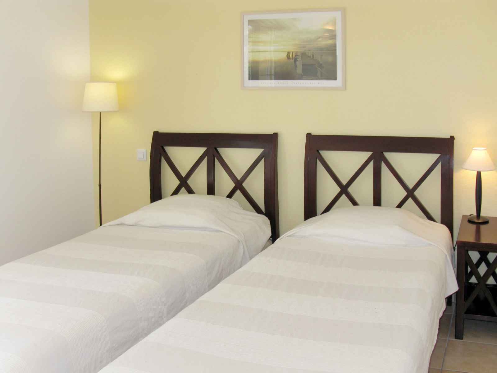 chambre avec 2 lits. Cuisine ouverte (four, lave-vaisselle, 4 plaques vitrocéramiques, micro-ondes, congélateur, cafetière électrique). Salle de bains, 3 WC séparés, 2 bains ou douches, double vasque. Chauffage électrique. 1 terrasses, pelouse 12'00 m2. Meubles de terrasse. A disposition: lave-linge, sèche-linge. Veuillez noter: logement non-fumeur. Maximum 2 animaux/ chiens autorisés.