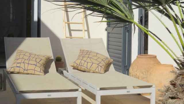 Superbe Terrasse avec salon de jardin, plancha,piscine privée transat avec accès direct à la plage.