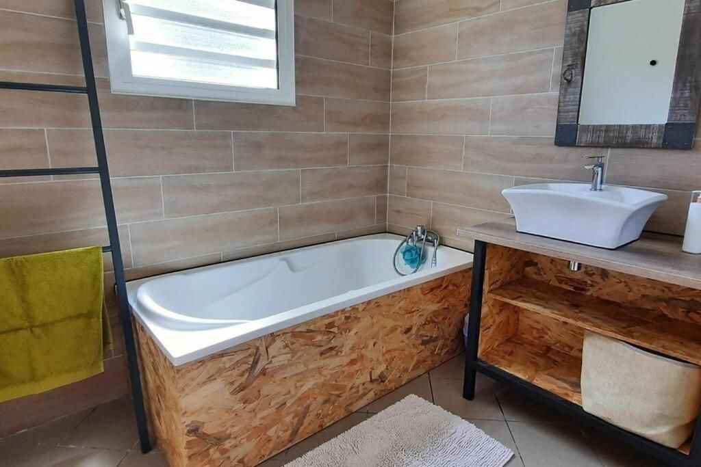 séparé, Un spacieux séjour-salon, Une cuisine entièrement équipée : machine à café, grille-pain, bouilloire, four, micro-ondes, lave-linge, lave-vaisselle et réfrigérateur. Départ : Aéroport de La Réunion Roland Garros, Sainte-Marie Sortez de l’aéroport, suivez Rue Georges Guynemer puis Allée Icare. Prenez la N2 direction Saint-Benoît. Continuez sur la N2 pendant environ 29 km. À Saint-Benoît, prenez la N3 direction Le Tampon / Plaine des Cafres. Suivez la N3 pendant environ 35 km, en passant par le Col de Bellevue. Arrivée dans Le Tampon À l’entrée du Tampon, suivez les panneaux vers Rue du Collège puis D70 (Rue Raphaël Douyère). Tournez ensuite vers Rue Roland Fabien Hoarau. Poursuivez via Chemin Deurveiller les Bas, puis Route du Piton Hyacinthe. Prenez Chemin des Acacias, puis Chemin Ferrier Lebon. Arrivée à : 25 Chemin Ferrier Lebon, 97418 Le Tampon –