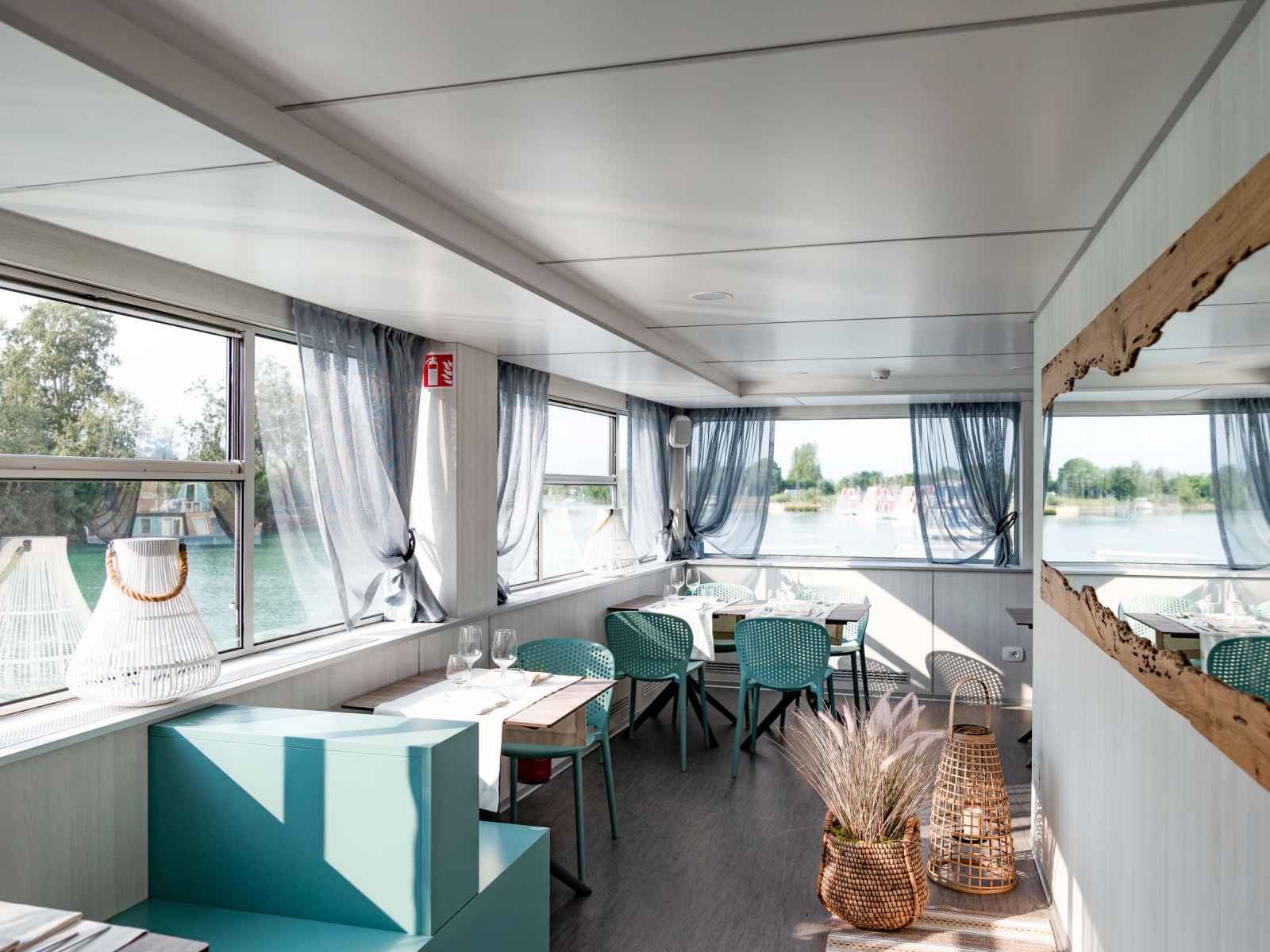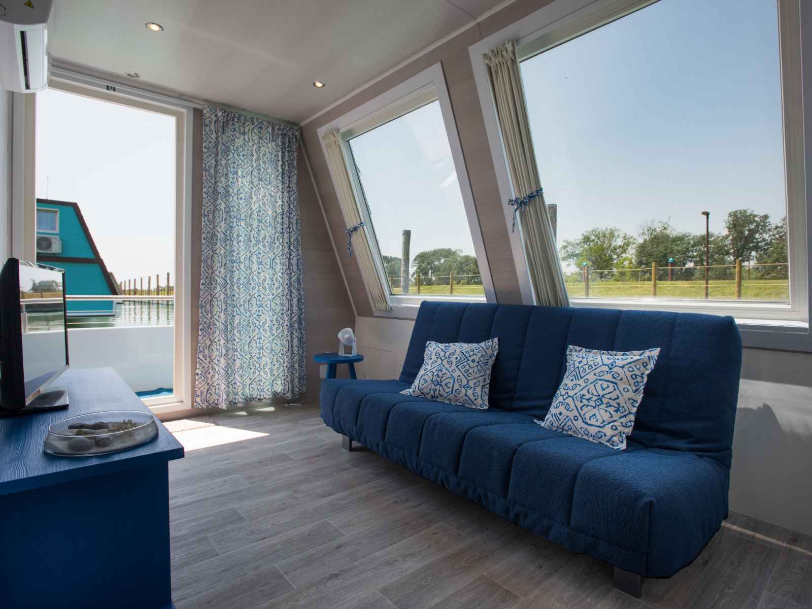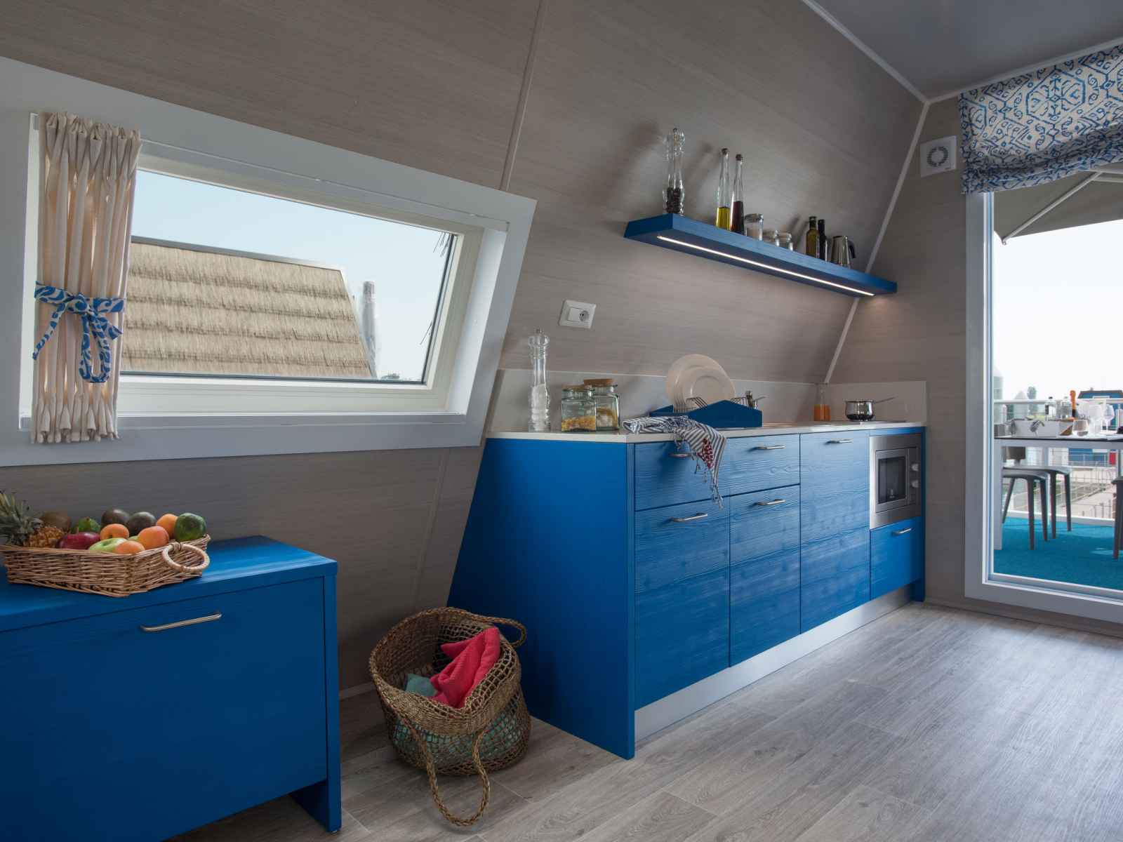 "houseboat garden", maison 4 pièces 65 m2 sur 2 niveaux. aménagement très agréable et de style: séjour/chambre à coucher avec 1 divan-lit double, table pour les repas et tv (satellite). sortie sur la terrasse. 1 chambre double avec dressing. 1 chambre avec 2 lits. douche/wc. À l'étage supérieur: salle à manger avec coin-cuisine. sortie