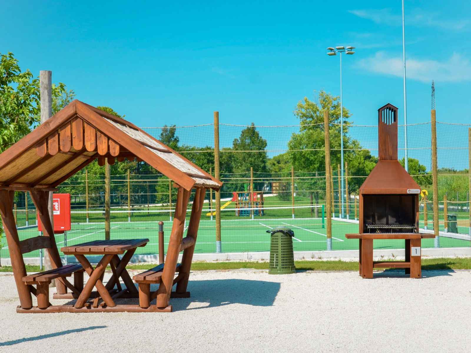 pelouse et arbres, piscine (450 m2, disponibilité saisonnière: 01.mai. - 29.sep.). piscine de forme irrégulière. bassin pour les enfants, bain à remous , tennis, terrain de pétanque, beach volley, barbecue, espace de jeux pour les enfants. infrastructures de la résidence: restaurant, bar, lave-linge, sèche-linge (en commun, en sus), location de bicyclettes. change de linge 1 fois par semaine. changementde linge de toilette 2 fois par semaine. nettoyage 2 fois par semaine. petit-déjeuner et demi-pension possible (en sus). places de parking centrales. borne de recharge électrique. supermarché 5 km, arrêt de bus 600 m, gare ferroviaire "latisana (venezia-trieste)" 18 km, plage de sable 3.5 km. terrain de golf (18 trous) 2 km, piste cyclable 100 m. attractions à proximité: pool-bar plus minimarket, oasi naturalistica val grande 8 km, venezia 95 km, golf club lignano: 20 % reduction on, green fee. veuillez noter: complexe de vacances sans voiture.