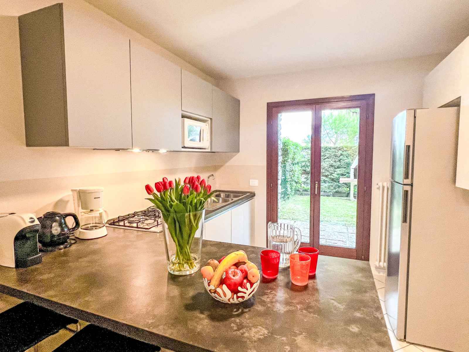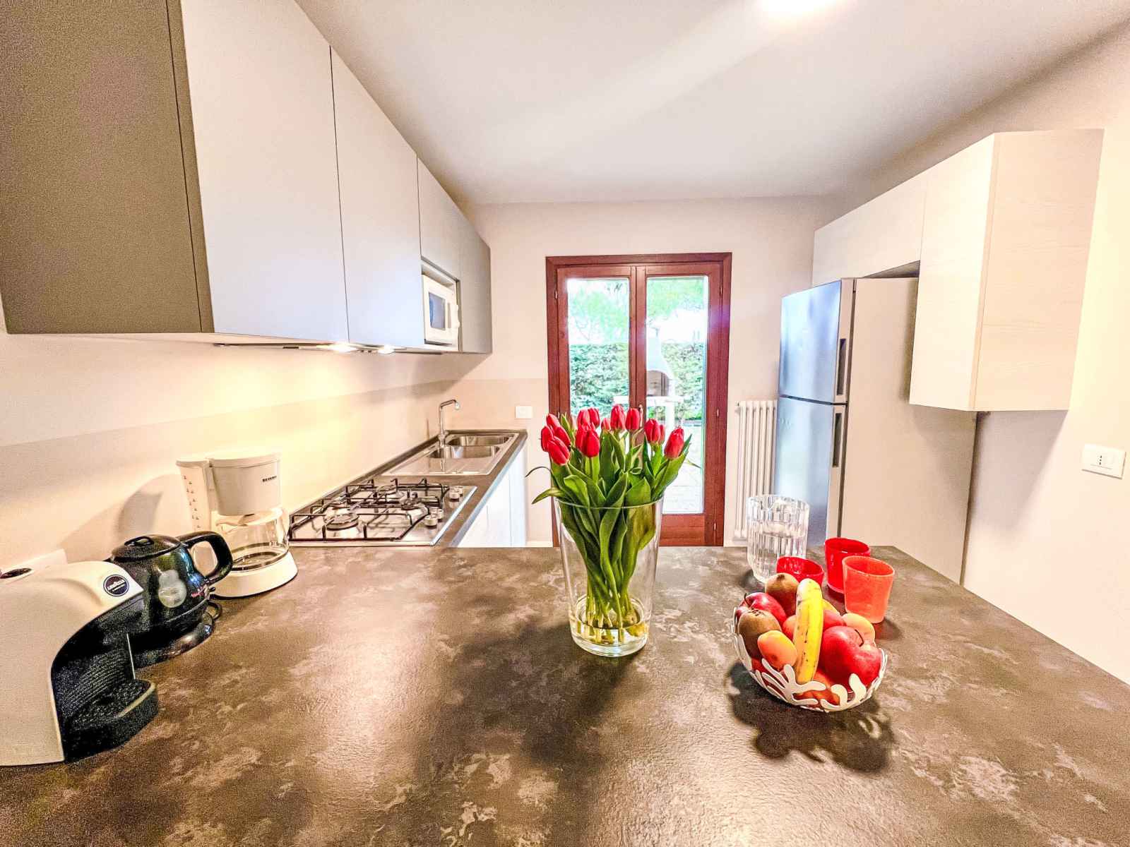 terrasse. a usage privé: terrain (clôturé), pelouse et plantes. supermarché 500 m, restaurant 700 m, arrêt de bus 250 m, gare ferroviaire "latisana (venezia-trieste)" 20 km, plage de sable 1 km, centre thermal "bibione thermae" 15 km. terrain de golf (18 trous) 5 km.