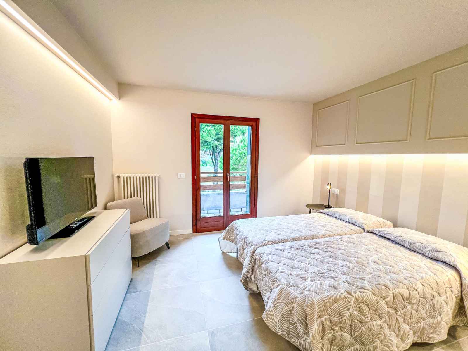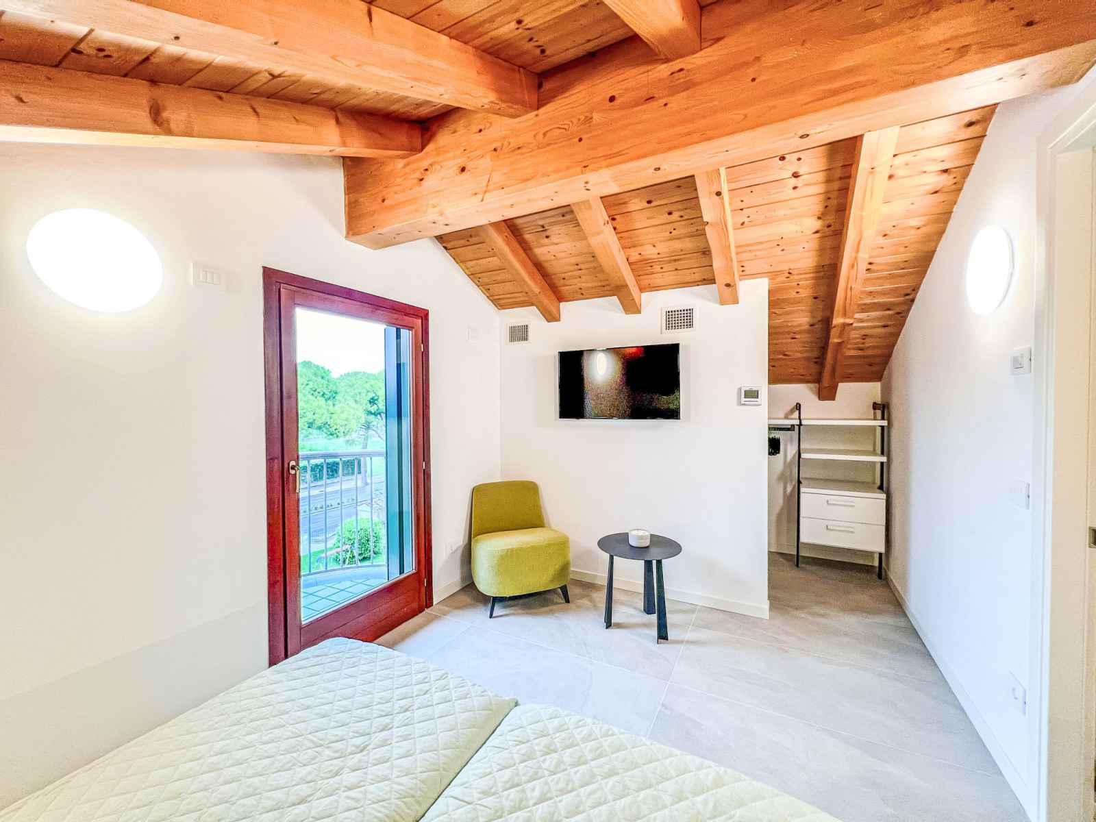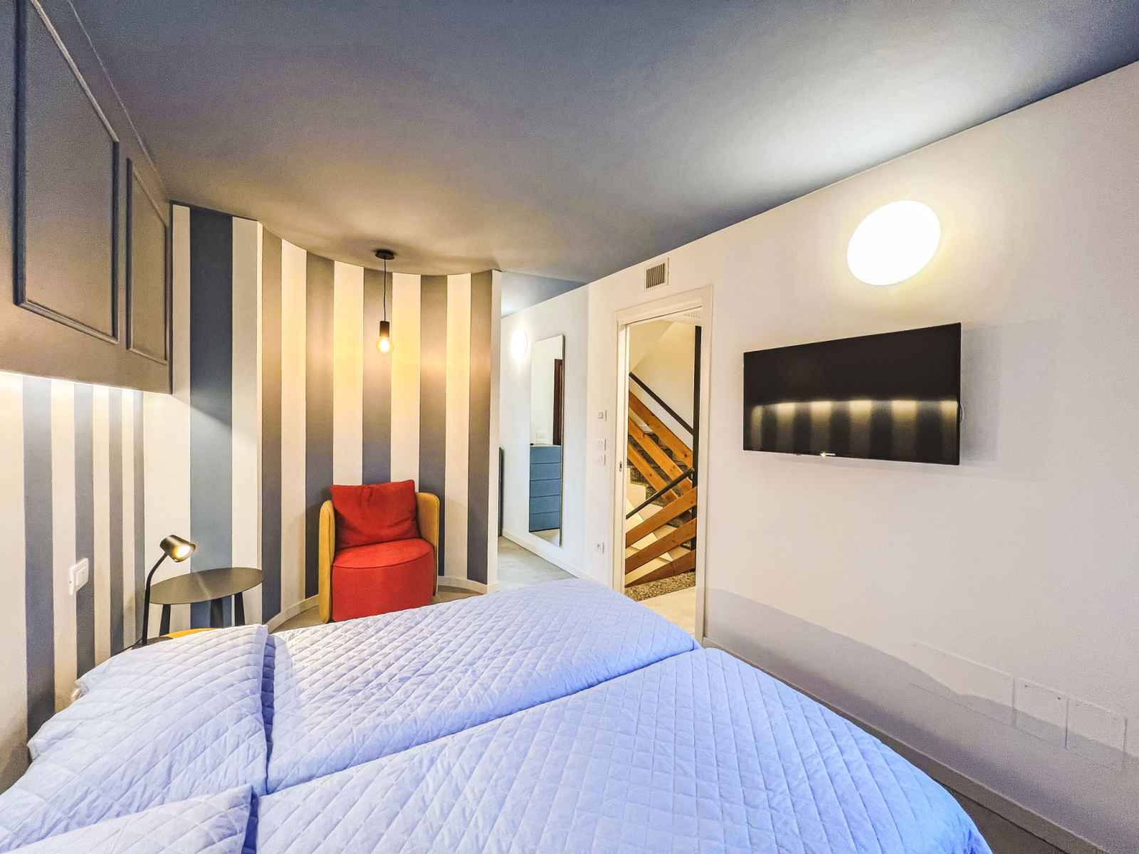 électrique). Sortie sur la terrasse. Douche/WC. À l'étage supérieur: 2 chambres doubles. Douche/bidet/WC. Sous le toit: 1 chambre avec 2 lits. Douche/bidet/WC. Chauffage au gaz, air-conditionné. 3 balcons, terrasse couverte, jardin. Meubles de terrasse, barbecue, chaises longues (3). A disposition: lave-linge, coffre-fort, lit bébé jusqu'à 2 ans (en sus). Internet (Connexion WIFI, gratuit). Garage sur le terrain (2 Voitures) près de la maison. Maximum 1 animal/ chien de petite taille autorisé. Plus cafetière èletrique pour Espresso ("Lavazza A Modo Mio"). Pas de frais supplémentaires obligatoires à régler sur place, sauf pour la taxe de séjour Linge de lit, ménage final et coûts énergétiques inclus. IT030049B4LATERUUI