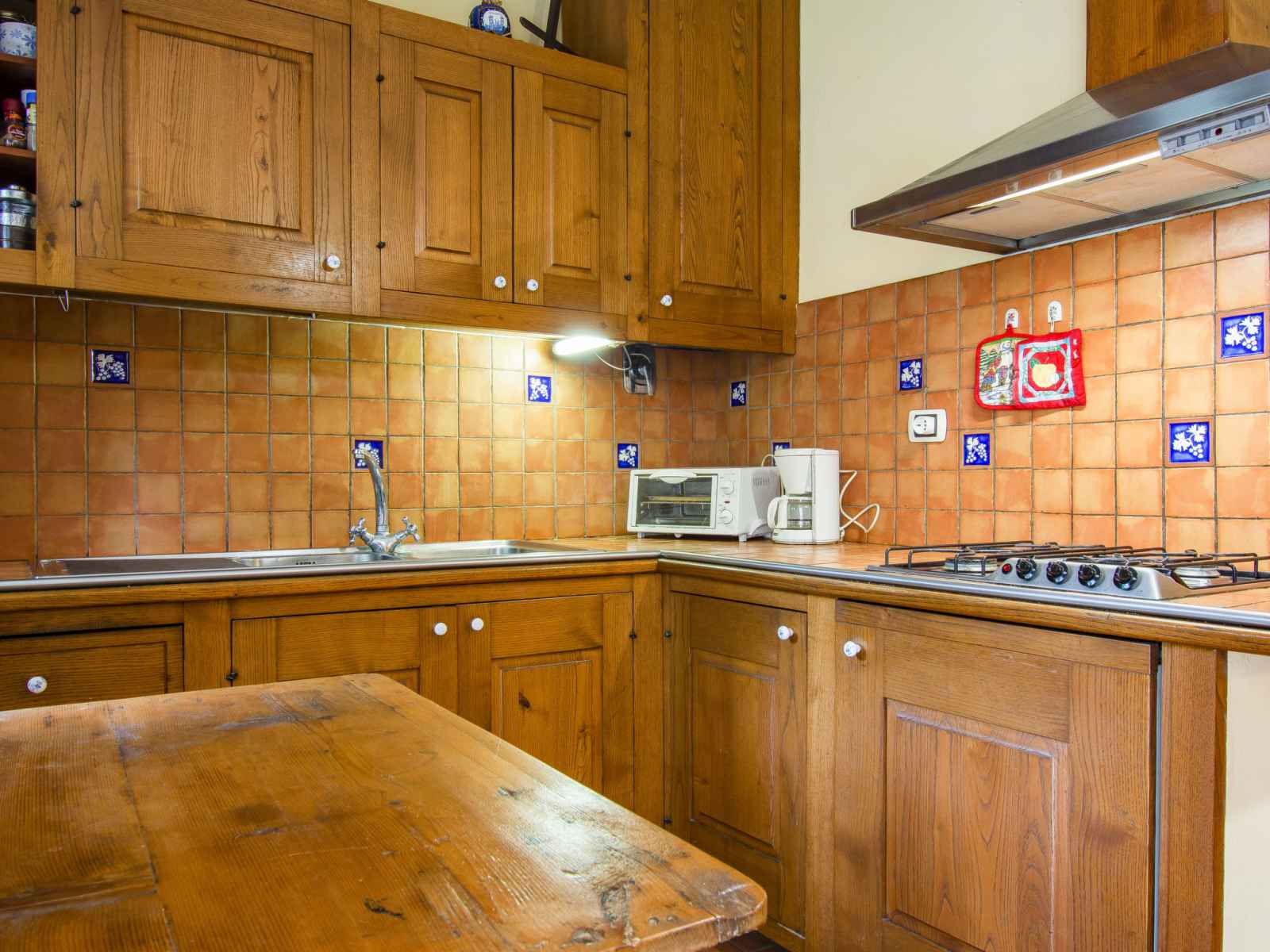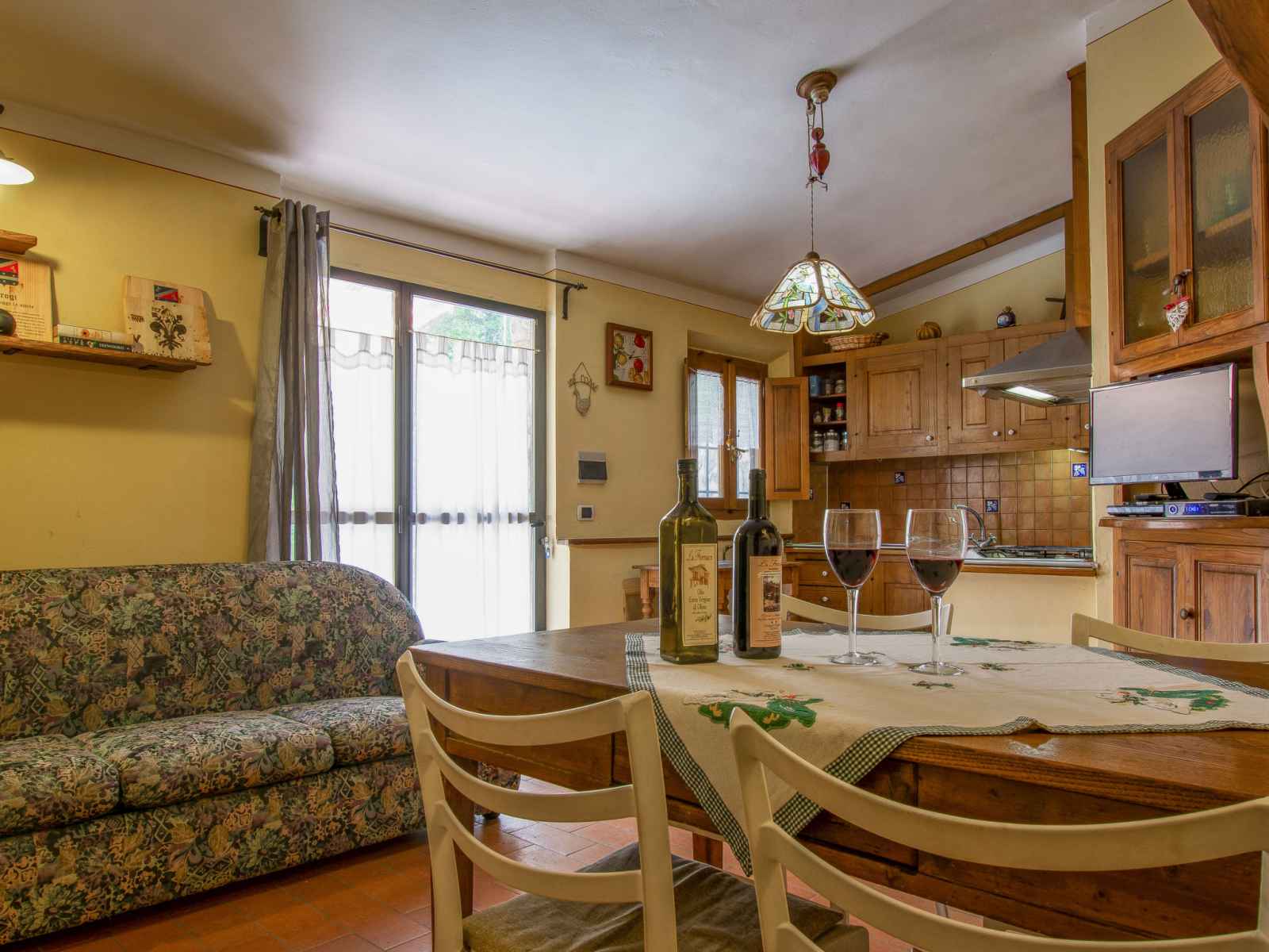 Maison jumelée 2 pièces 45 m2. rénovée, aménagement rustique: séjour/chambre à coucher avec 1 divan-lit double, table pour les repas et tv (satellite). sortie sur la terrasse. 1 chambre avec 1 lit double. cuisine ouverte (4 feux, cafetière électrique). douche/bidet/wc. chauffage au gaz. terrasse. meubles de terrasse. a disposition: lit