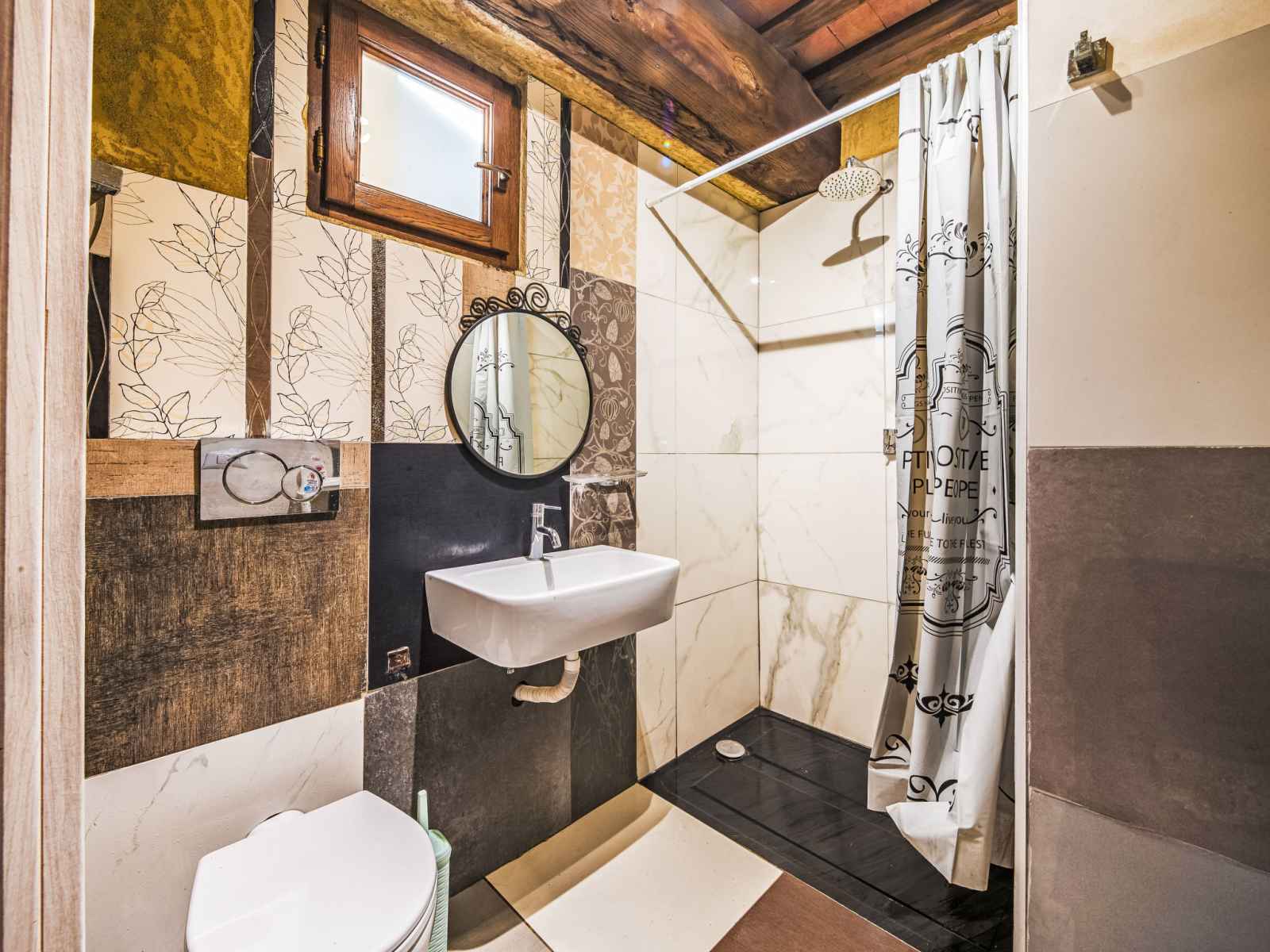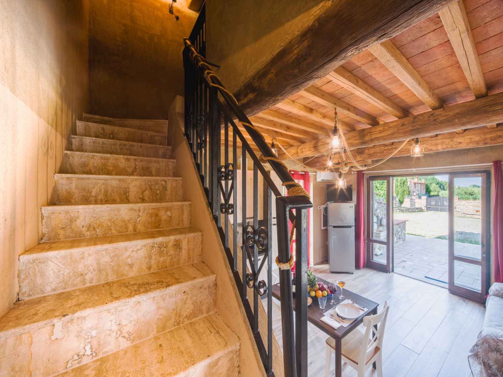 Maison 2 pièces 50 m2 sur 2 niveaux. aménagement agréable et rustique: cuisine/séjour (four, lave-vaisselle, 4 feux, grille-pain, bouilloire électrique, cafetière électrique) avec table pour les repas, tv (satellite), écran plat et air-conditionné. sortie sur la terrasse. À l'étage supérieur: 1 chambre double avec 1 lit.