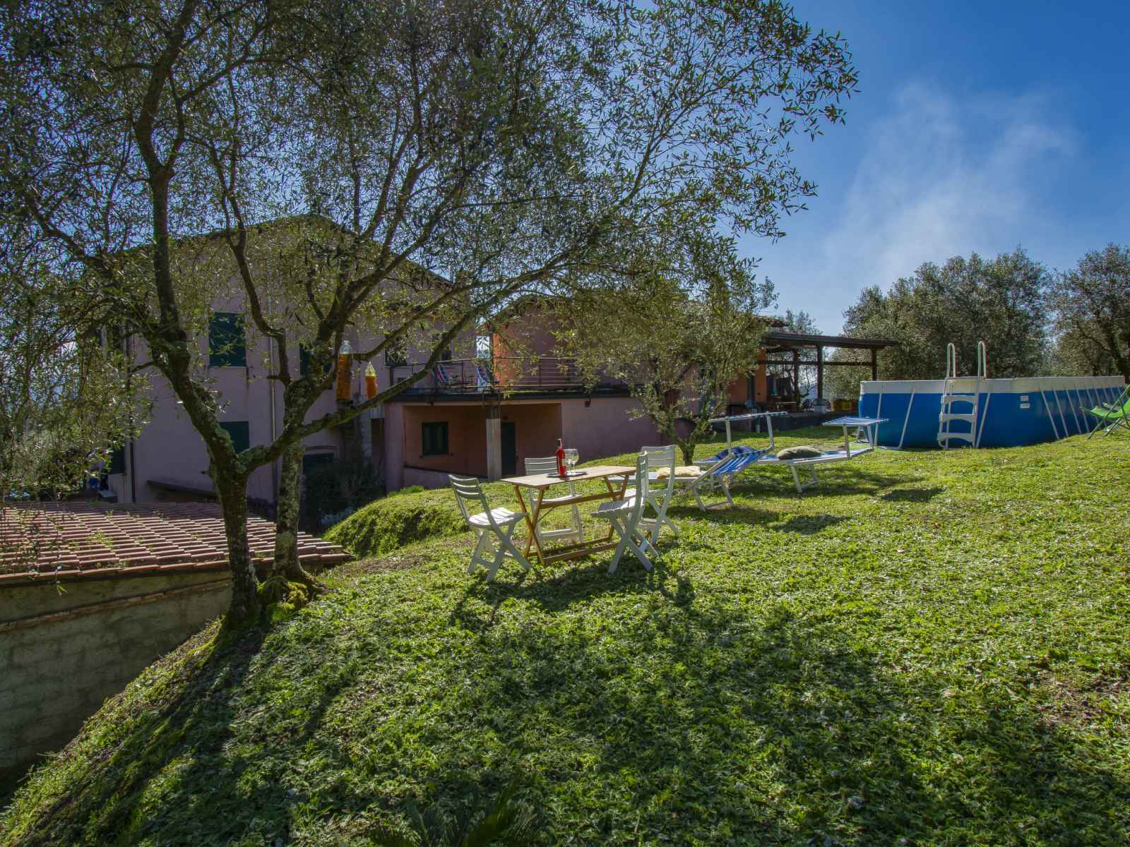 sol) à l'abri des regards (7 x 4 m, profondeur 120 - 120 cm, disponibilité saisonnière: 01.mai. - 30.sep.). meubles de jardin, barbecue, espace de jeux pour les enfants (toboggan, balançoire). infrastructures de la maison: connexion wifi, chauffage central, lave-linge, possibilité de chauffage uniquement du 15.nov. - 15.avr.. accès en voiture (300 m chemin non goudronné). place de parking (pour 3 voitures). magasin d'alimentation 1 km, supermarché 3 km, restaurant 1 km, arrêt de bus 450 m. attractions à proximité: lucca 6 km, pisa 25 km, viareggio 20 km, firenze 85 km. veuillez noter: certaines parties de la maison sont fermées et inoccupées. le propriétaire habite dans une partie de maison indépendante. le propriétaire a un chien.