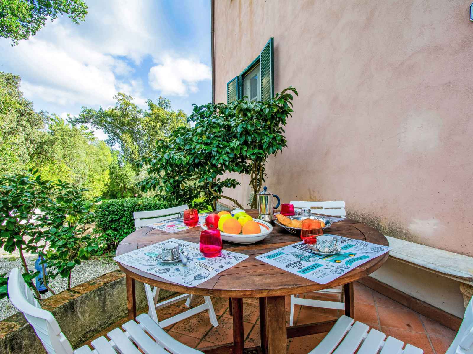 Maison de campagne accueillante, confortable, individuelle "la pergola", année de construction 1888, rénovée en 2021, environnée par les arbres et champs. dans le quartier de san macario in monte en-dehors de la localité, à 6 km du centre de lucca. a usage privé: jardin naturel 1'000 m2, jardin propice à la détente, étang, piscine (hors