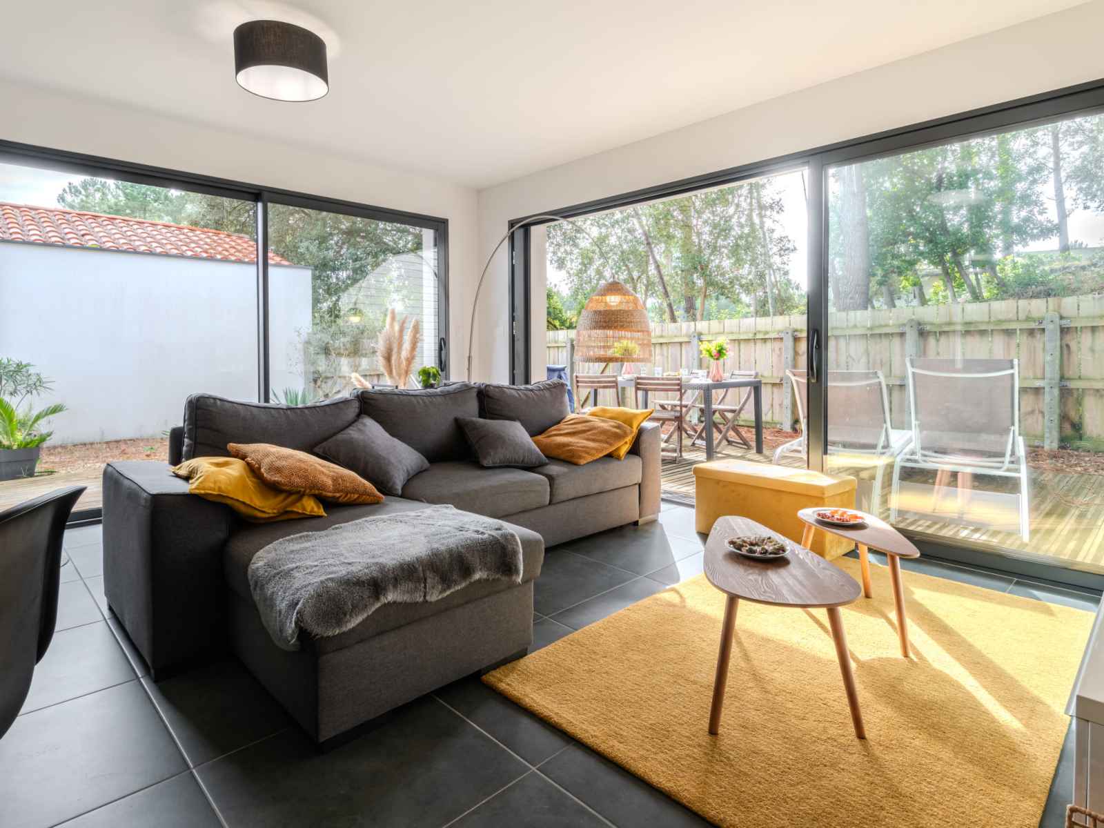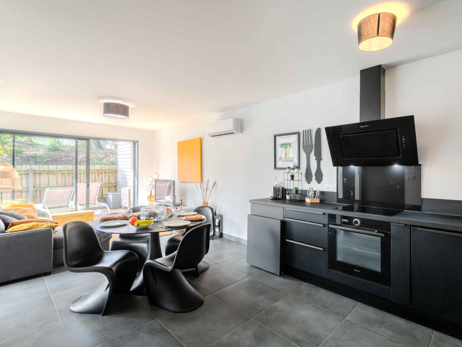 Maison 3 pièces 67 m2. aménagement moderne: séjour/salle à manger avec 1 divan-lit (130 cm, longueur 190 cm), tv et chaînes de tv internationales (écran plat), air-conditionné et volet roulant électrique. sortie sur la terrasse. 1 chambre avec 1 grand-lit (160 cm, longueur 200 cm). 1 chambre avec 1 grand-lit (160 cm, longueur 200 cm).