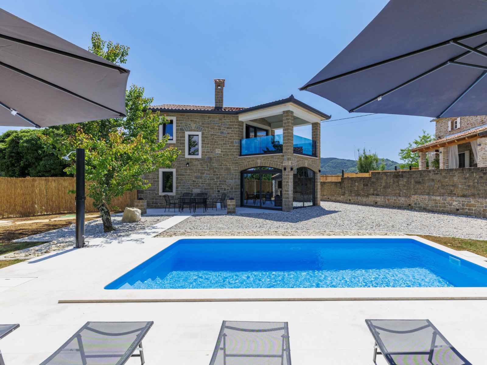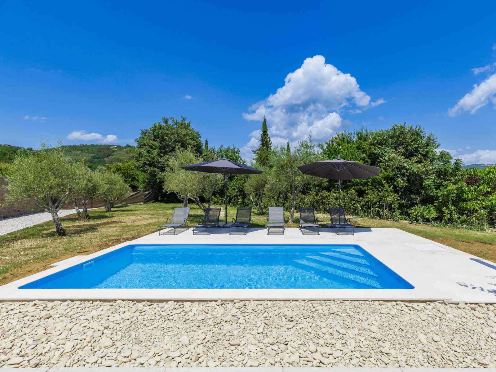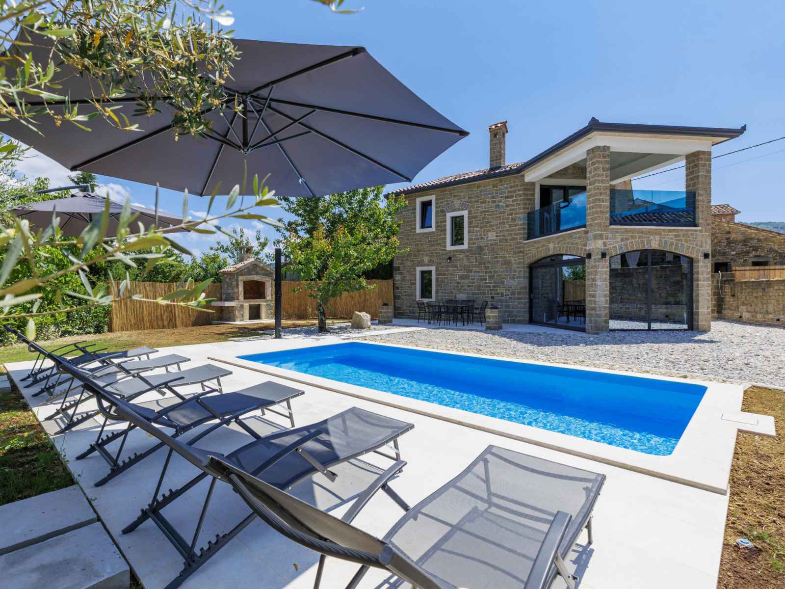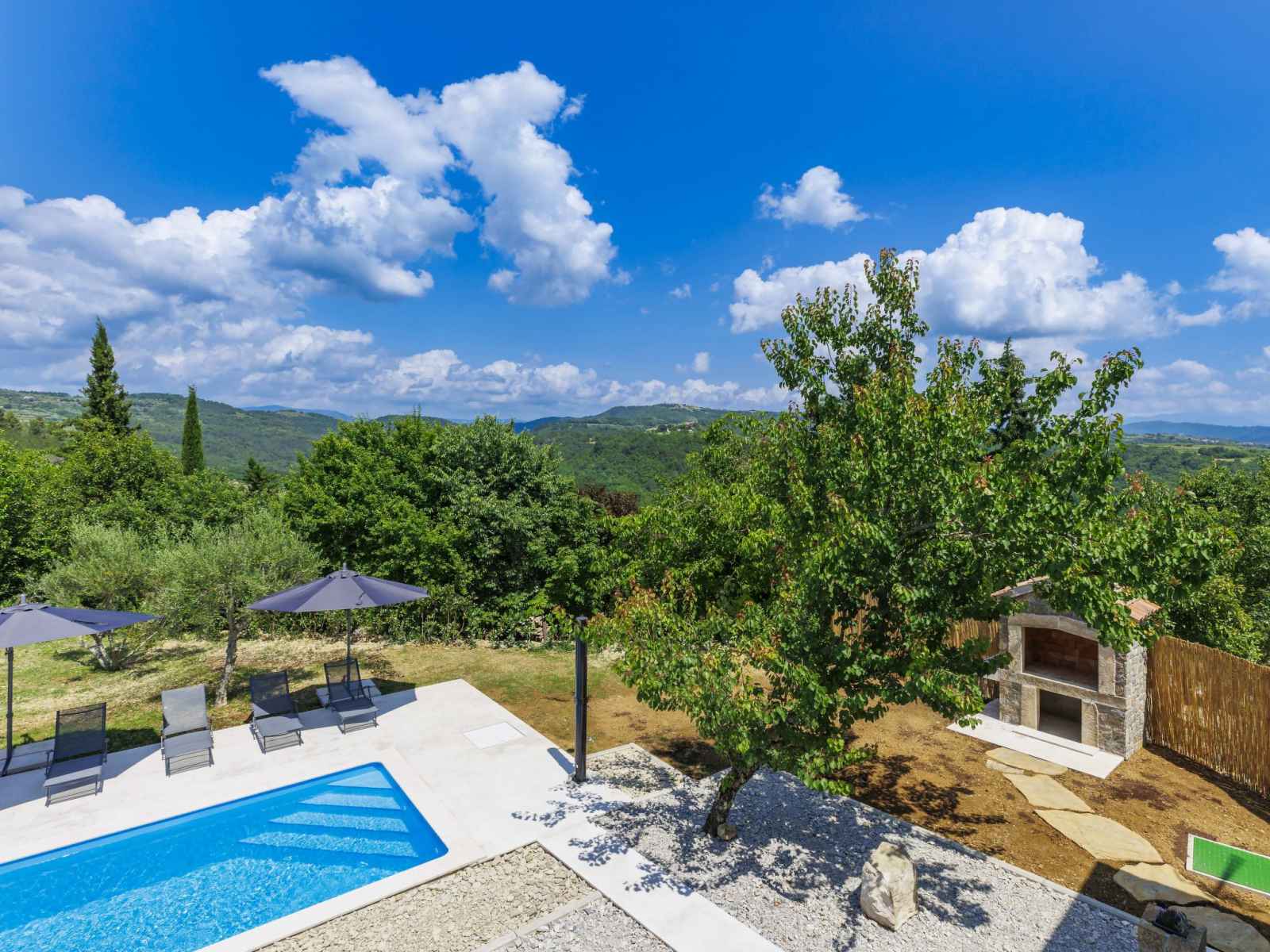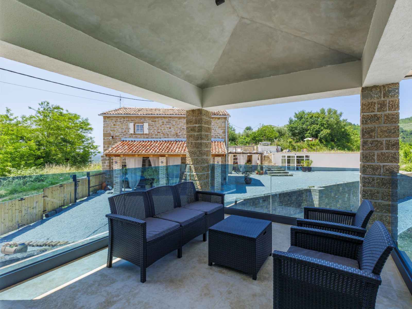 Belle villa luxueuse "solaria", de 2 étages en 2024. dans le hameau de krti, à 8 km du centre de motovun, à 15 km du centre de buzet, situation tranquille, à 30 km de la mer. a usage privé: terrain 450 m2 (clôturé), piscine rectangulaire (3 x 6 m, profondeur 140 cm, disponibilité saisonnière: 15.avr. - 01.nov.) avec marches intérieures.