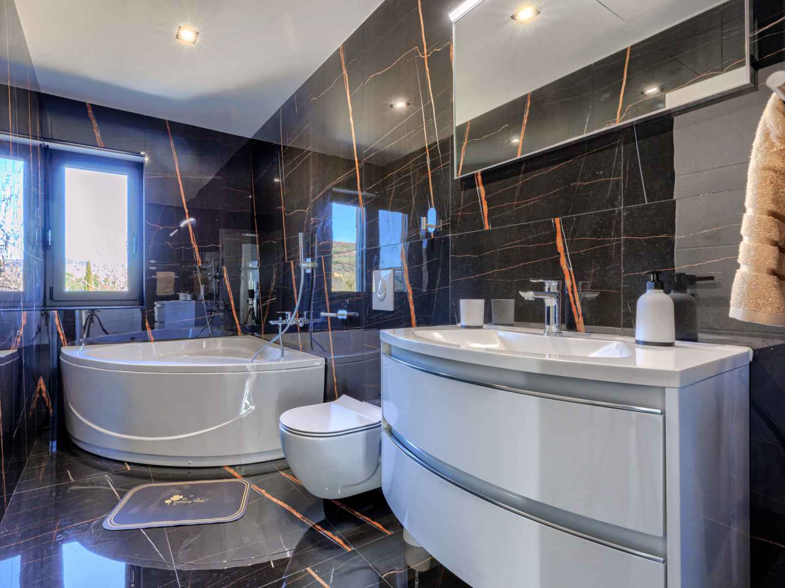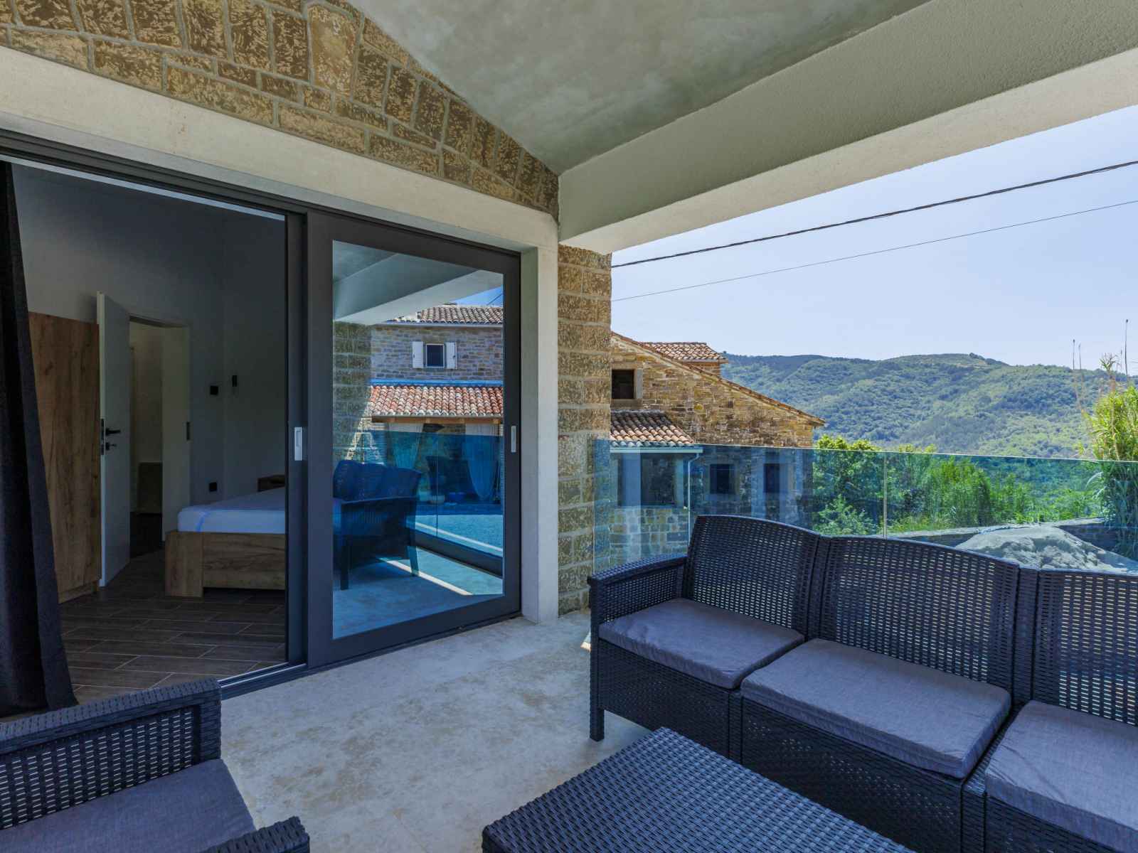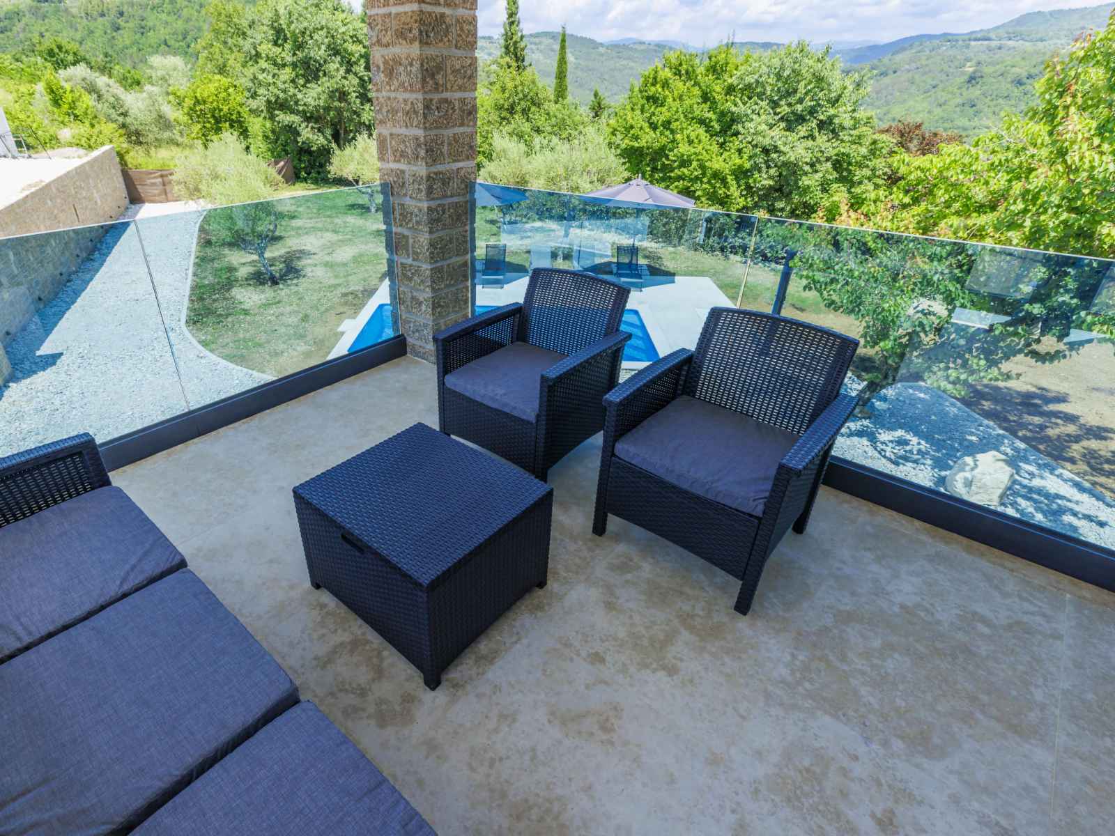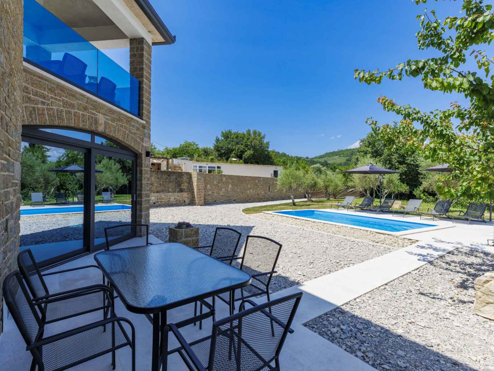 Belle villa luxueuse "solaria", de 2 étages en 2024. dans le hameau de krti, à 8 km du centre de motovun, à 15 km du centre de buzet, situation tranquille, à 30 km de la mer. a usage privé: terrain 450 m2 (clôturé), piscine rectangulaire (3 x 6 m, profondeur 140 cm, disponibilité saisonnière: 15.avr. - 01.nov.) avec marches intérieures.