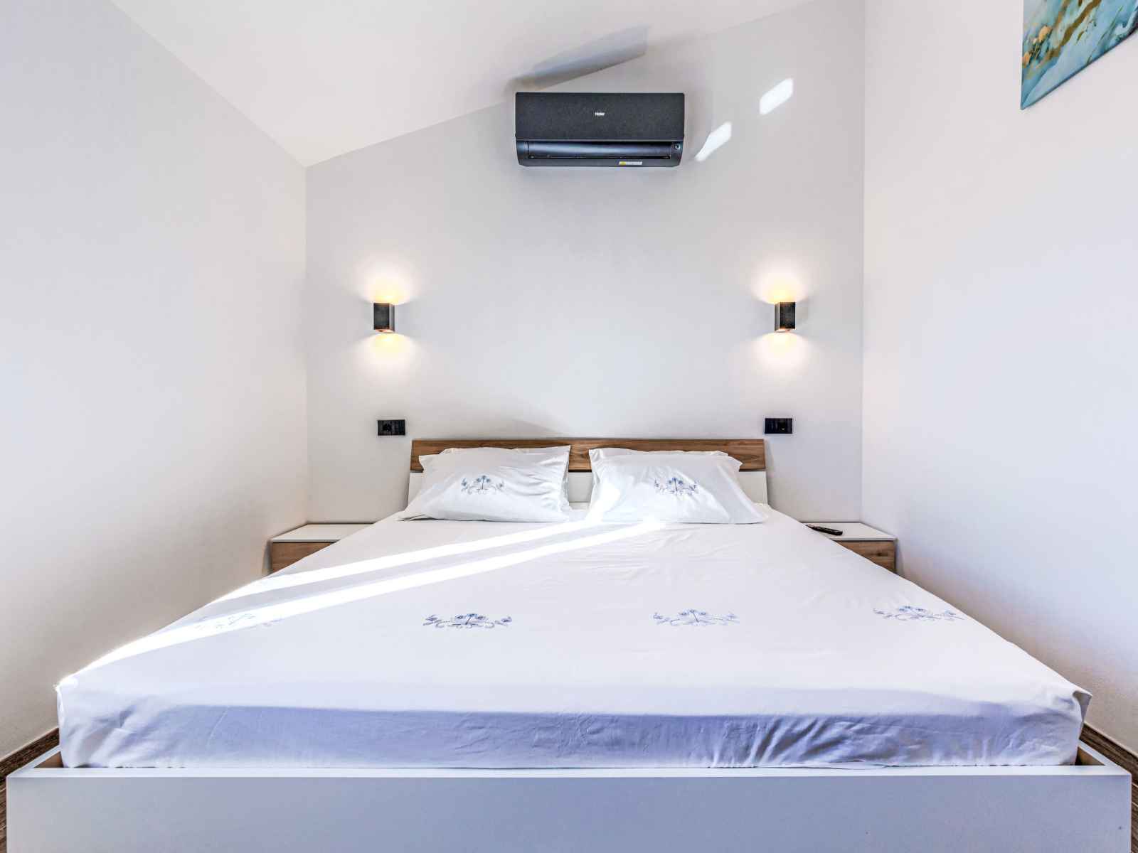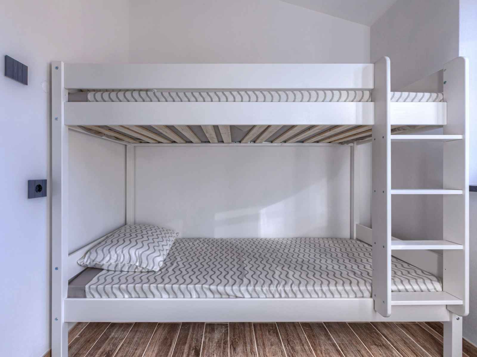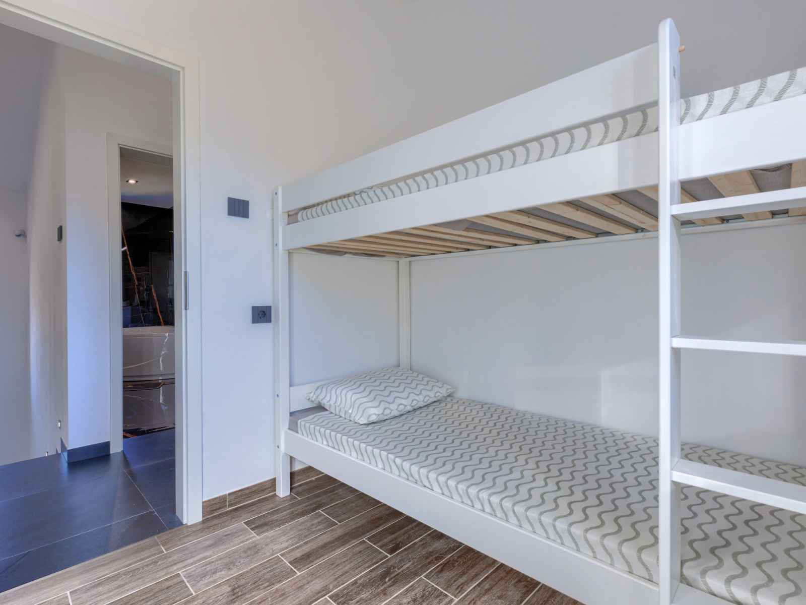 supérieur: 1 chambre avec 1 grand-lit (140 cm, longueur 200 cm), TV (satellite) et air-conditionné. Sortie sur la terrasse. 1 chambre avec 1 grand-lit (180 cm, longueur 200 cm), TV (satellite) et air-conditionné. 1 chambre d'enfants avec 1 x 2 lits superposés (90 cm, longueur 200 cm). Bain/WC avec baignoire d'angle. Chauffage à air chaud. Terrasse 10 m2, couverte. Meubles de terrasse, chaises longues. Vue sur la piscine et les alentours. A disposition: Internet (Connexion WIFI, gratuit).