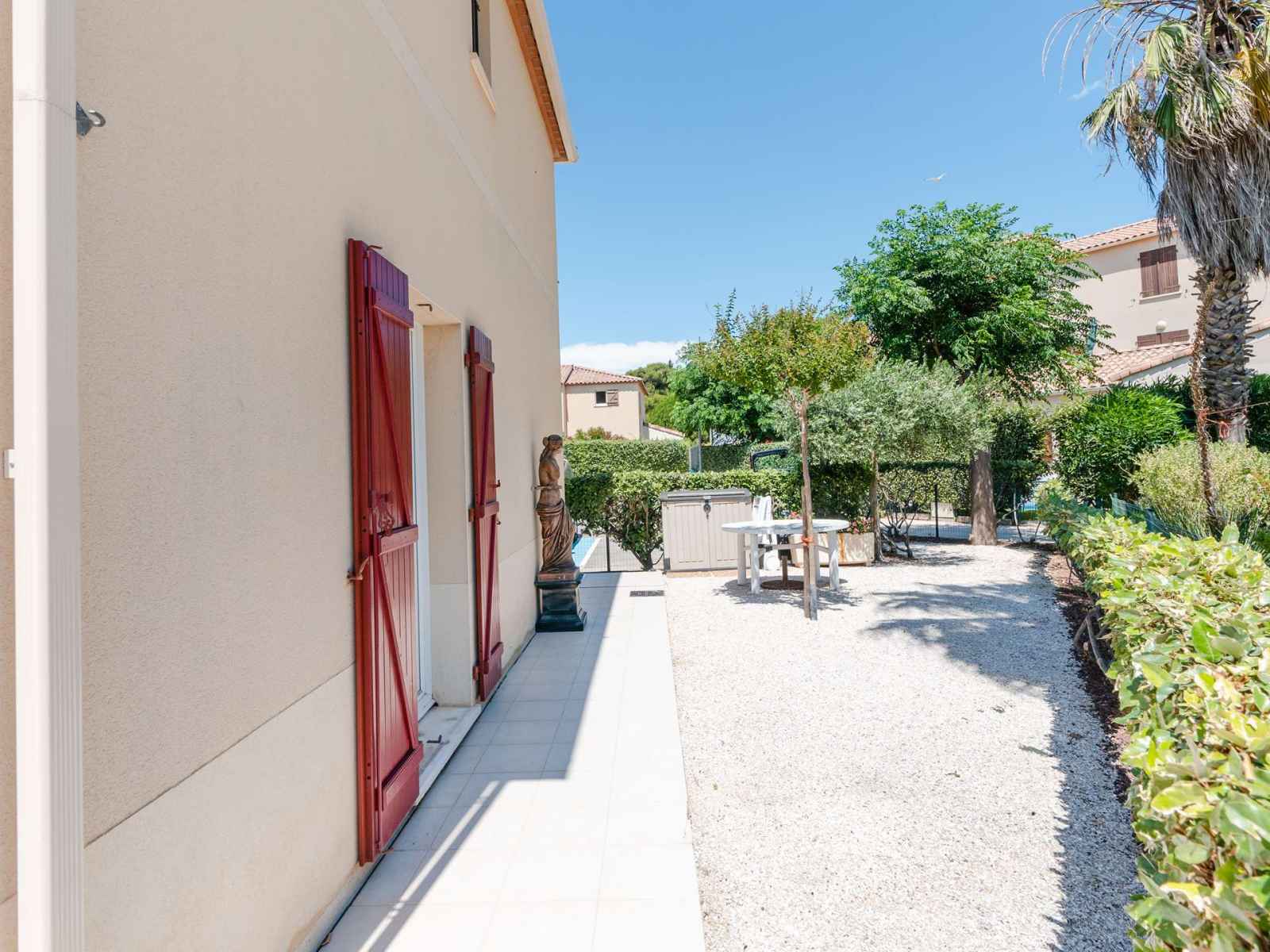 Au centre de narbonne-plage, dans une résidence sécurisée (portail électrique, badge), pavillon 5-pièces avec terrasse et 8 personnes max. jardinet (mobilier de jardin et 2 chaises longues). piscine dans la résidence. possibilité de garer une voiture sur les places non-numérotées de la résidence. animaux