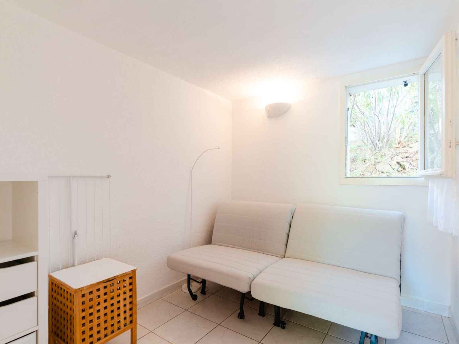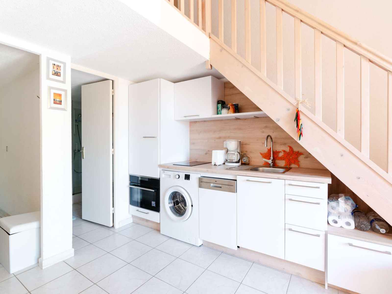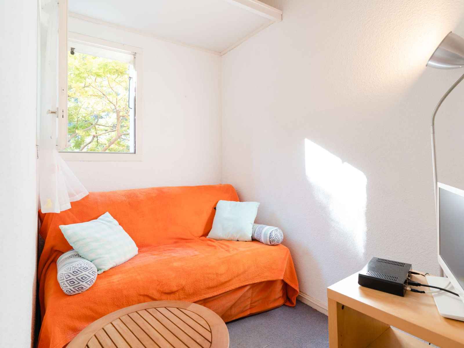 TV (chaînes françaises et internationales), coin cuisine (2 plaques vitrocéramiques, four, micro-ondes, lave-linge, lave-vaisselle), salle d'eau (douche) & WC, 1 chambre avec 2 lits simples (90x190).