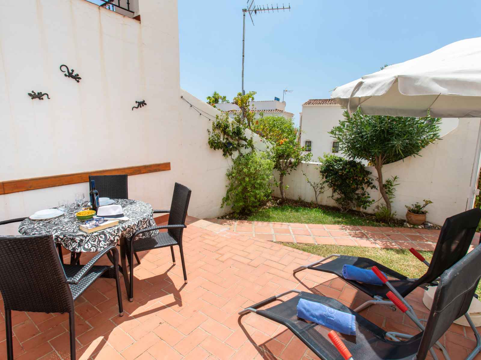 "las golondrinas", apt 3 pièces 50 m2, situation sud. aménagement simple et fonctionnel: séjour/salle à manger avec télévision numérique, air-conditionné et chauffage à air chaud. sortie sur le jardin, sur le jardinet. 1 chambre avec 2 lits (90 cm, longueur 190 cm), air-conditionné et chauffage à air chaud. 1 chambre avec 1 grand-lit
