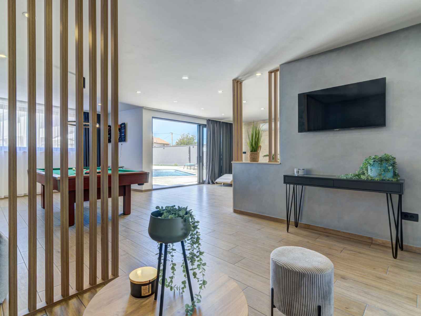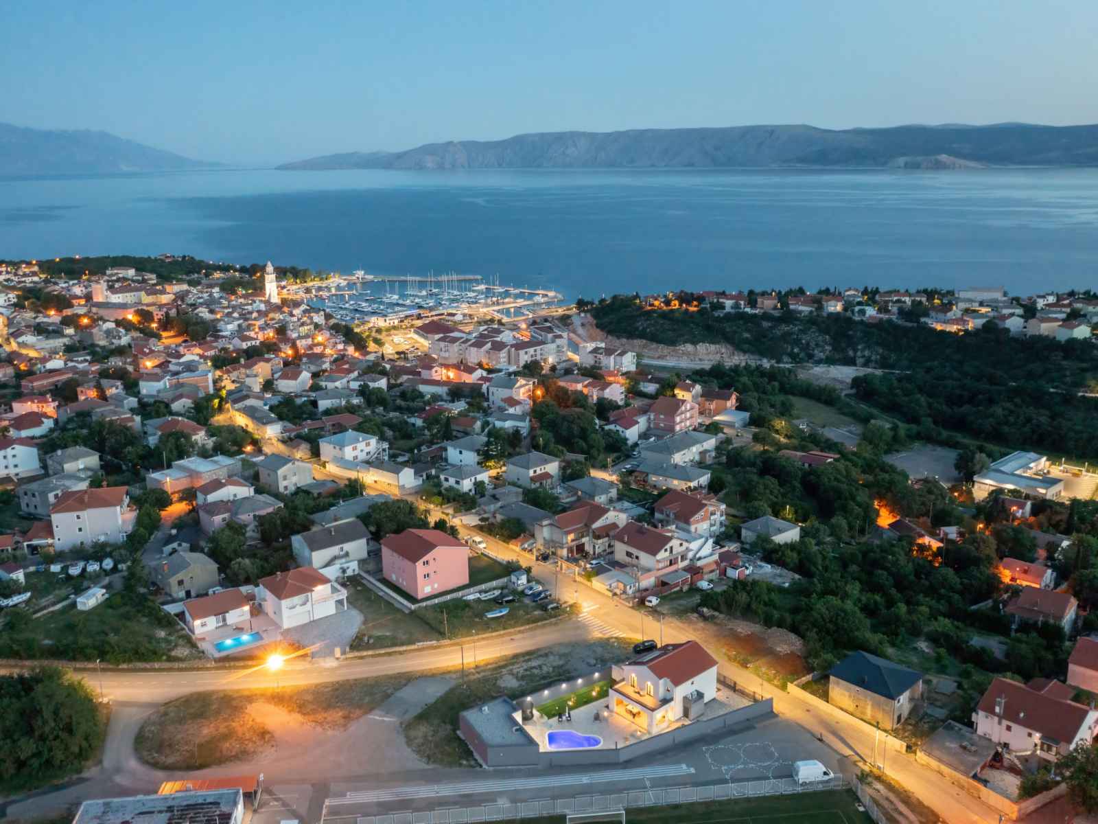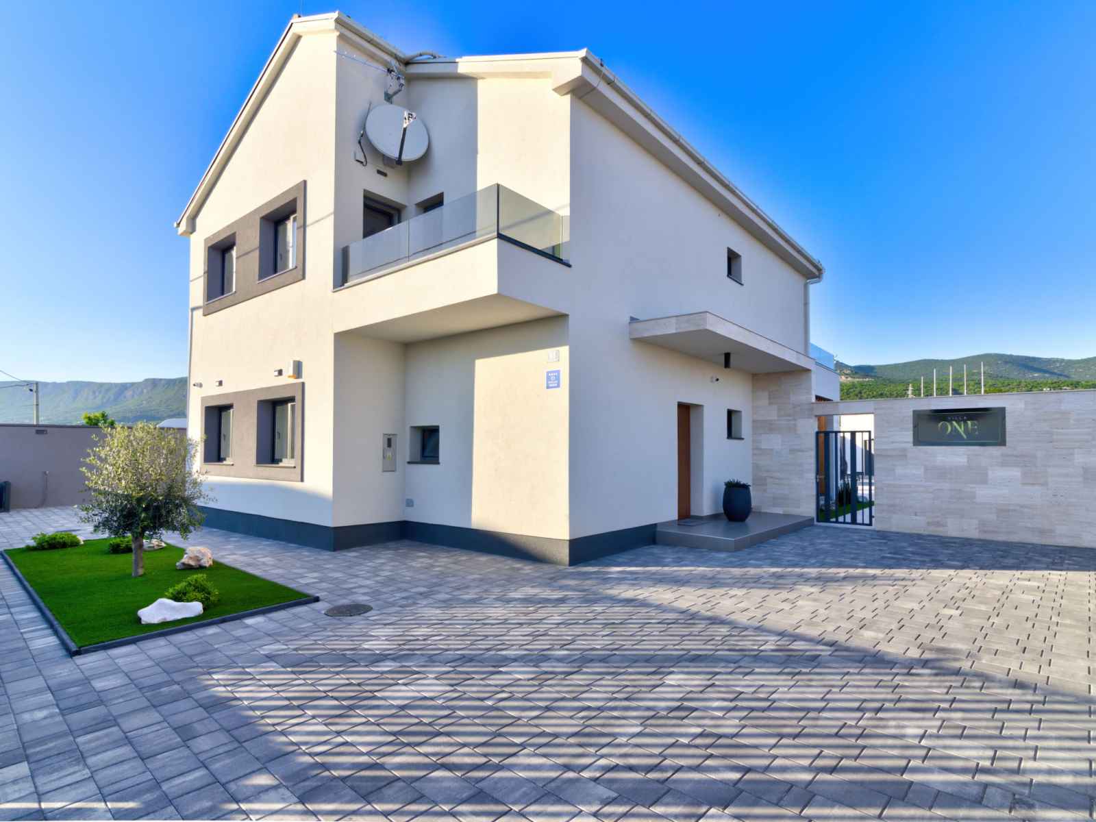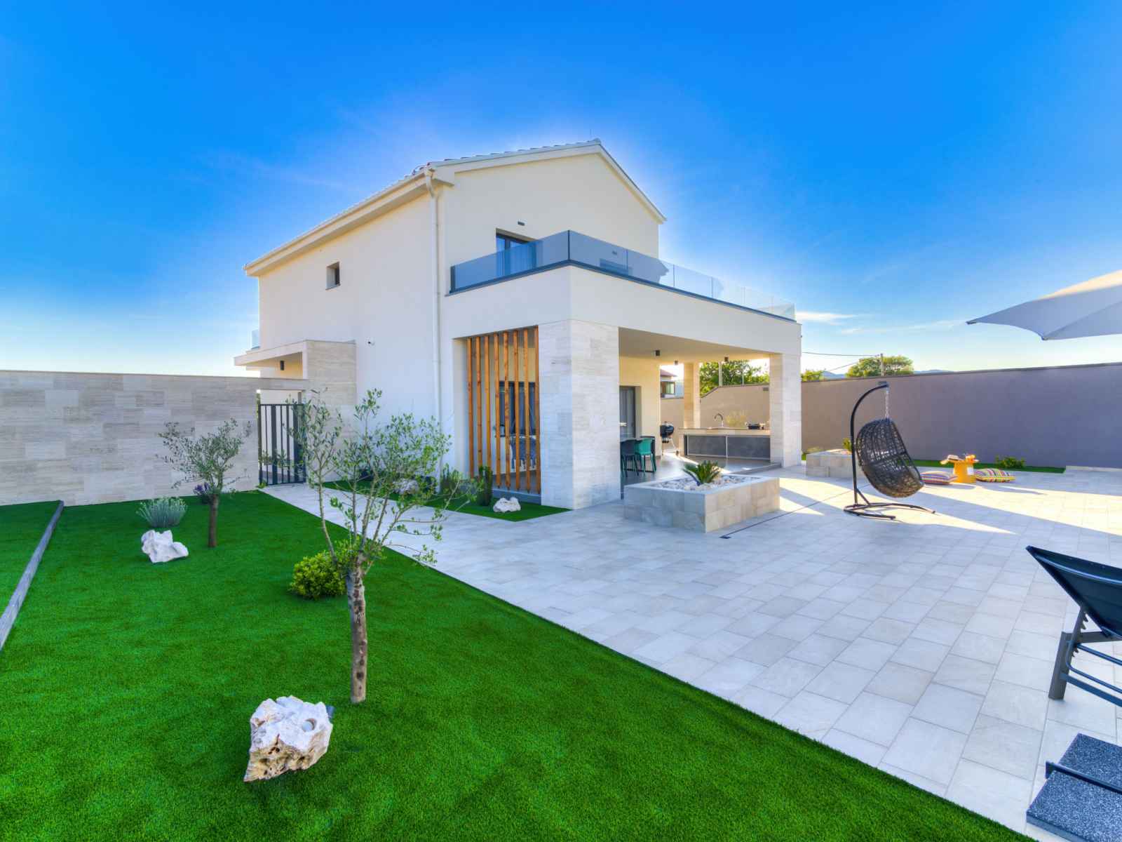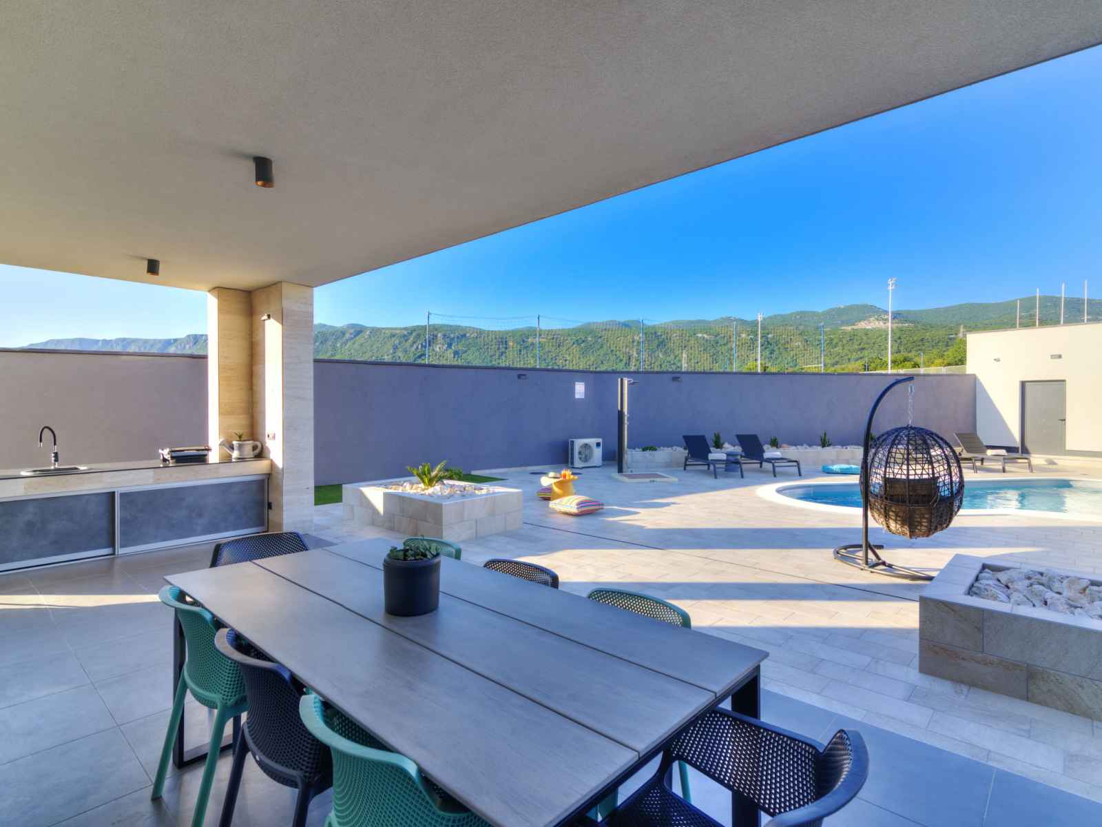 Belle villa moderne "one", de 2 étages, rénovée en 2022. À 700 m du centre de novi vinodolski, à 900 m de la mer, à 1.1 km de la plage. a usage privé: terrain 700 m2 (clôturé) avec pelouse et plantes, piscine chauffée (30 m2, profondeur 150 cm, disponibilité saisonnière: 15.mar. - 15.nov.) avec marches intérieures. piscine de forme