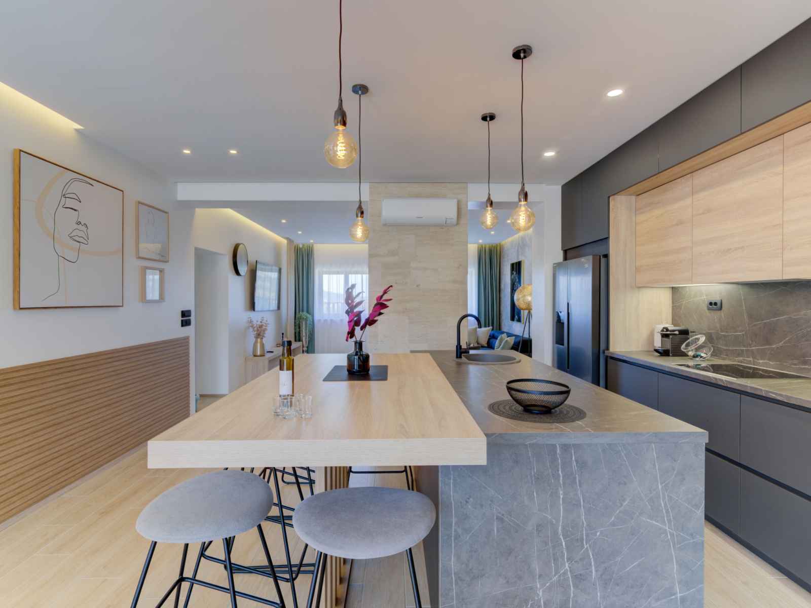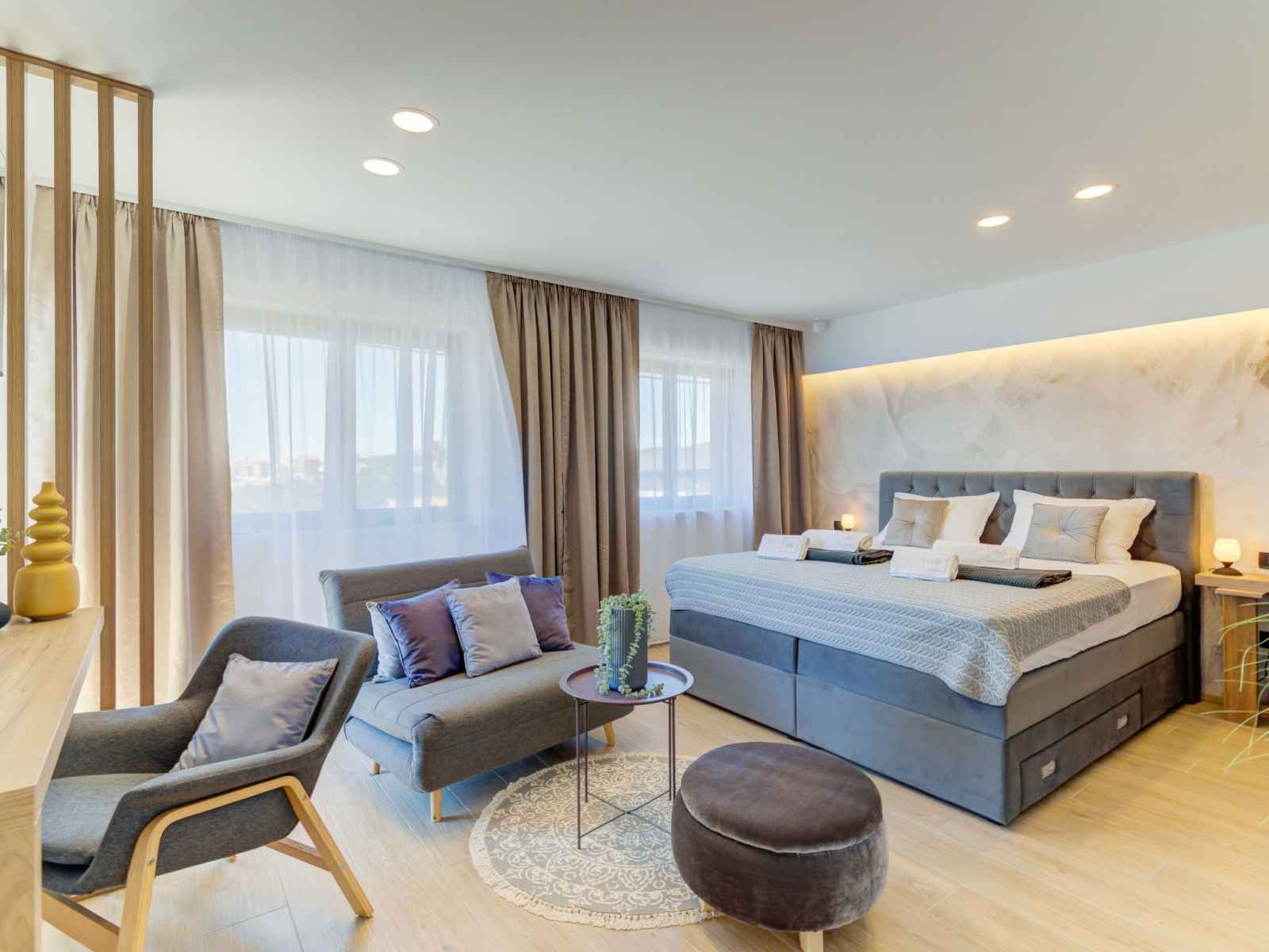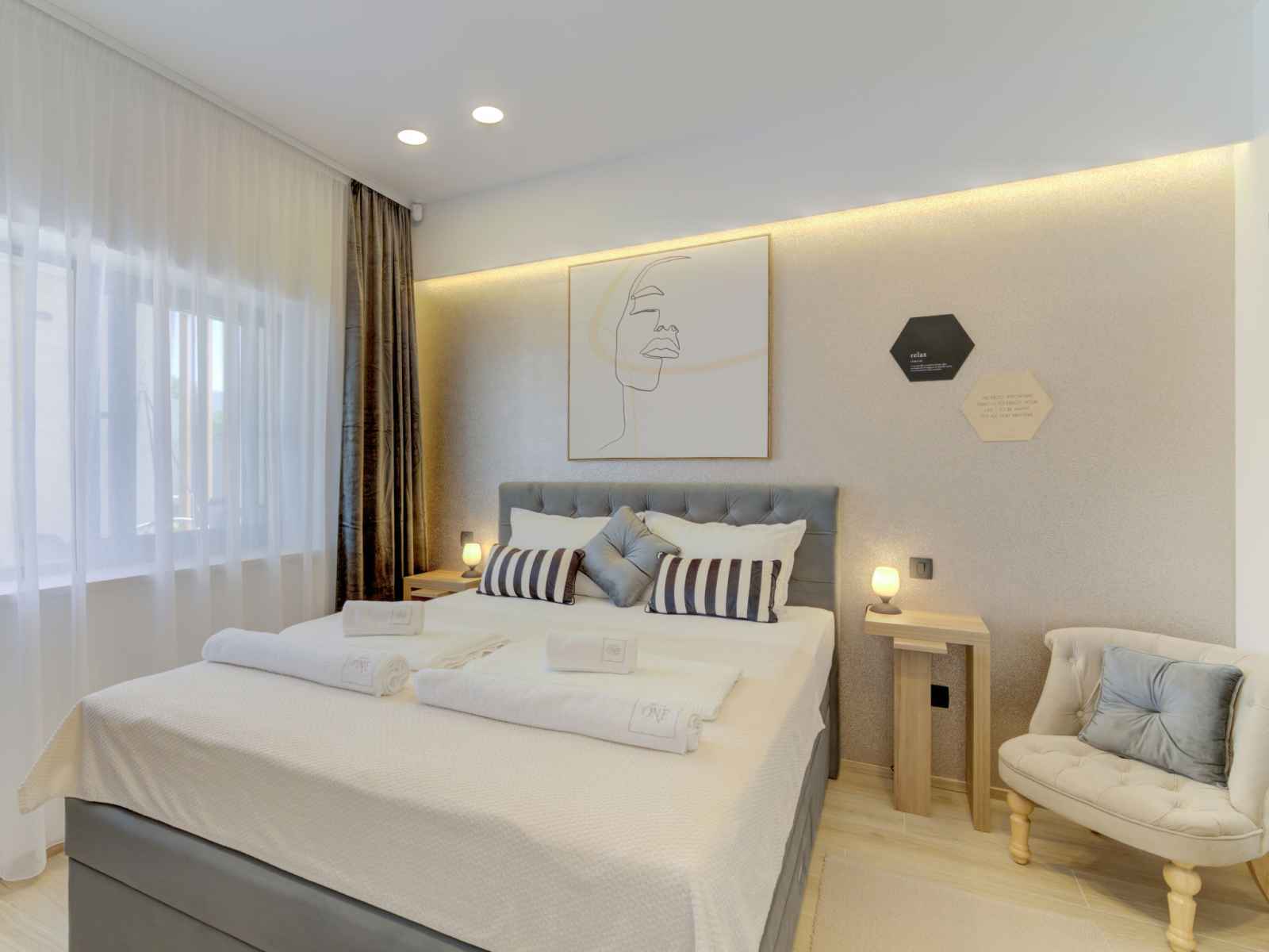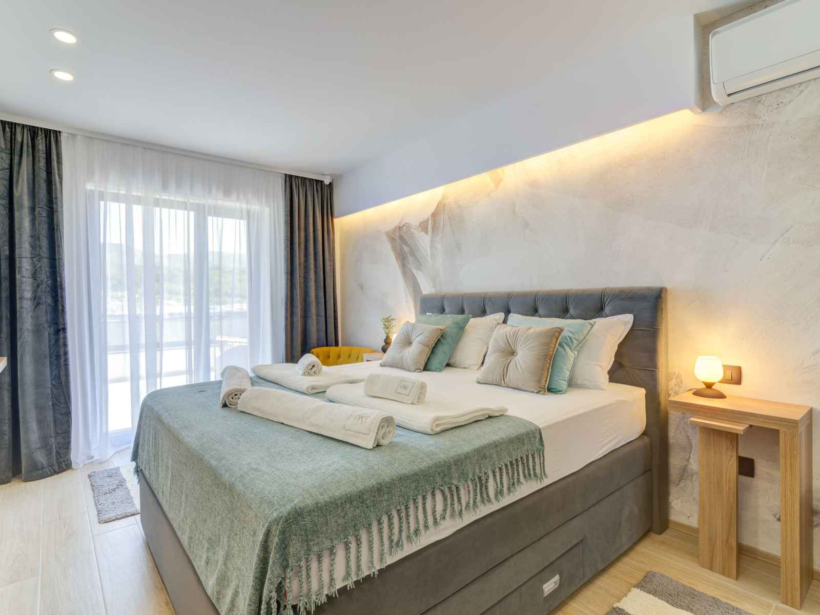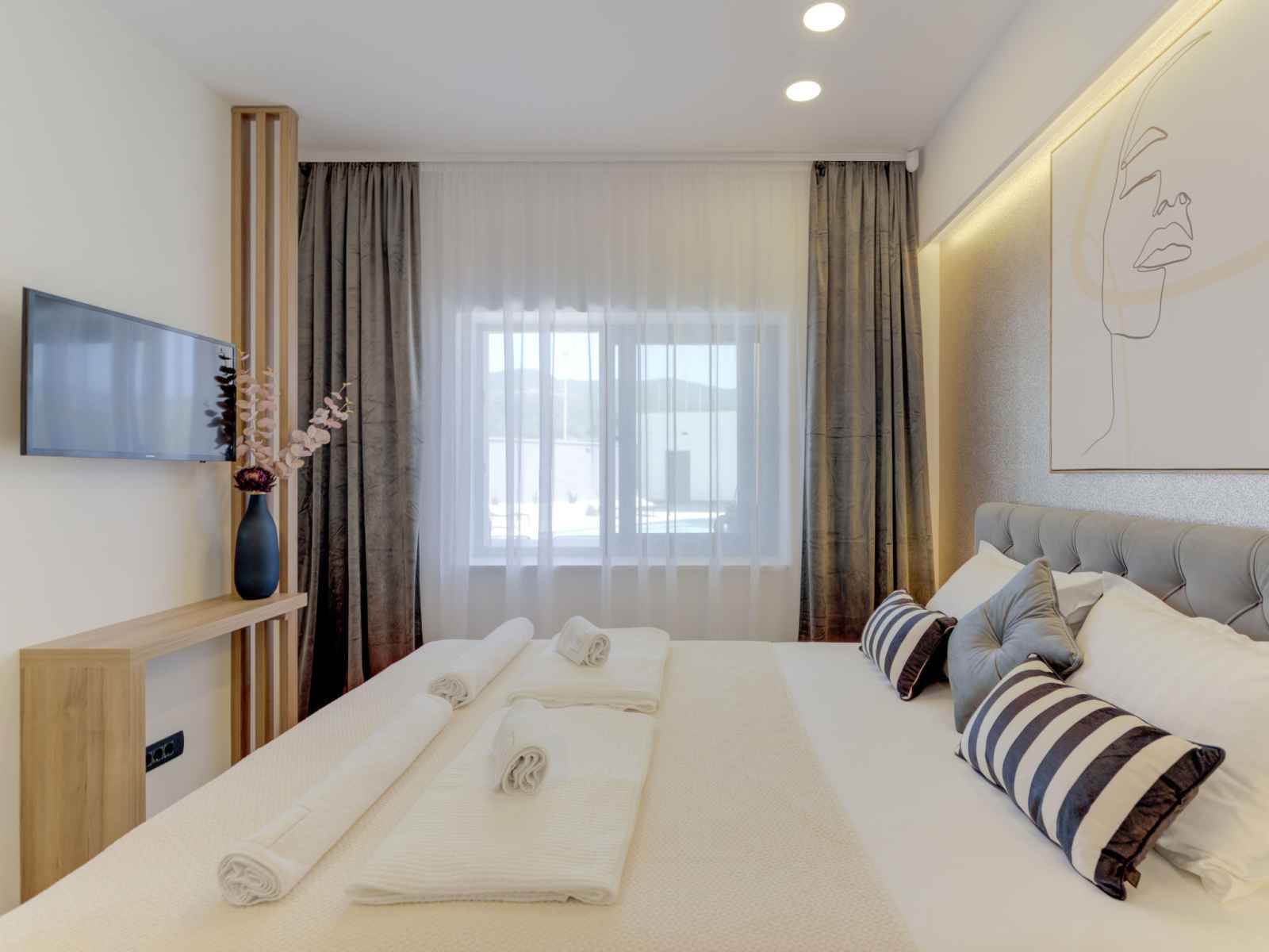 Belle villa moderne "one", de 2 étages, rénovée en 2022. À 700 m du centre de novi vinodolski, à 900 m de la mer, à 1.1 km de la plage. a usage privé: terrain 700 m2 (clôturé) avec pelouse et plantes, piscine chauffée (30 m2, profondeur 150 cm, disponibilité saisonnière: 15.mar. - 15.nov.) avec marches intérieures. piscine de forme