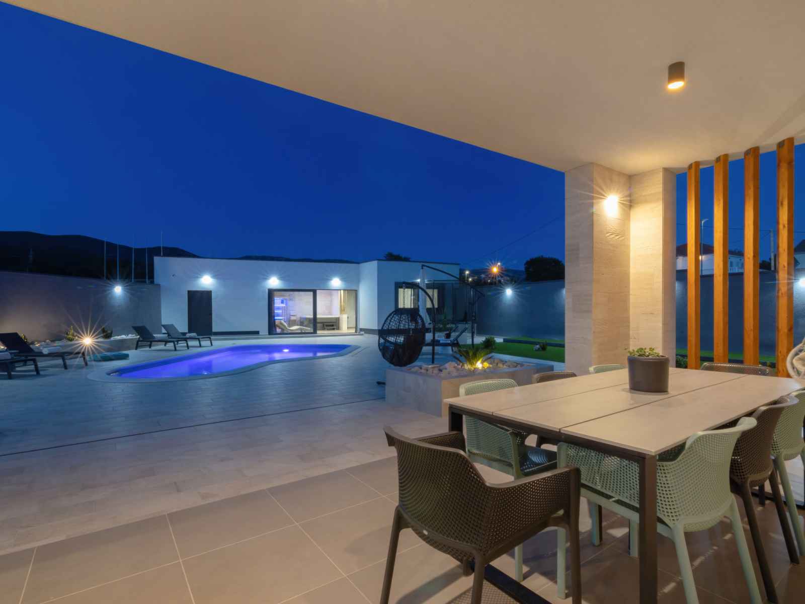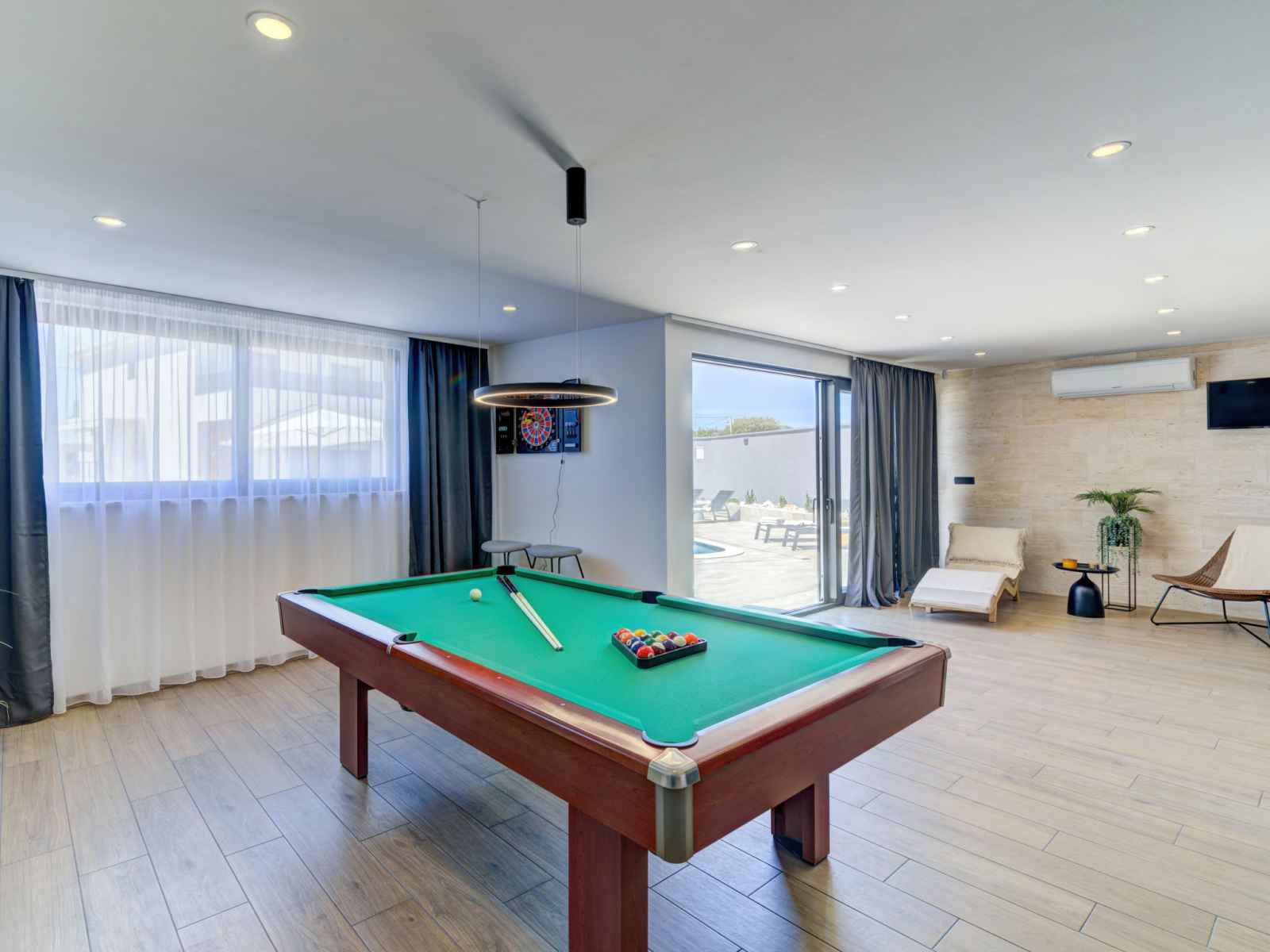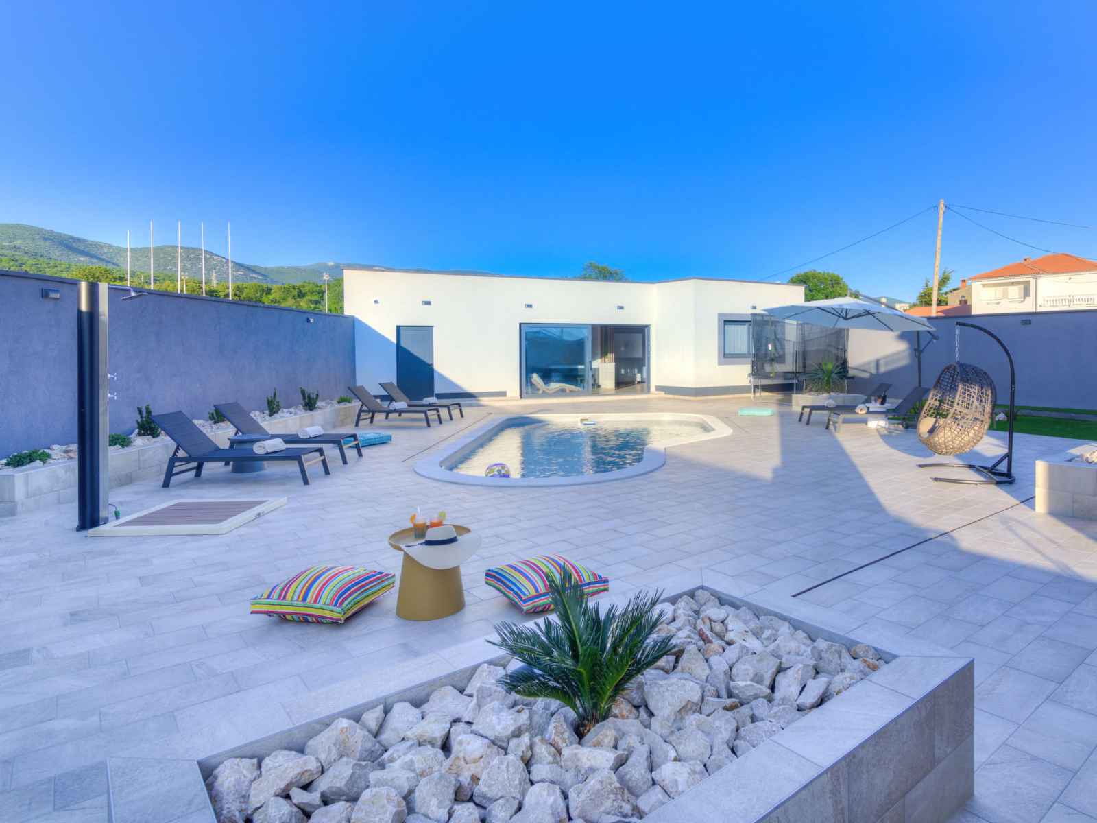 irrégulière. douche extérieure, pool house avec douche et wc, entretien de la piscine par le propriétaire/jardinier. infrastructures de la maison: accès internet, sauna, bain à remous , billard, air-conditionné, lave-linge, sèche-linge. place de parking (pour 4 voitures) près de la maison sur le terrain. magasins 700 m, supermarché 900 m, restaurant 700 m, arrêt de bus 1.4 km, plage de graviers 2.2 km, plage de rochers 1.1 km. marina 900 m. veuillez noter: aéroport 30 km de la maison. piscine chauffée (en sus). si vous souhaitez que la piscine soit chauffée, veuillez le notifier 7 jours à l'avance.