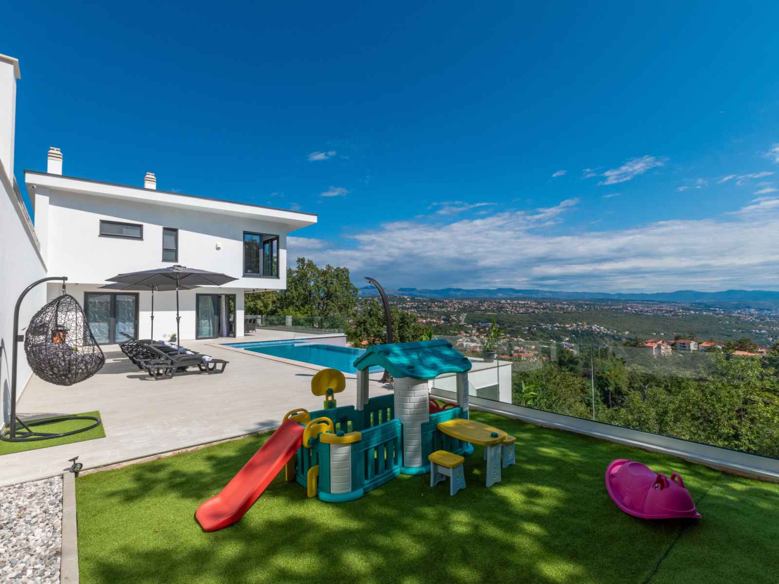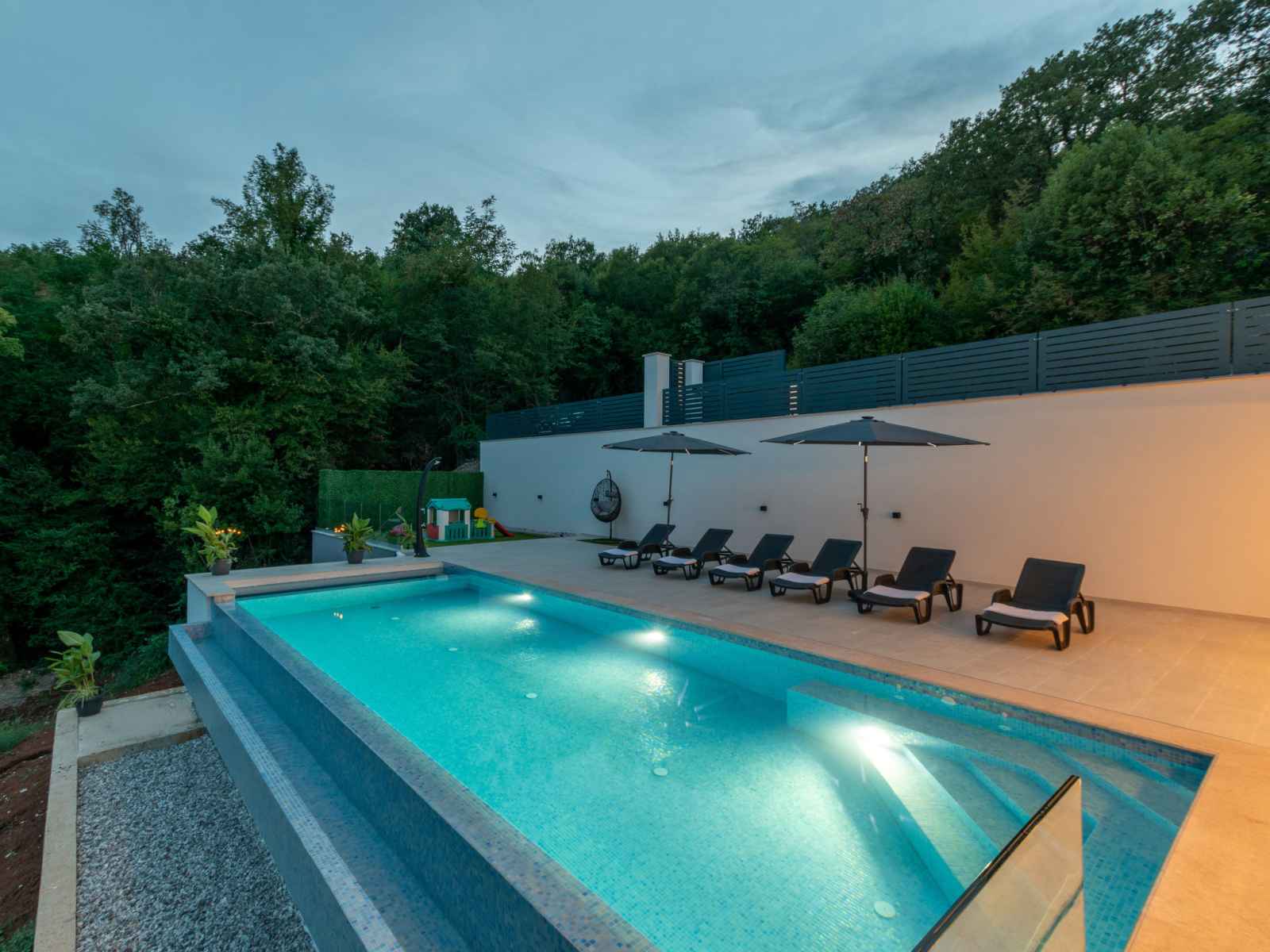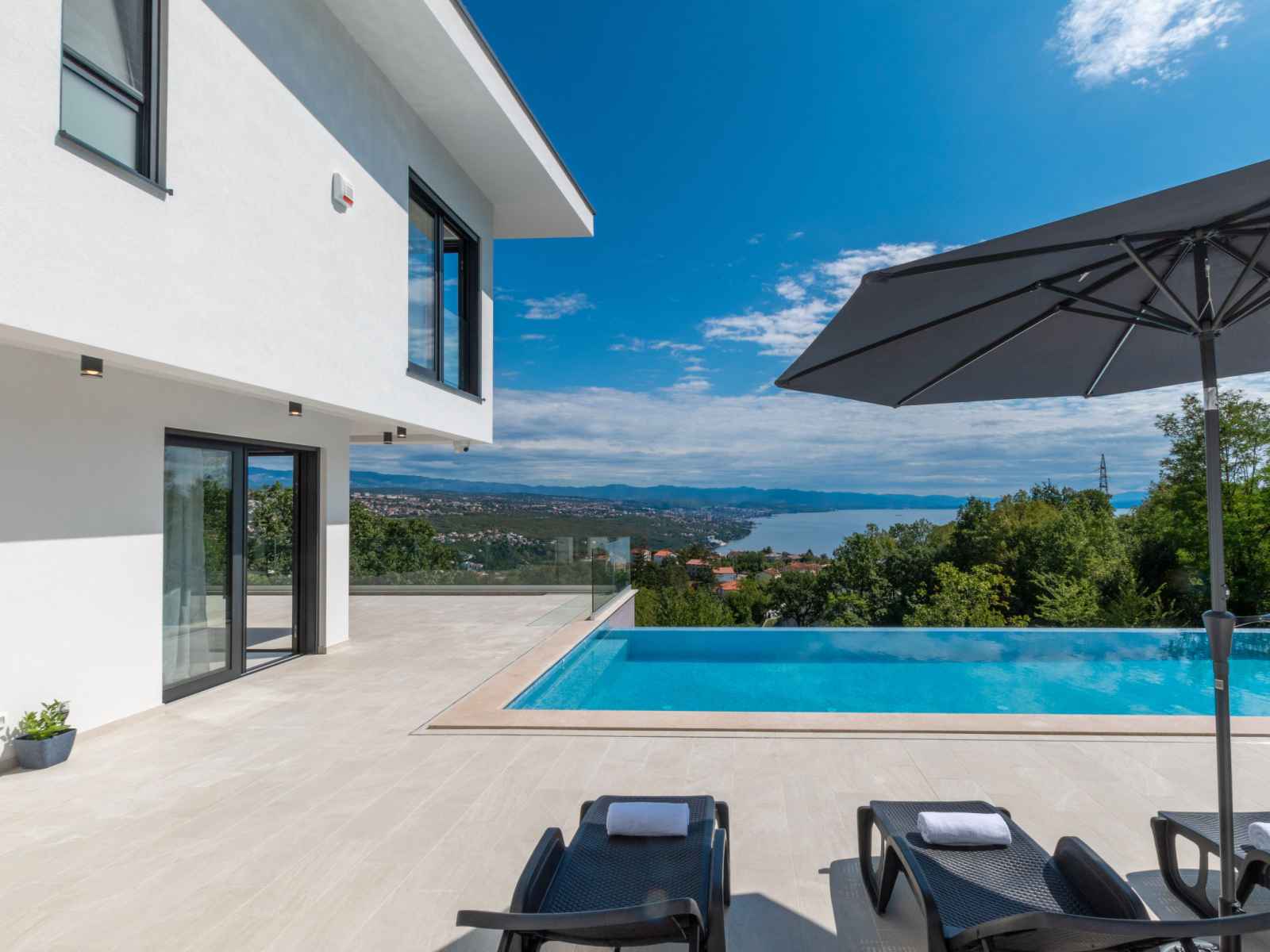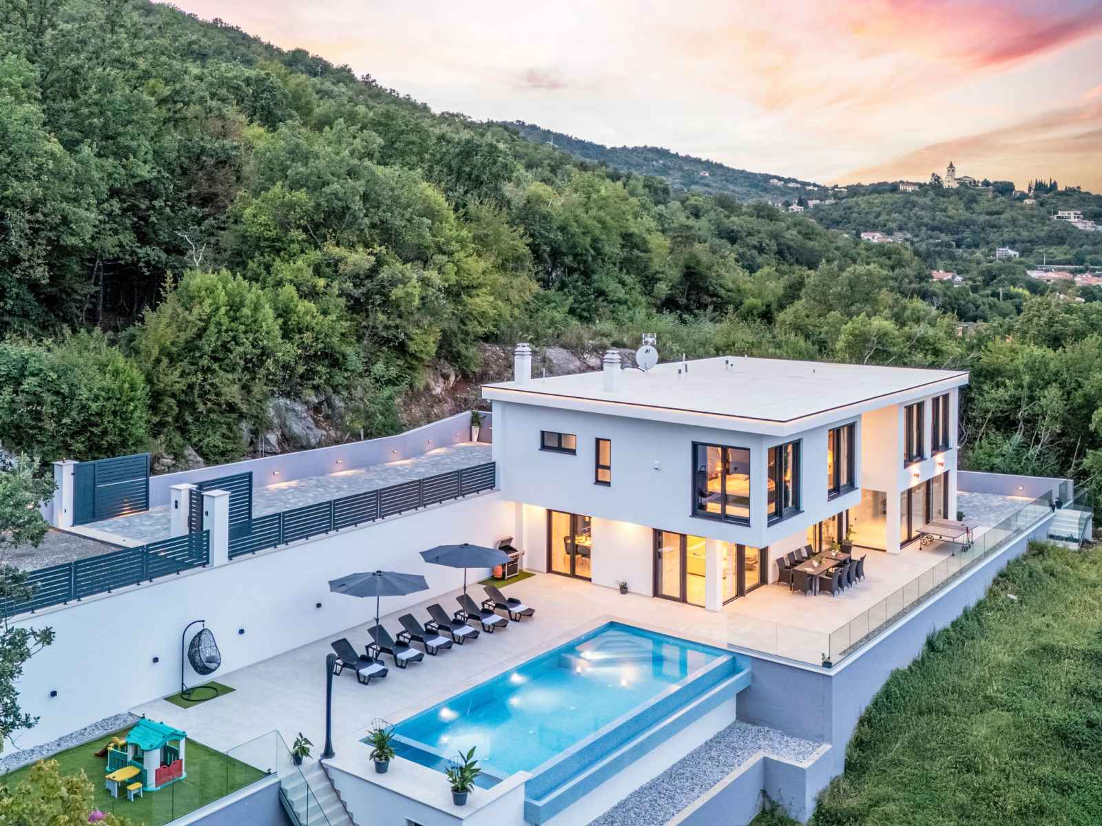 Matulji: villa moderne "gabi", de 2 étages, année de construction 2024. dans le hameau de mihotići, à 2.8 km du centre de matulji, à 3.8 km du centre d'opatija, situation ensoleillée, surélevée, à 3.9 km de la mer, à 3.9 km de la plage, dans une rue. a usage privé: terrain 1'720 m2, piscine rectangulaire (10 x 4 m, profondeur 150 cm,