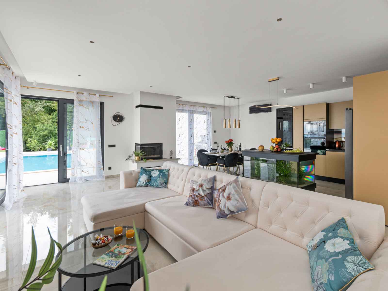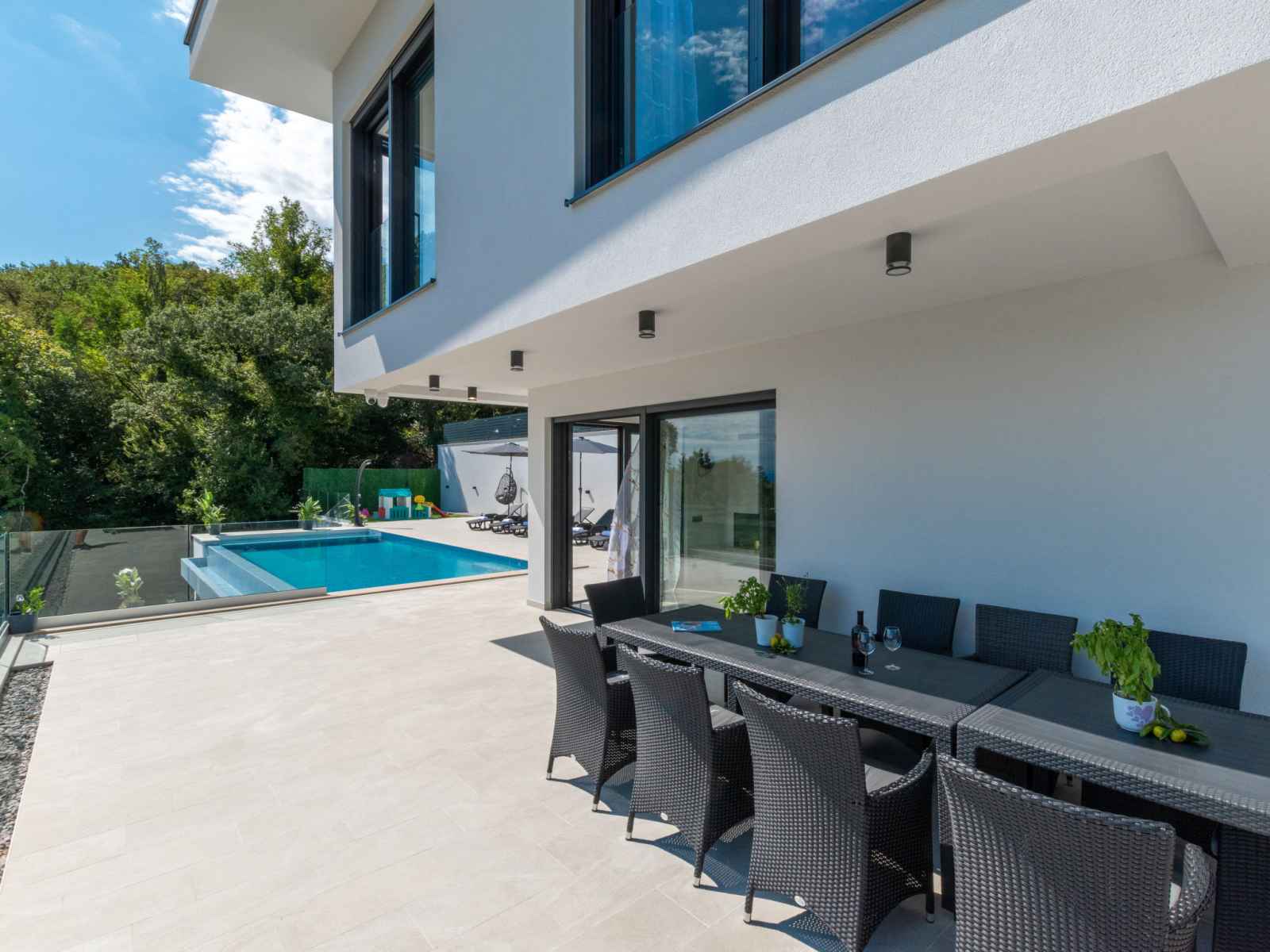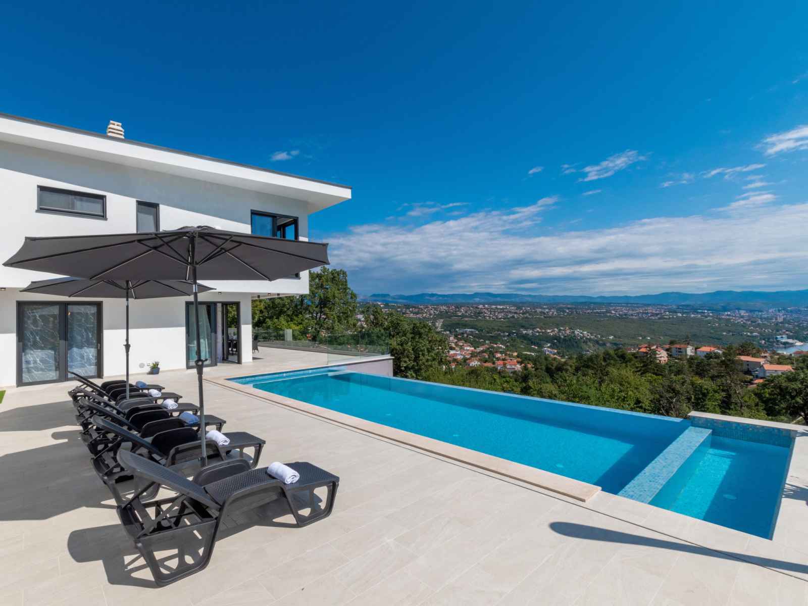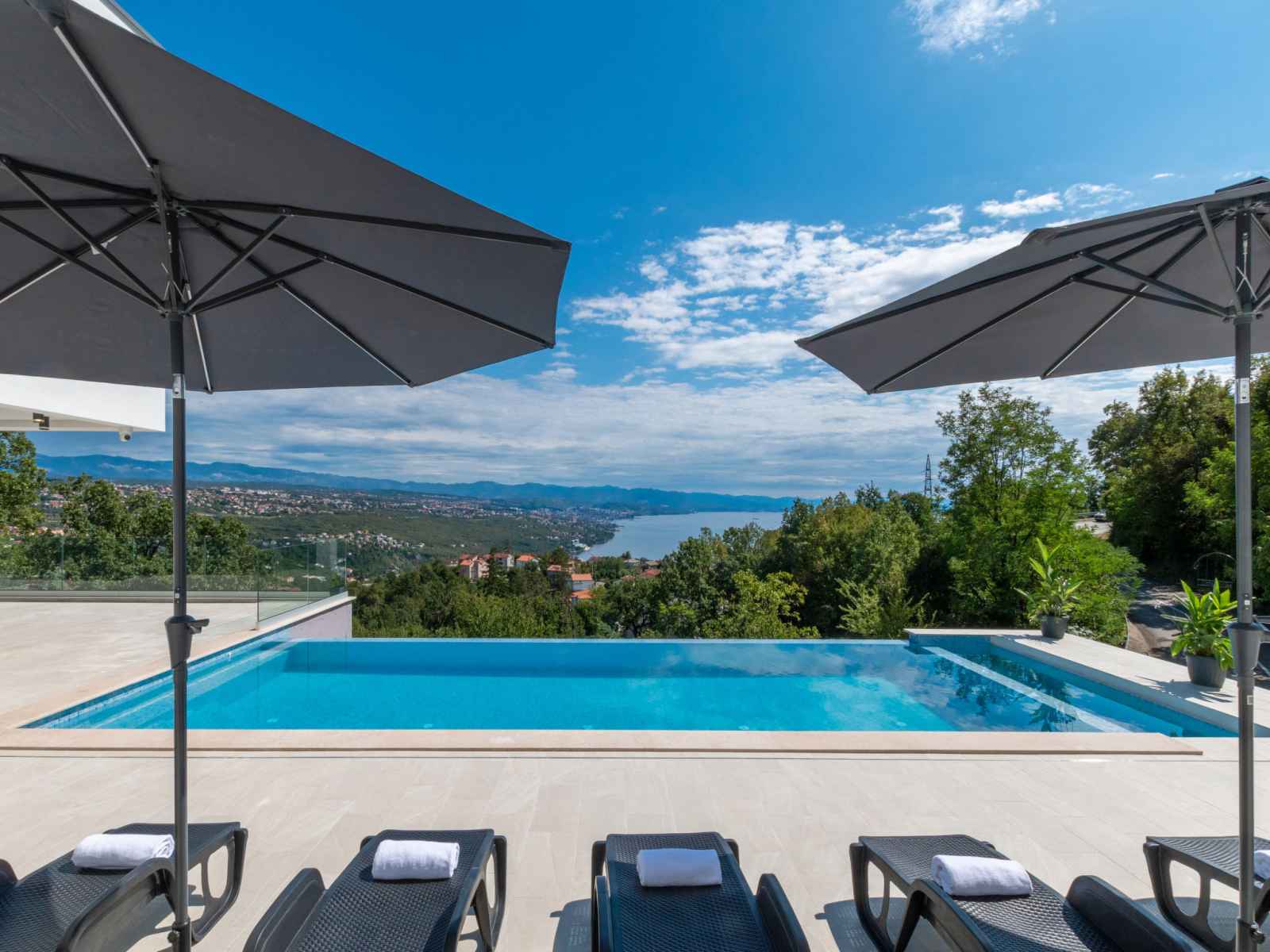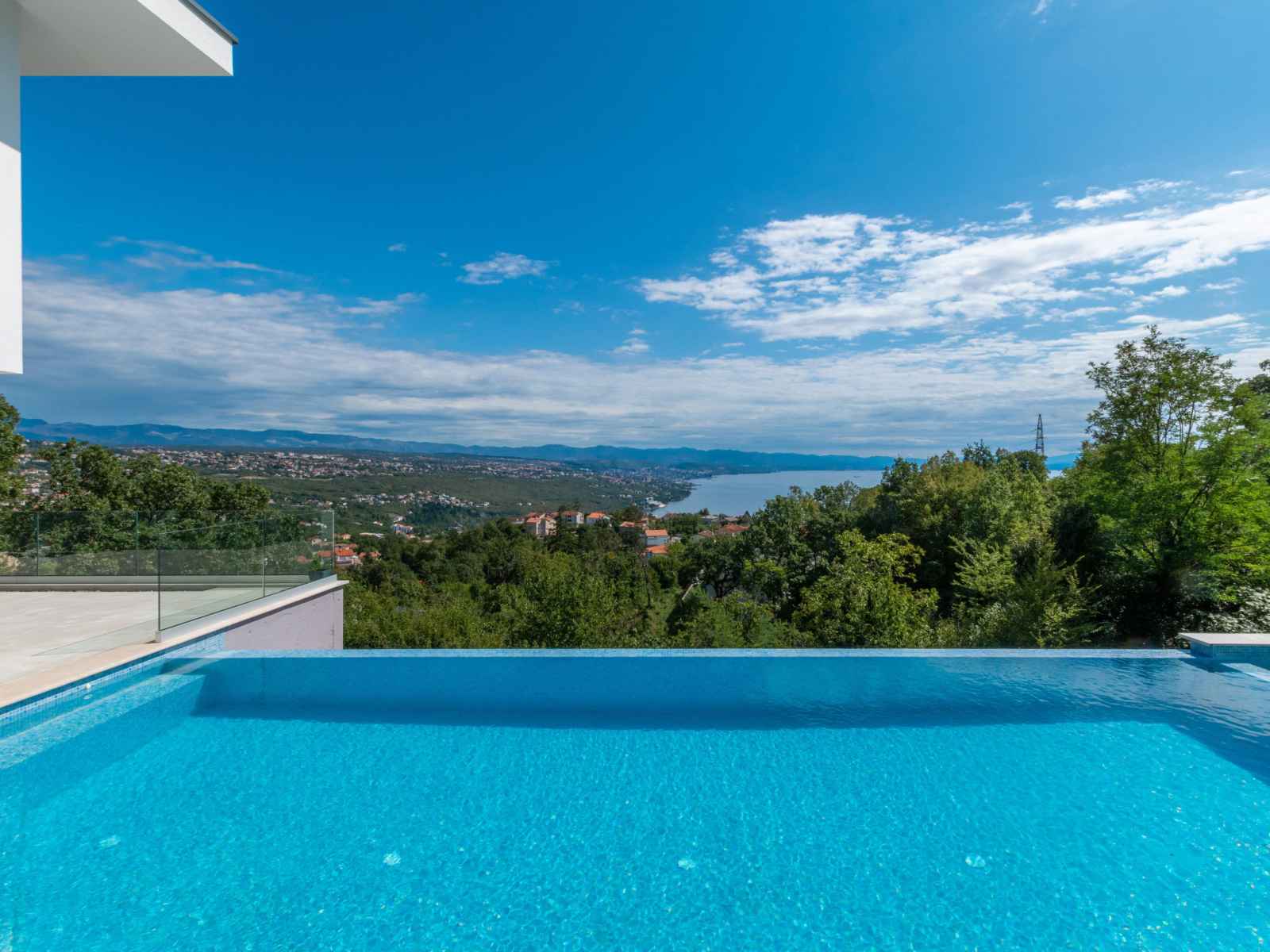 Matulji: villa moderne "gabi", de 2 étages, année de construction 2024. dans le hameau de mihotići, à 2.8 km du centre de matulji, à 3.8 km du centre d'opatija, situation ensoleillée, surélevée, à 3.9 km de la mer, à 3.9 km de la plage, dans une rue. a usage privé: terrain 1'720 m2, piscine rectangulaire (10 x 4 m, profondeur 150 cm,