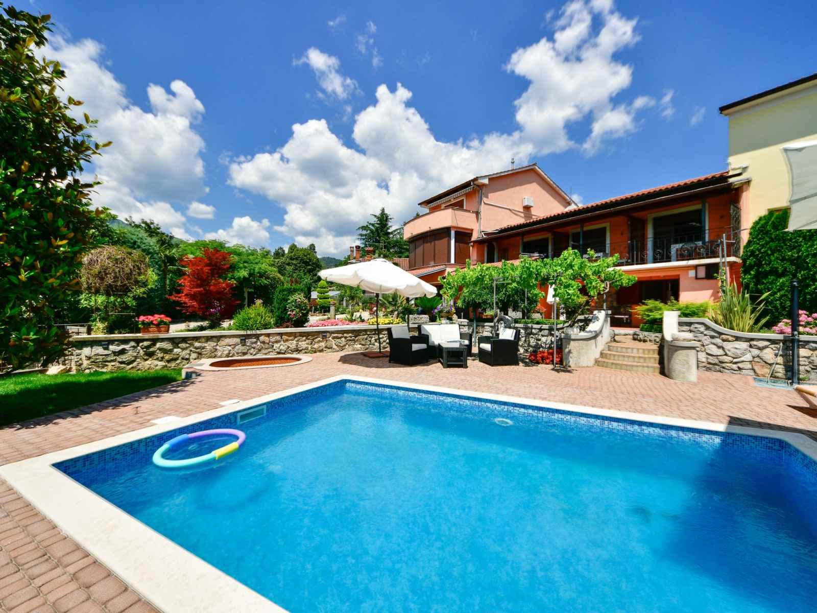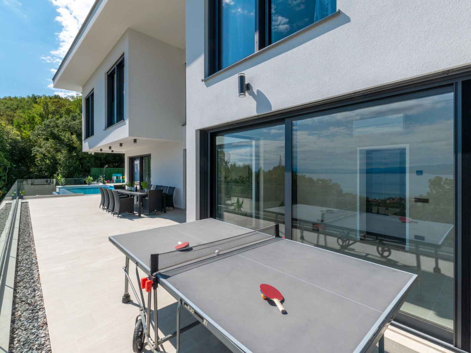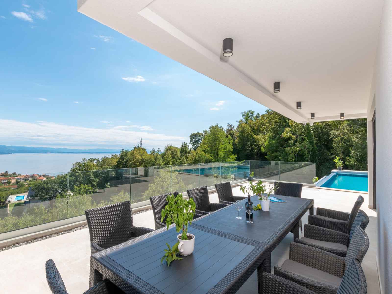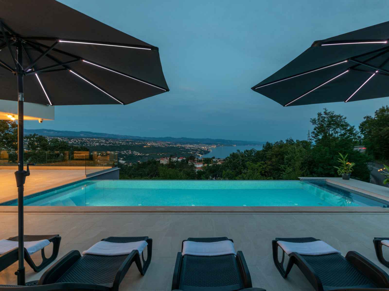 Matulji: villa moderne "gabi", de 2 étages, année de construction 2024. dans le hameau de mihotići, à 2.8 km du centre de matulji, à 3.8 km du centre d'opatija, situation ensoleillée, surélevée, à 3.9 km de la mer, à 3.9 km de la plage, dans une rue. a usage privé: terrain 1'720 m2, piscine rectangulaire (10 x 4 m, profondeur 150 cm,