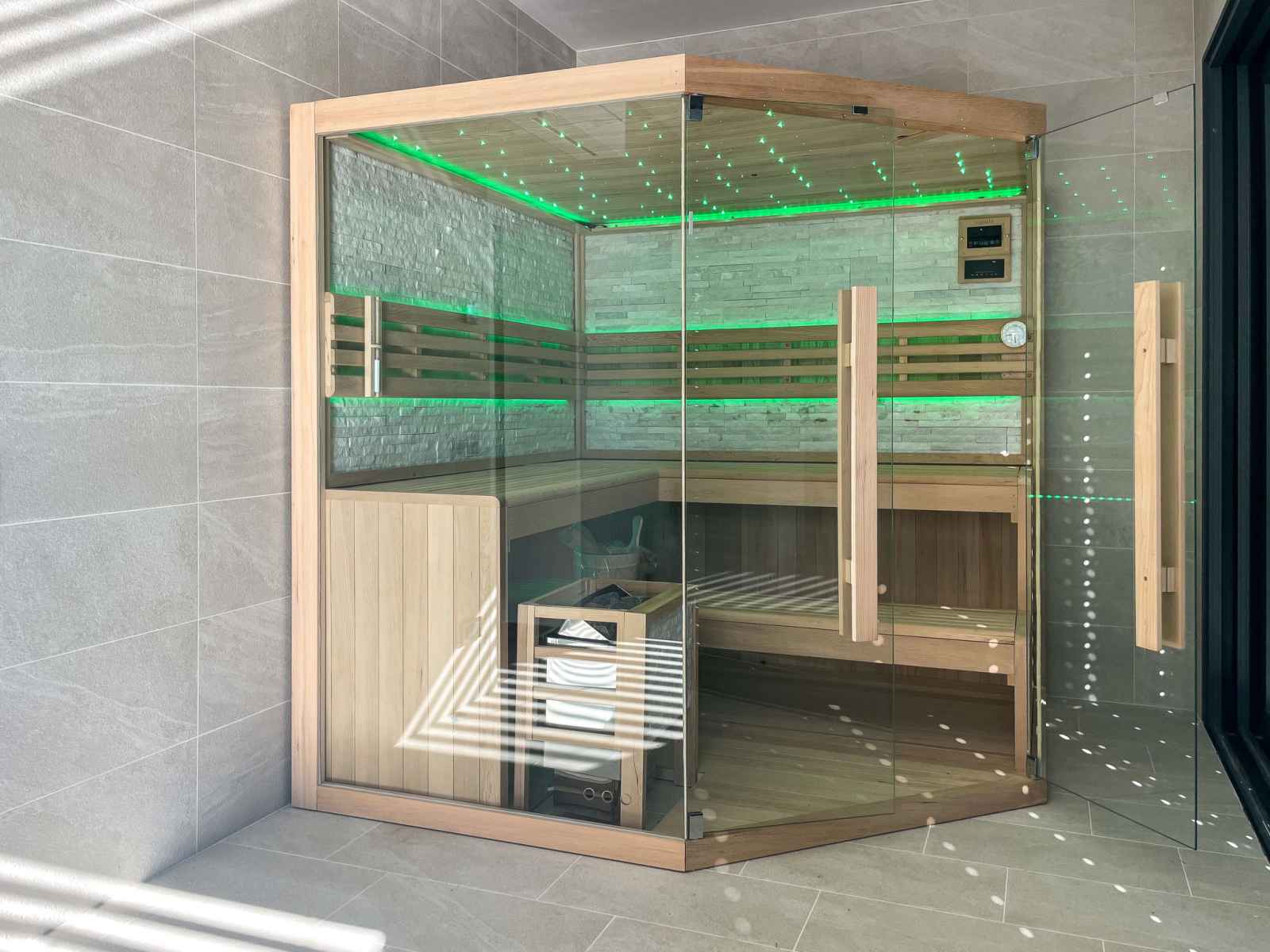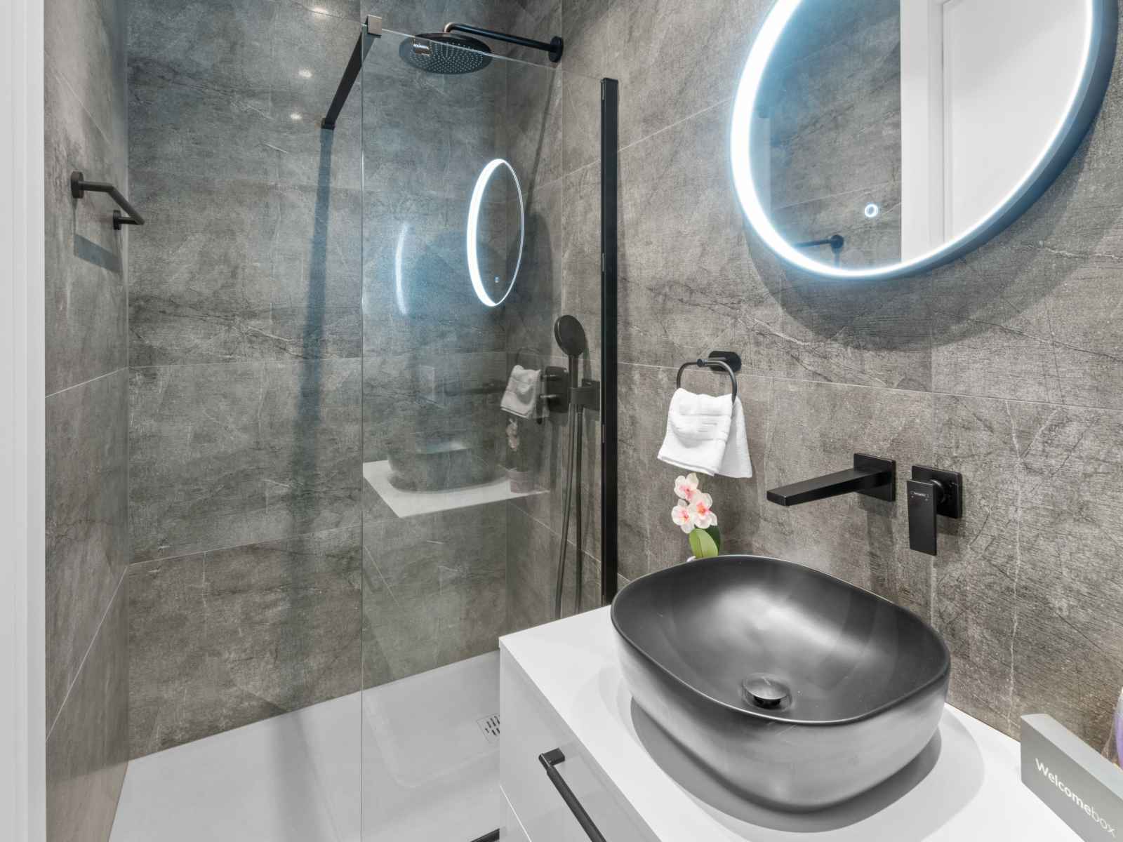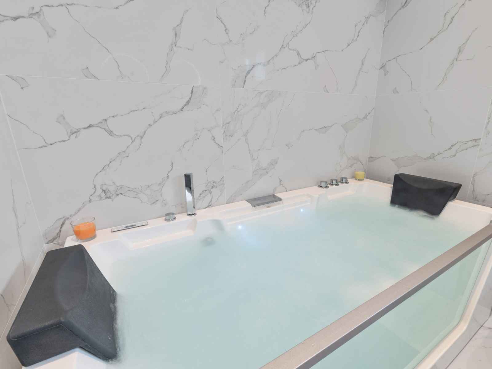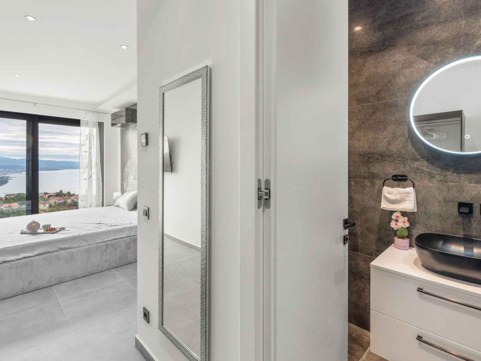 plaques à induction, grille-pain, bouilloire électrique, micro-ondes, congélateur, cafetière électrique). Douche/WC. À l'étage supérieur: 2 chambres avec baie vitrée, chaque chambre avec: 1 grand-lit (200 cm, longueur 210 cm), douche/WC et TV (satellite) (écran plat). 1 chambre avec baie vitrée avec 1 grand-lit (200 cm, longueur 210 cm), douche/WC, double vasque et TV (satellite) (écran plat). 1 chambre avec baie vitrée avec 1 grand-lit (200 cm, longueur 210 cm), bain/WC, double vasque, bain à remous et TV (satellite) (écran plat). Chauffage par le sol. Barbecue (portable), chaises longues (6). Belle vue panoramique sur la mer. A disposition: coffre-fort, sèche-cheveux. Internet (Connexion WIFI, gratuit). Garage (2 Voitures) près de la maison. Veuillez noter: maison non-fumeur. Extincteur.