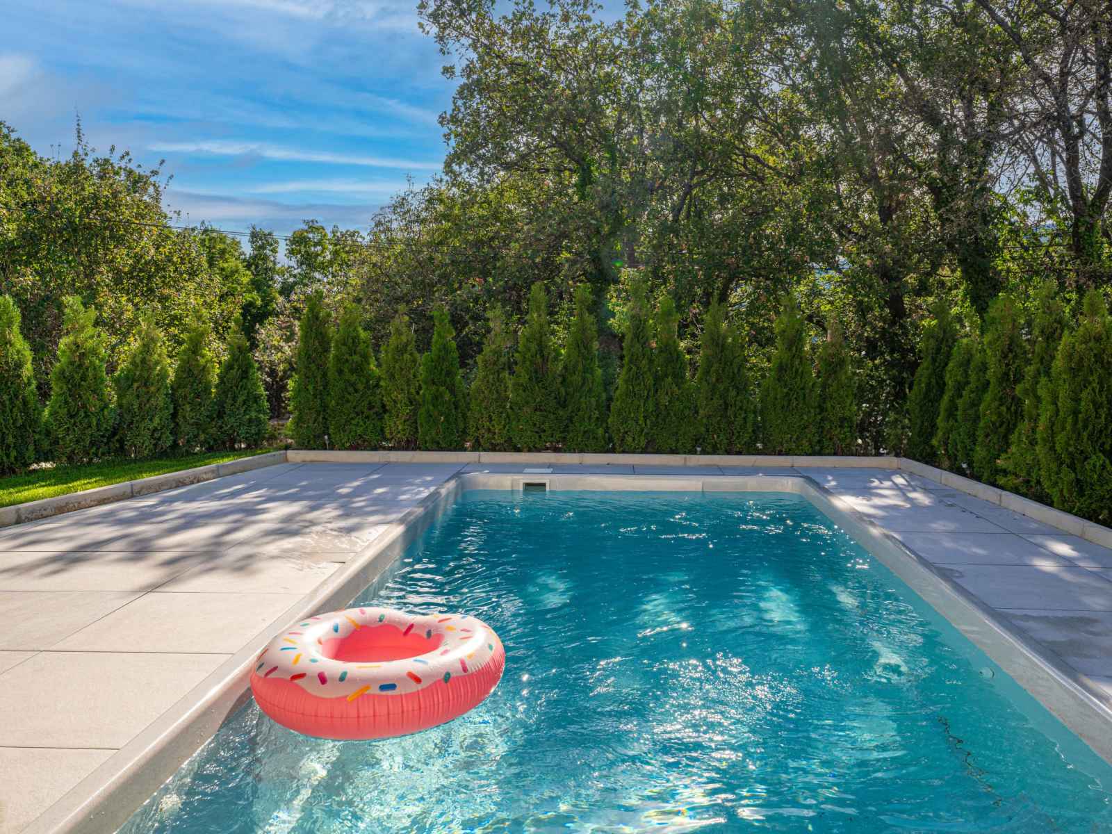saisonnière: 01.jun. - 15.oct.) avec marches intérieures et systeme d'électolyseur au sel. douche extérieure, terrasse (15 m2), meubles de jardin, entretien de la piscine par le propriétaire/jardinier. infrastructures de la maison: accès internet, lave-linge. place de parking (pour 2 voitures) près de la maison sur le terrain. magasins 1 km, supermarché 700 m, restaurant 450 m, arrêt de bus 600 m, plage de graviers 3.5 km, plage aménagée 3.5 km, plage bétonnée 3.5 km.