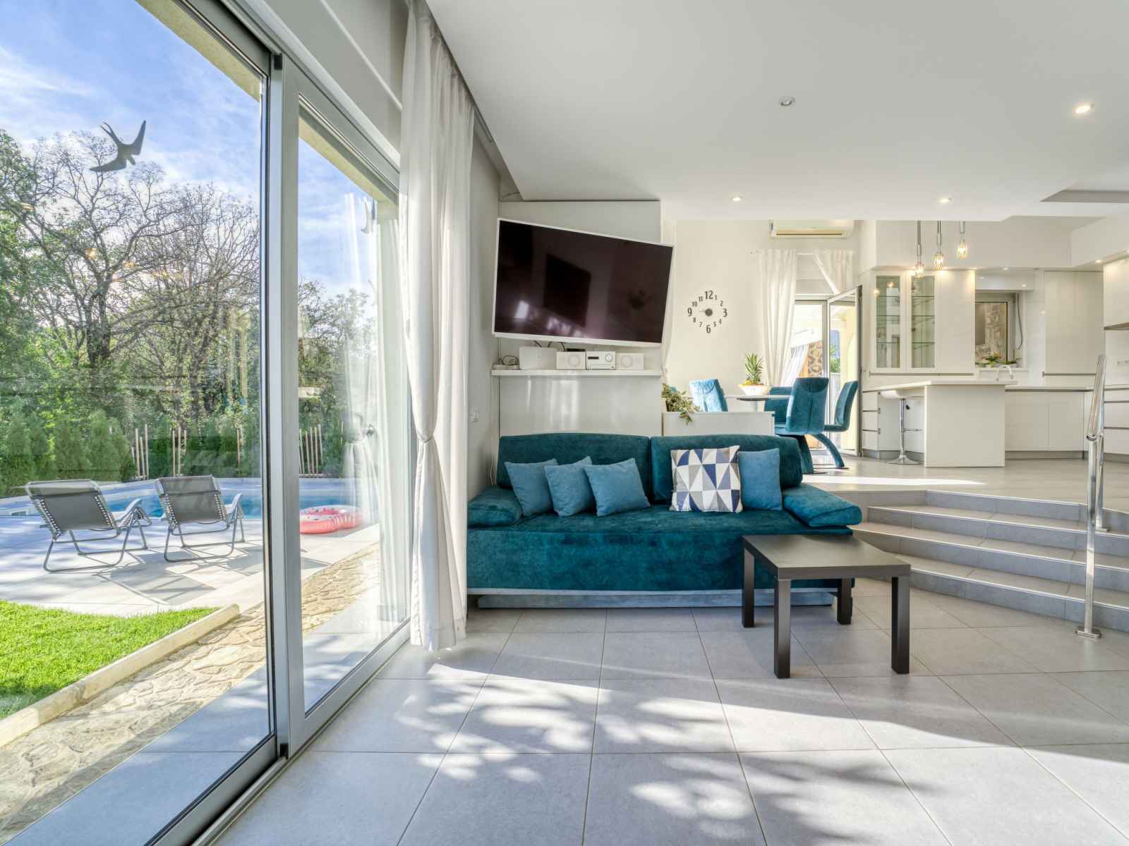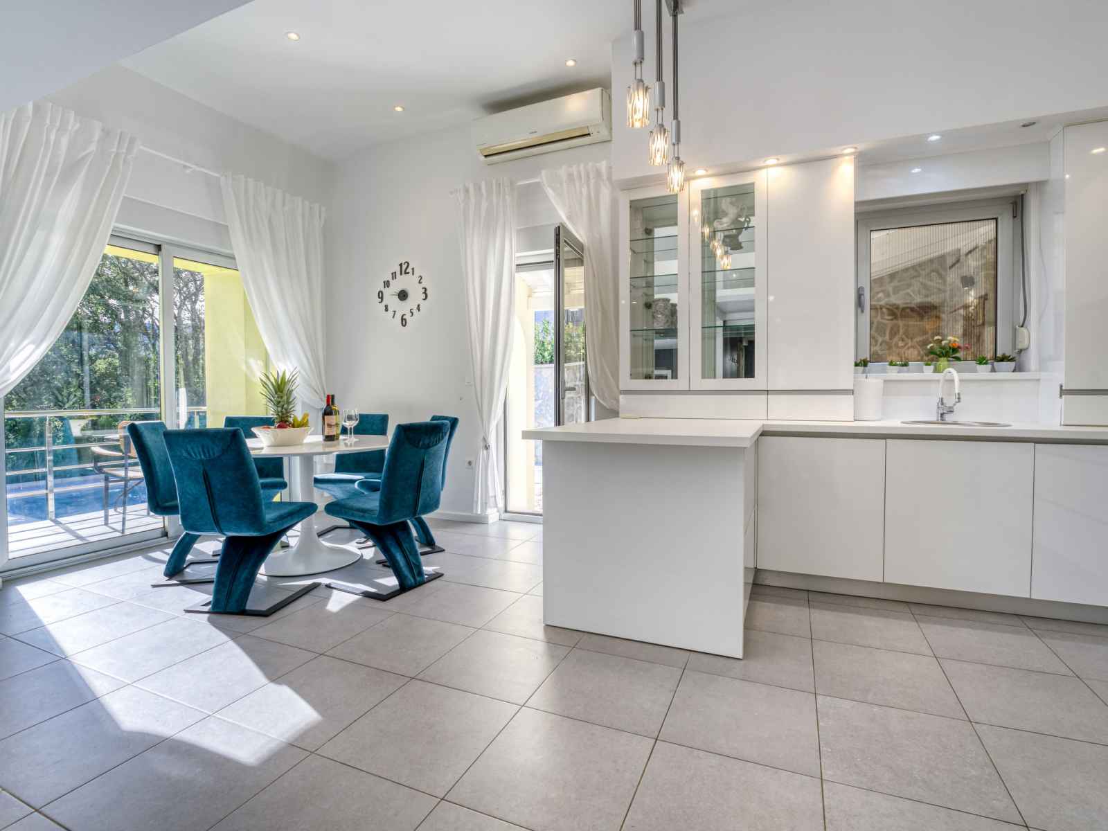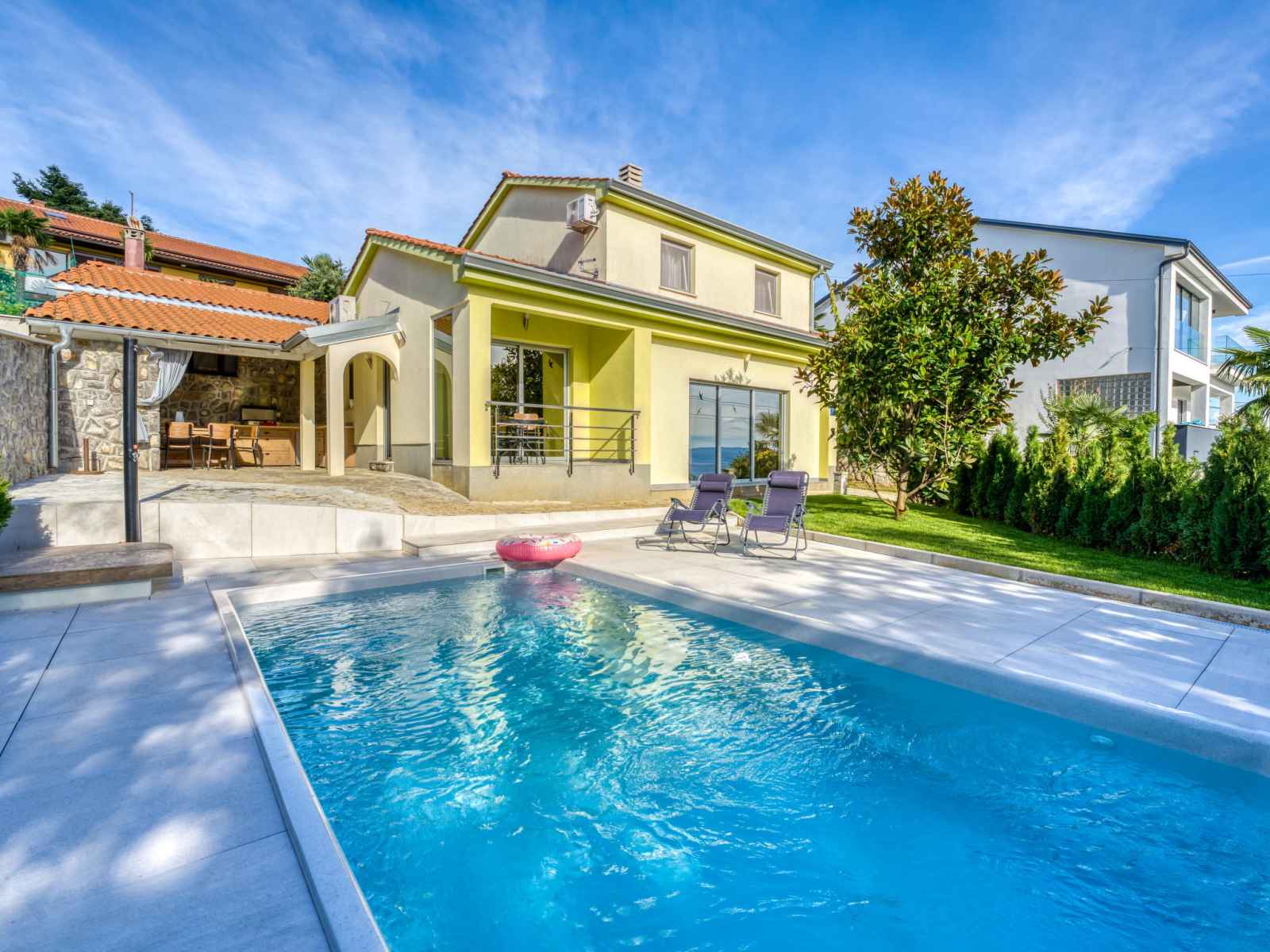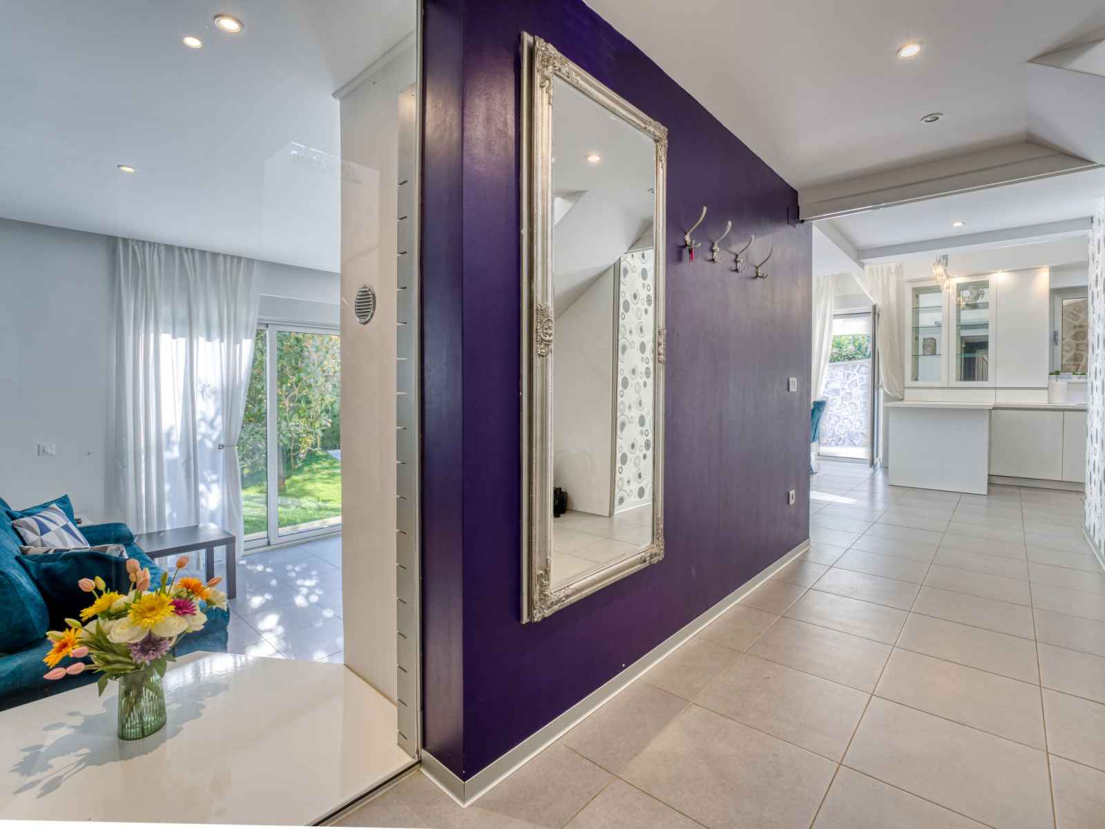 Matulji à 5 km de opatija: maison jumelée "mery", de 2 étages. À 1 km du centre de matulji, situation tranquille, ensoleillée, à 3.5 km de la mer, à 3.5 km de la plage, dans la verdure. a usage privé: terrain 350 m2 (clôturé) avec pelouse 30 m2 plantes, piscine rectangulaire (5 x 4 m, 20 m2, profondeur 140 cm, disponibilité