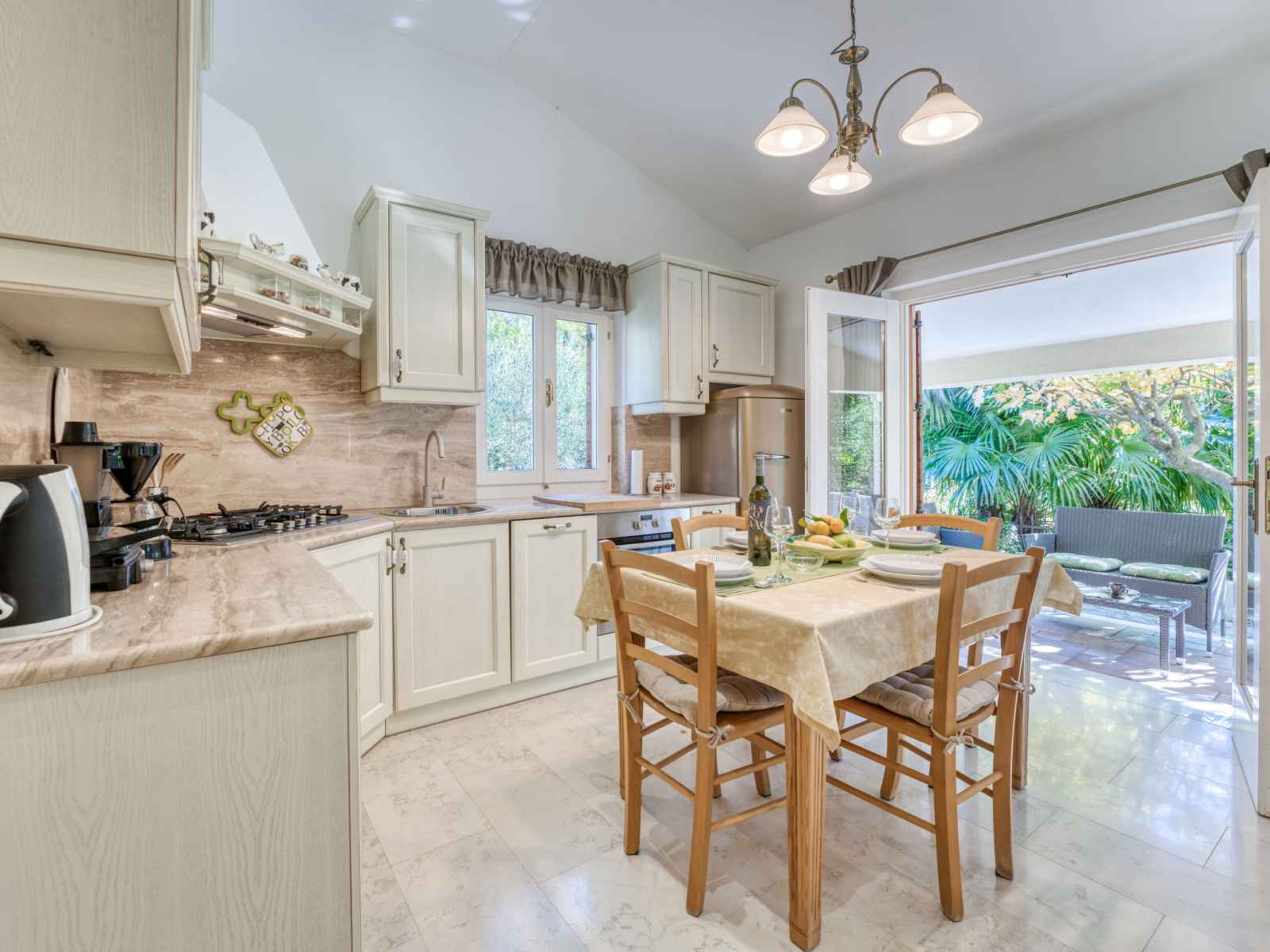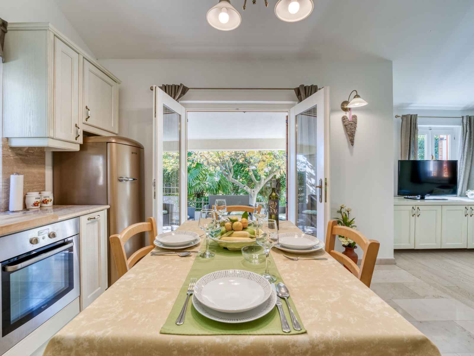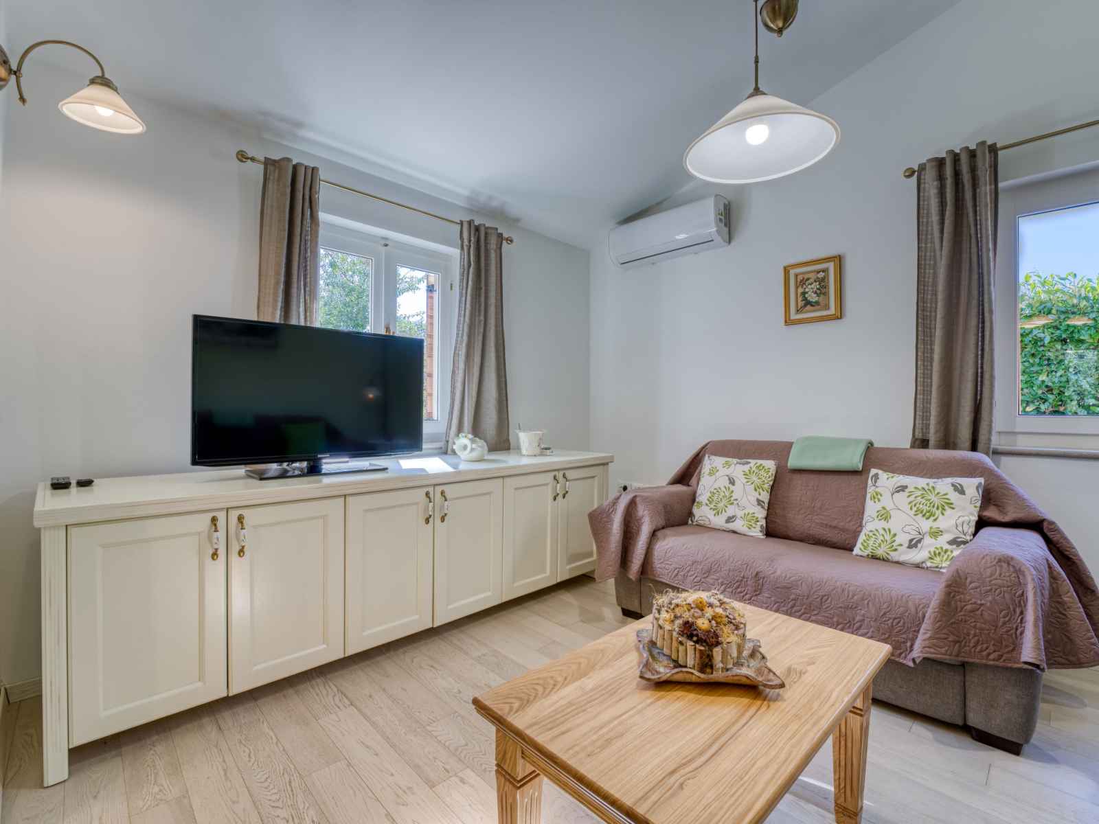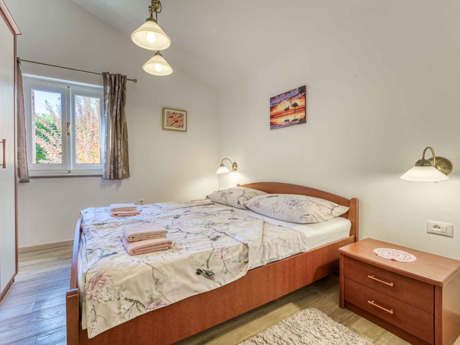 Chauffage (en sus). Terrasse 10 m2, couverte, pelouse 30 m2. Meubles de terrasse, chaises longues. A disposition: lave-linge. Internet (Connexion WIFI, gratuit). Taverne traditionnelle d'Istrie en commun.