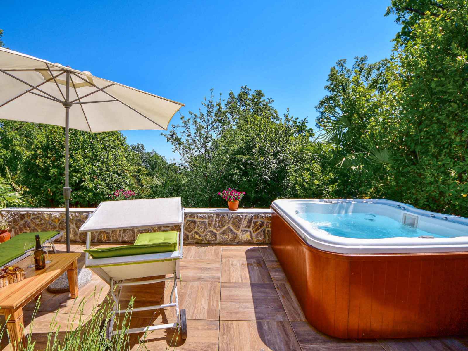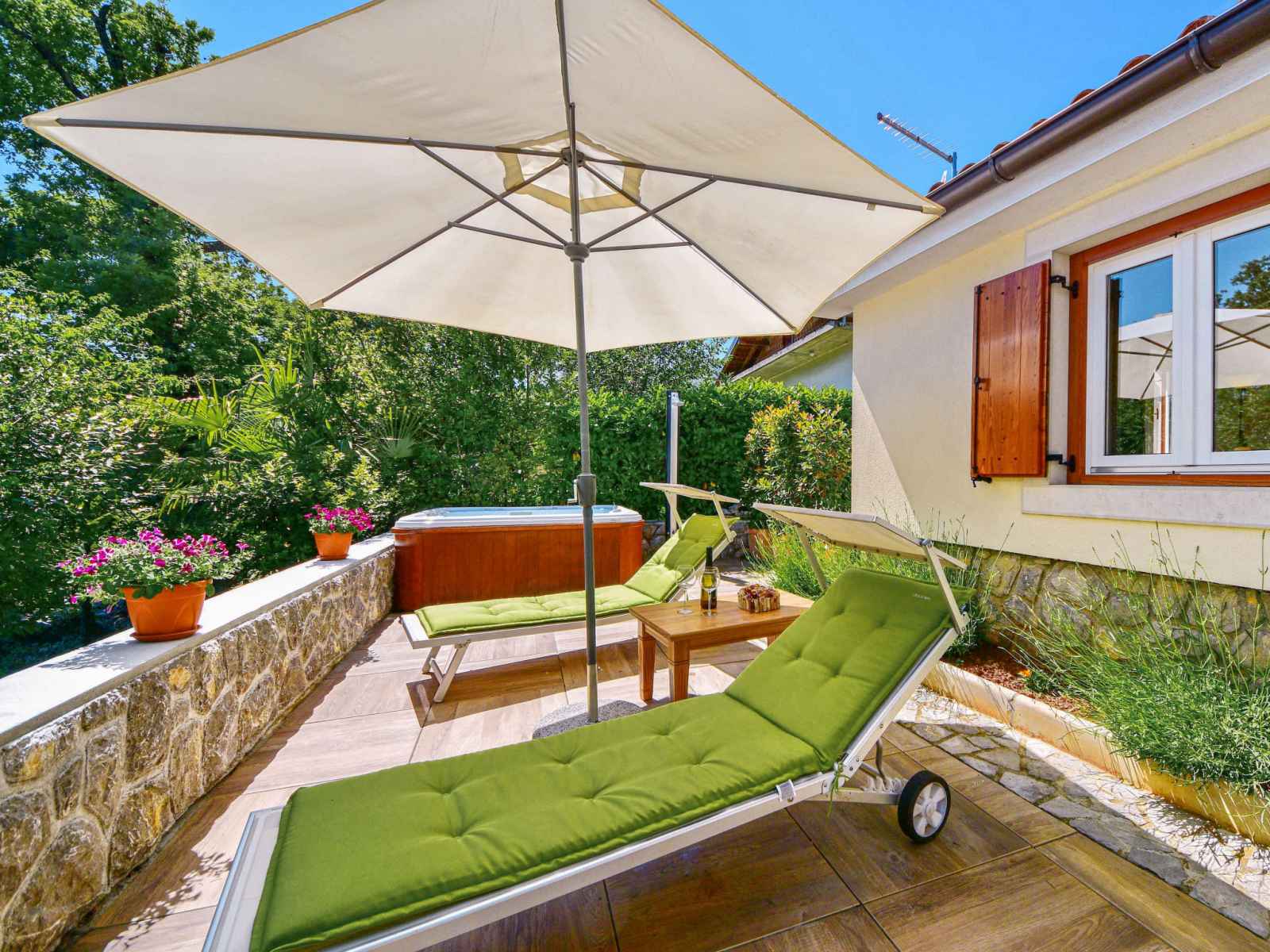 Pobri: maison individuelle "beni", année de construction 2013. À 2.5 km du centre d'opatija, à 2.5 km de la mer, à 2.5 km de la plage, dans la verdure. en commun: terrain 850 m2. meubles de jardin, barbecue. a usage privé: bain à remous . infrastructures de la maison: accès internet. place de parking près de la maison sur le terrain.