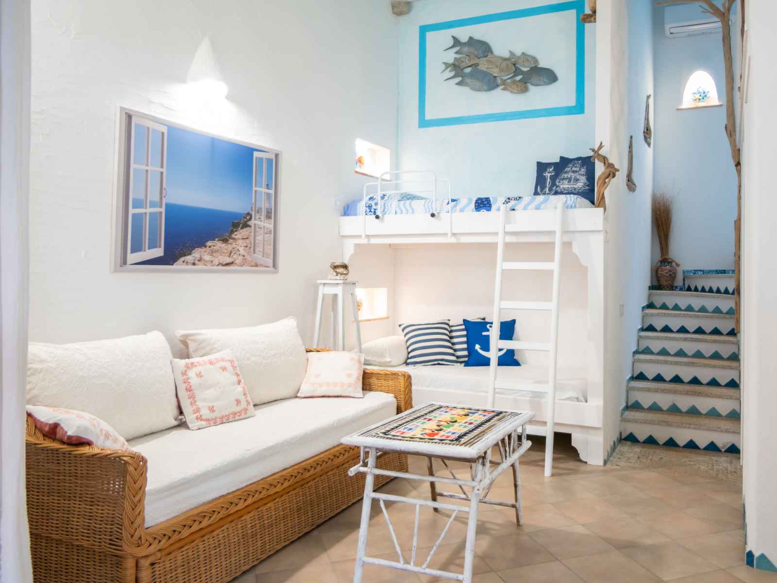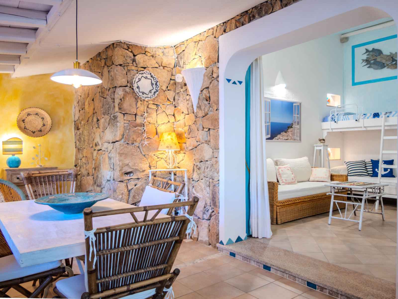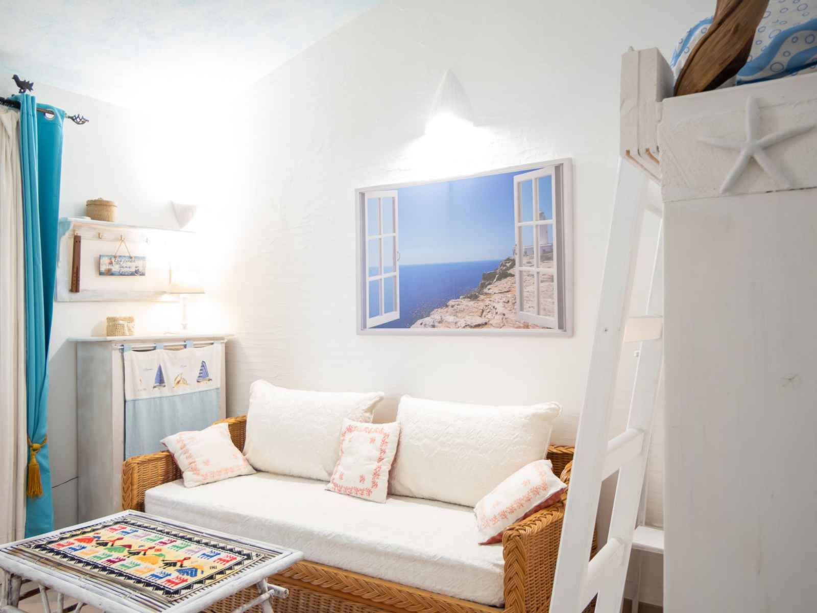 "villa gio'", maison 3 pièces 75 m2. aménagement confortable et plaisant: séjour/salle à manger avec tv (écran plat). sortie sur la terrasse. 1 chambre avec 1 divan-lit et 1 x 2 lits superposés. cuisine (4 plaques de cuisson, four, lave-vaisselle, grille-pain, bouilloire électrique). À l'étage supérieur: galerie avec 1 couchage. 1