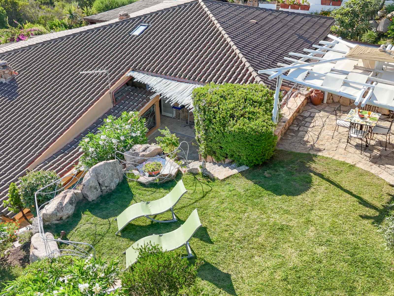 Résidence "porto mannu". À 6 km du centre de palau, situation tranquille dans un quartier résidentiel, à 700 m de la mer, à 700 m de la plage, dans la verdure. a usage privé: jardin (clôturé) pelouse et plantes. douche extérieure, place de parking (couvert) près de la maison. magasin d'alimentation 1 km, supermarché 6 km, restaurant,
