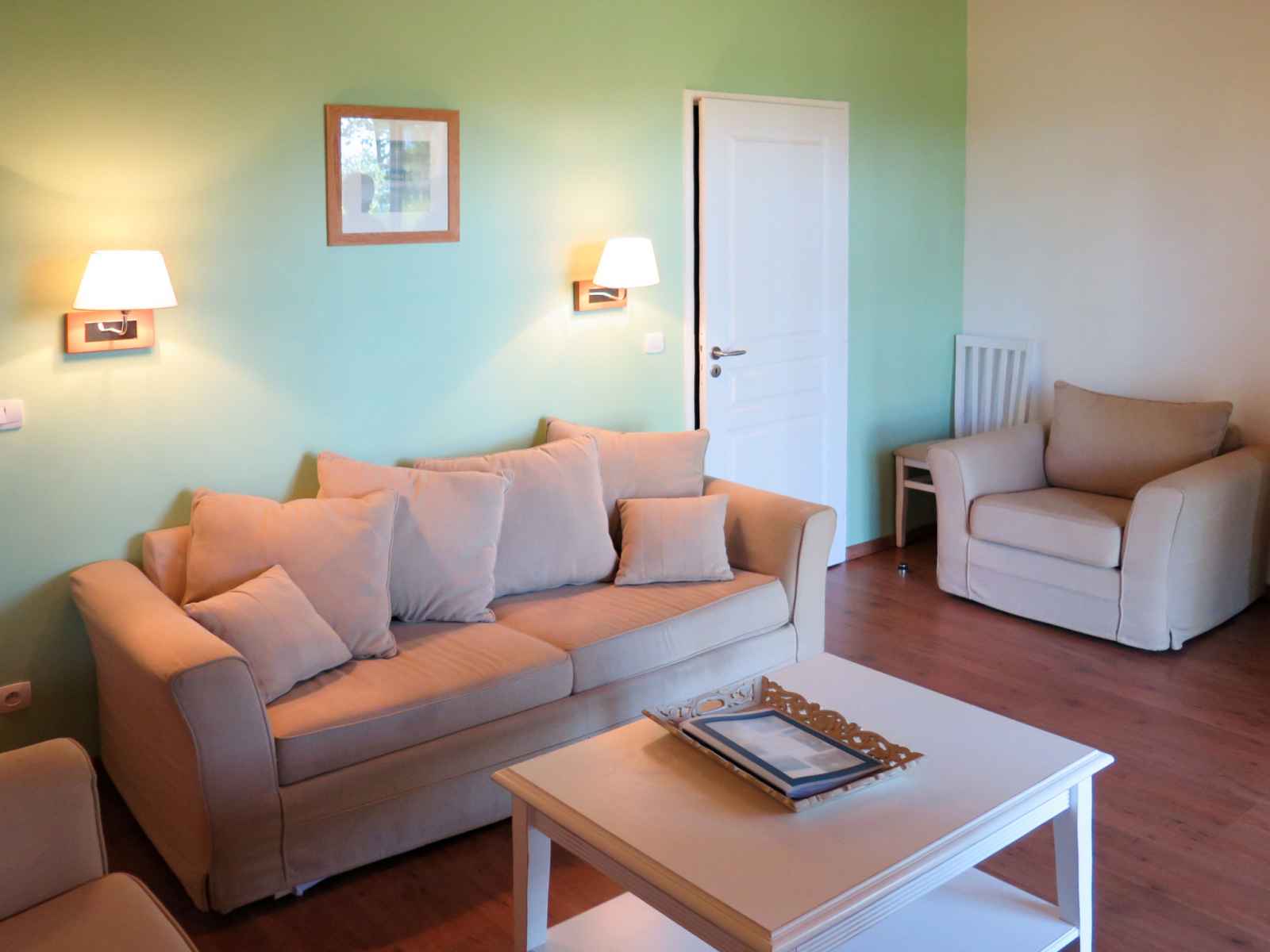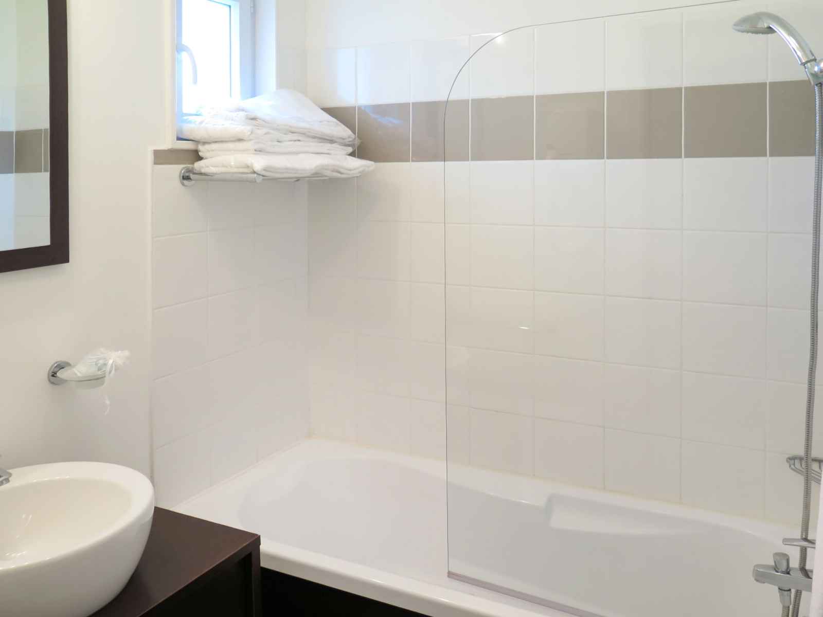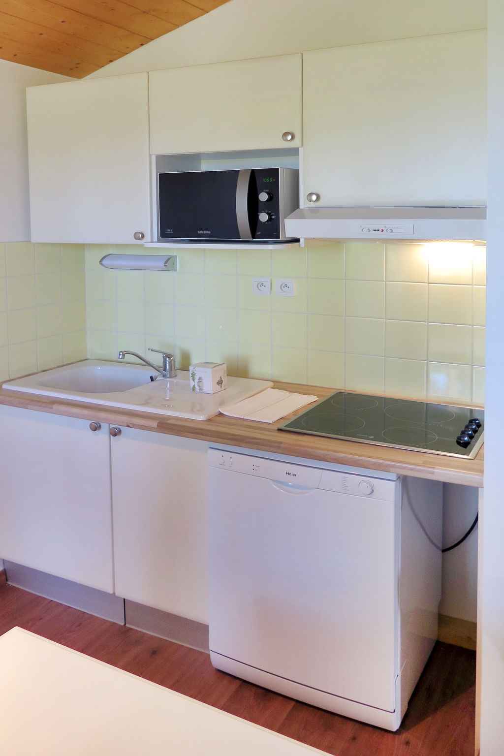 vitrocéramiques, grille-pain, bouilloire électrique, micro-ondes, congélateur, cafetière électrique, Capsules pour machine à café (Nespresso) (NON INCLUSES)). Salle de bains, WC séparé. Chauffage électrique. Terrasse couverte. Meubles de terrasse, chaises longues (2). A disposition: chaise haute pour enfant, lit bébé (en sus). Internet (Connexion WIFI, gratuit). Veuillez noter: logement non-fumeur. Maximum 1 animal/ chien autorisé. Détecteur de fumée, extincteur.
