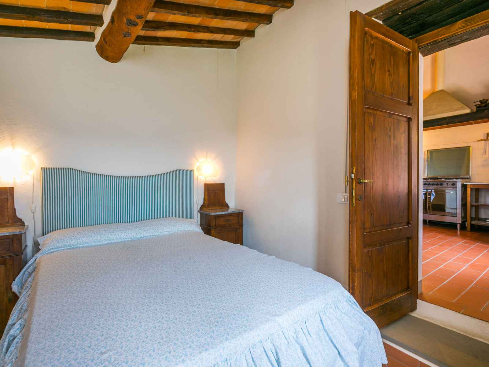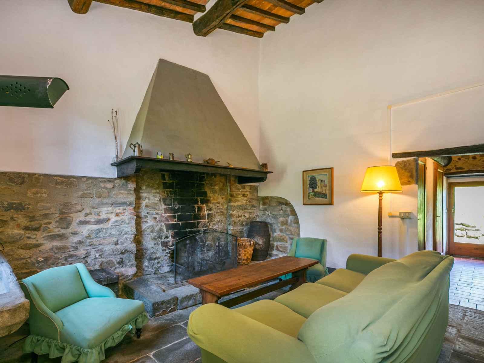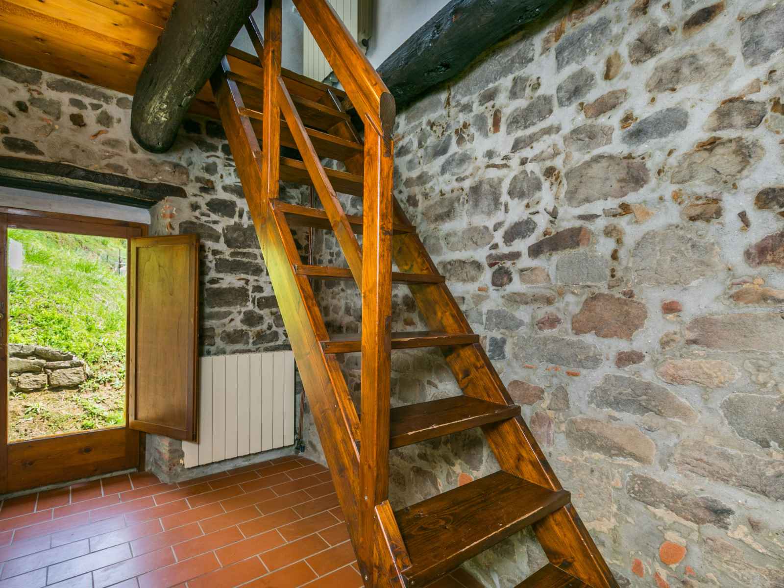 "podere zano", maison 3 pièces 75 m2 sur 2 niveaux. aménagement simple et rustique: séjour avec cheminée et tv (satellite). galerie mansardée, ouverte avec 2 lits. 1 petite chambre avec 1 grand-lit (130 cm). 1 chambre double. cuisine (four, 4 feux, congélateur, cafetière électrique) avec table pour les repas. bain/wc, wc séparé.