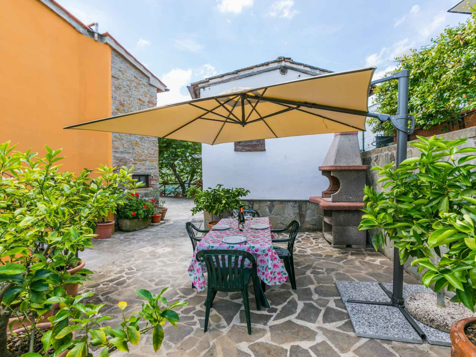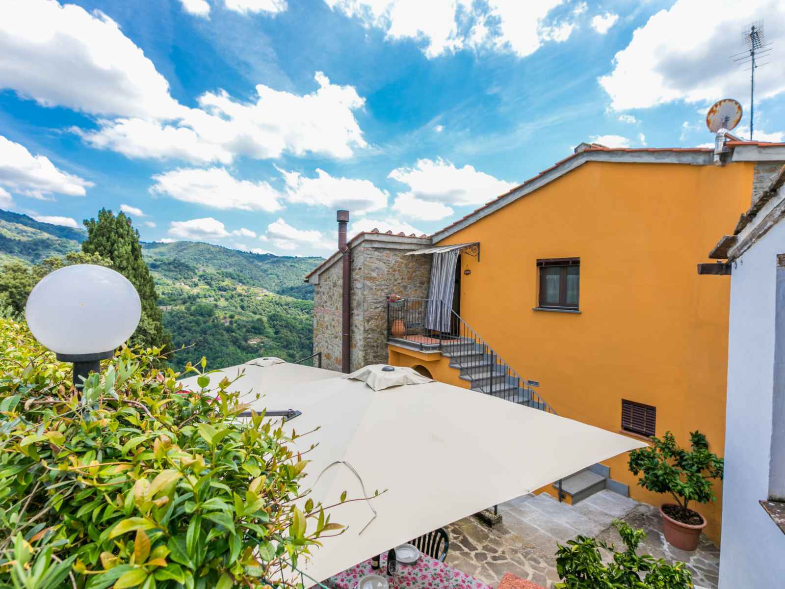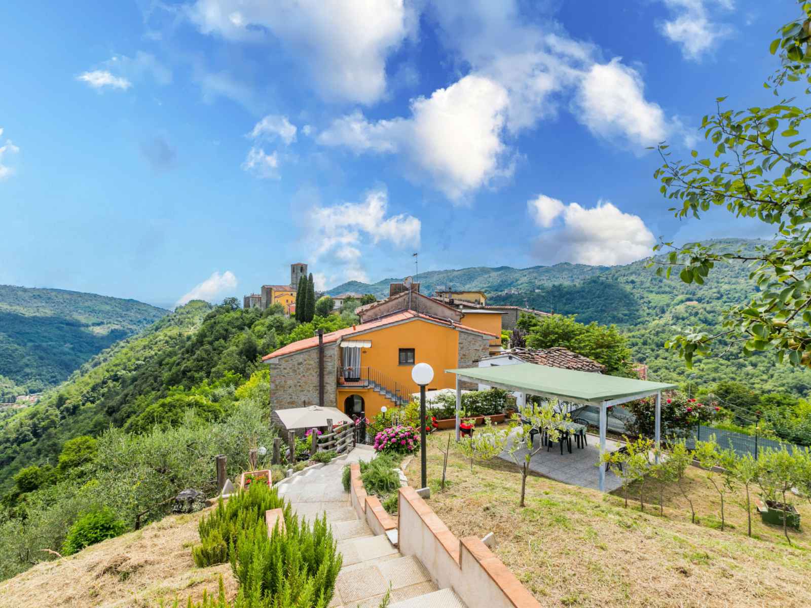 Maison "poggetto pellegrini", 370 m au dessus du niveau de la mer, rénovée. 2 appartements dans la même entité. dans le hameau d'aramo, à 8.5 km du centre de pescia, à 29 km du centre de lucca, à 55 km du centre de pisa, situation surélevée sur un versant, à 64 km de la mer. en commun: terrain 20'000 m2, jardin sur plusieurs niveaux